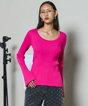 ・シャリっとした糸を使用しハイゲージのワイドリブで編み立てた一着。