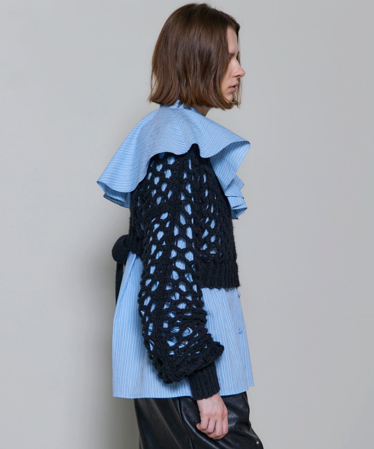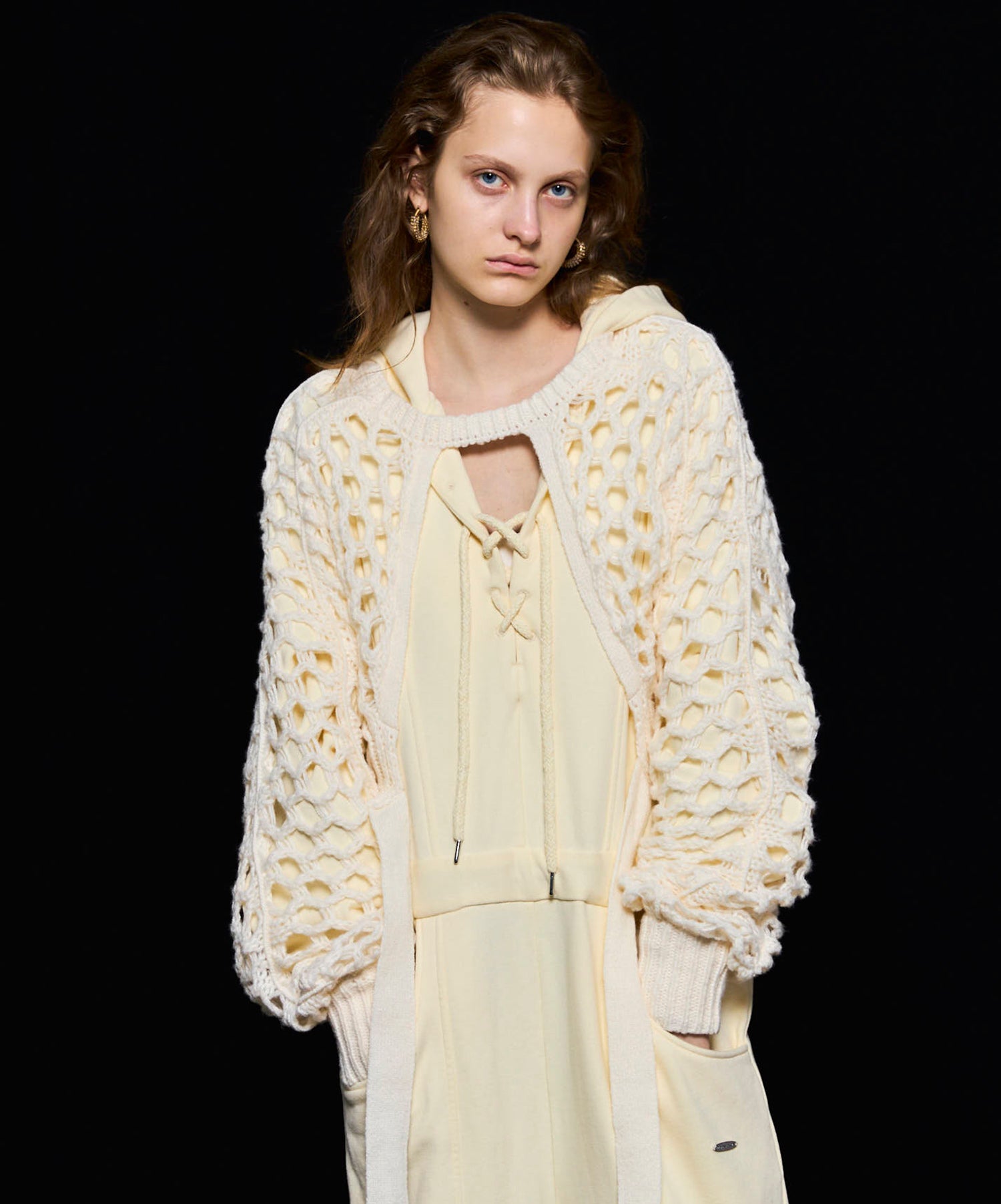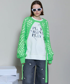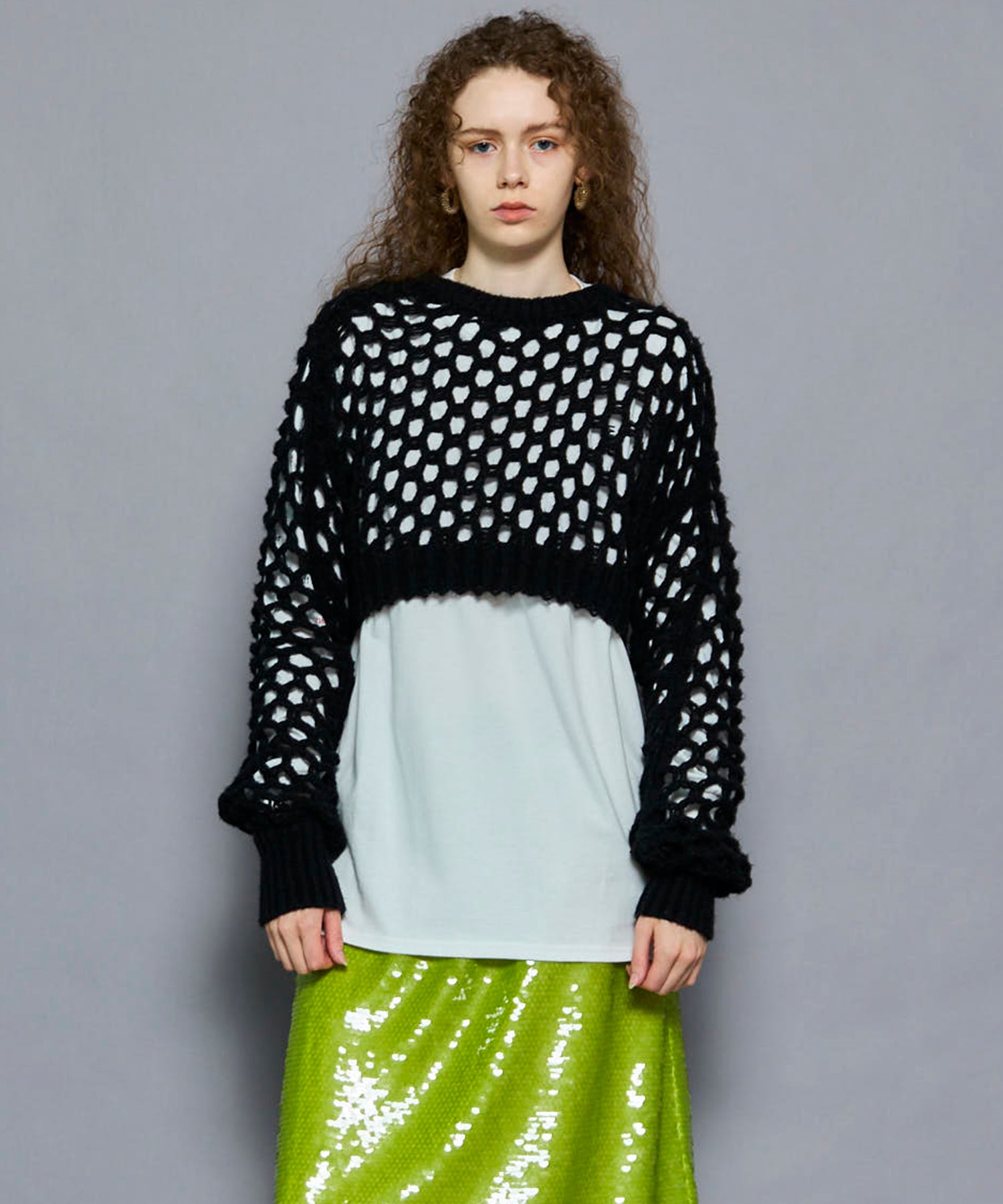 ・メッシュ編みならではのざっくりとした編地が、スタイリングにヌケ感をプラスし、レイヤードを楽しめます。