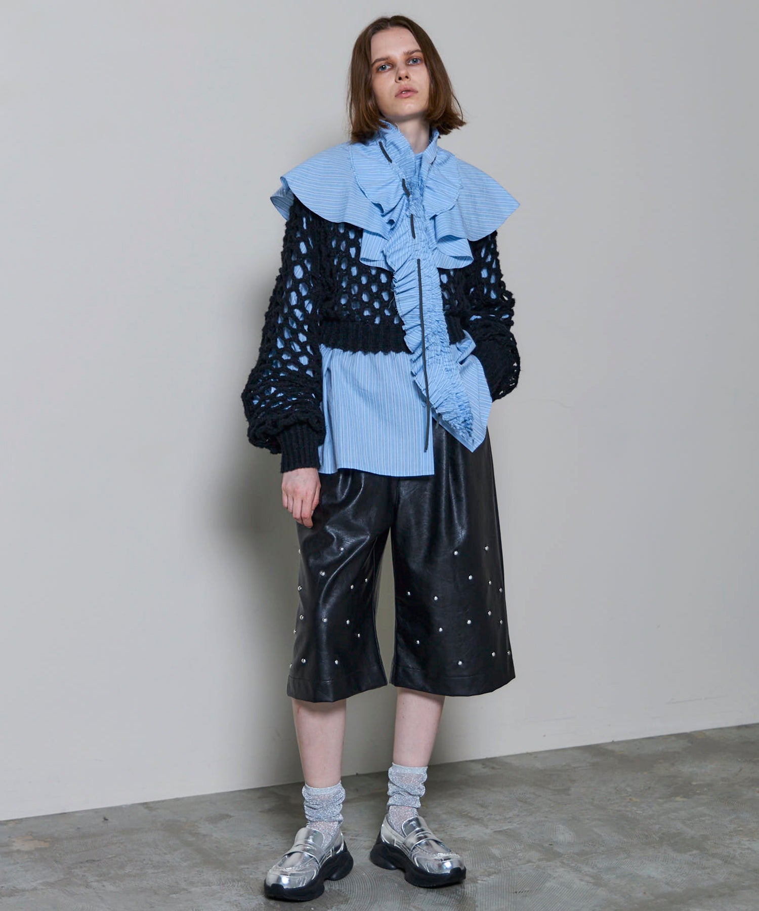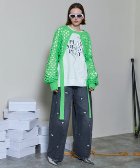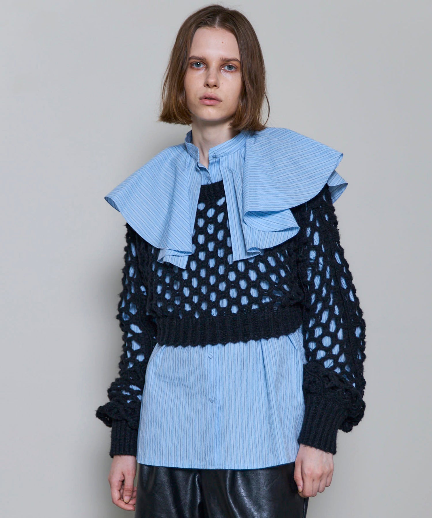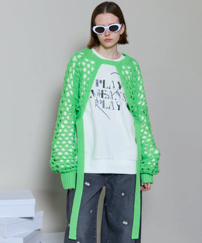 ・メッシュ編みならではのざっくりとした編地が、スタイリングにヌケ感をプラスし、レイヤードを楽しめます。