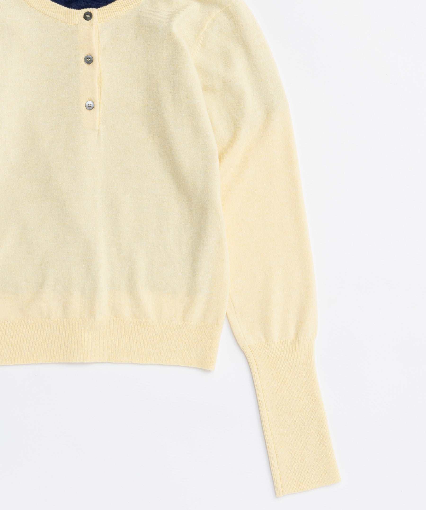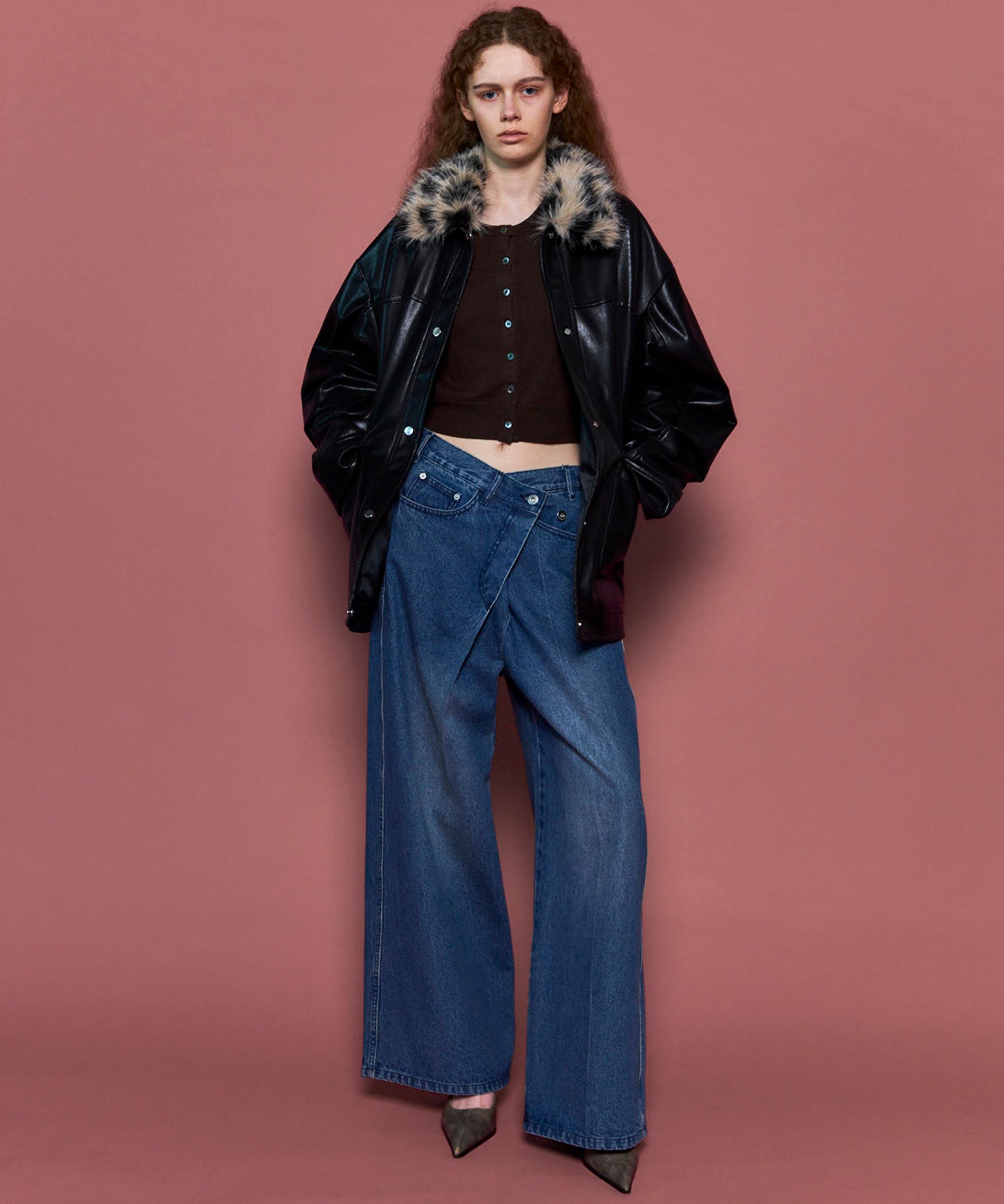 さらに、後ろのボタンを開けて襟元を広げれば、抜け感たっぷりのオフショルダーにもアレンジ可能です。