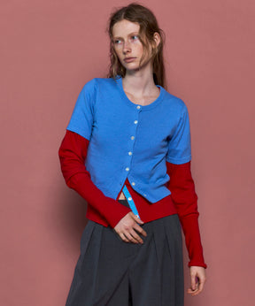 ・半袖×長袖のニットカーディガンをセットにした、着まわし自在なマルチWAYアイテム。