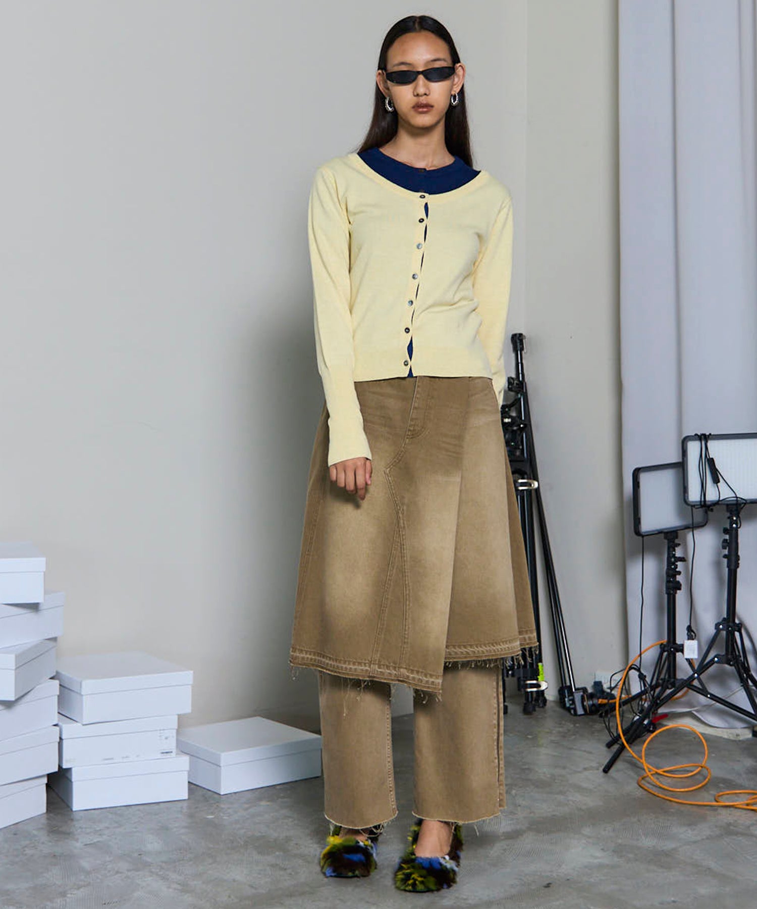 ※断ち切りデザイン(切りっぱなし仕様)の商品の場合、ご着用いただくにつれ、ほつれがみられる可能性がございます。そちらのデザインも含め、風合いをお楽しみください。ご了承いただきご注文をお願いいたします。