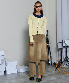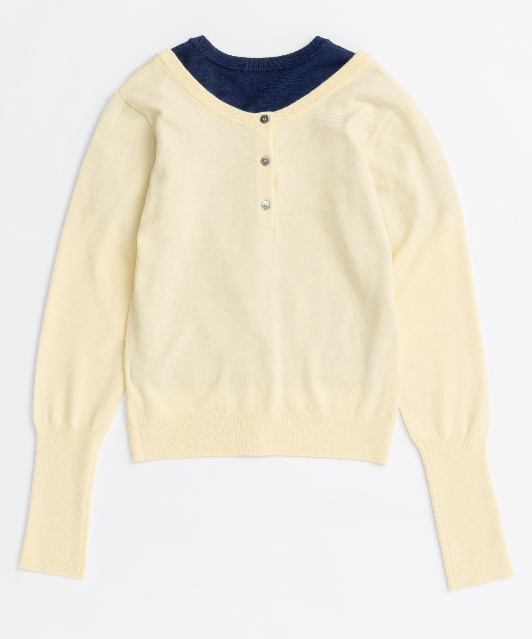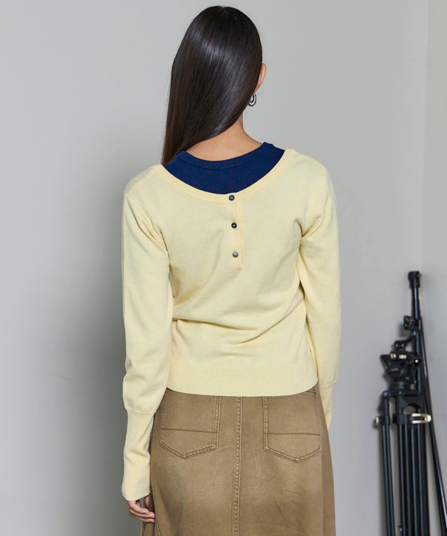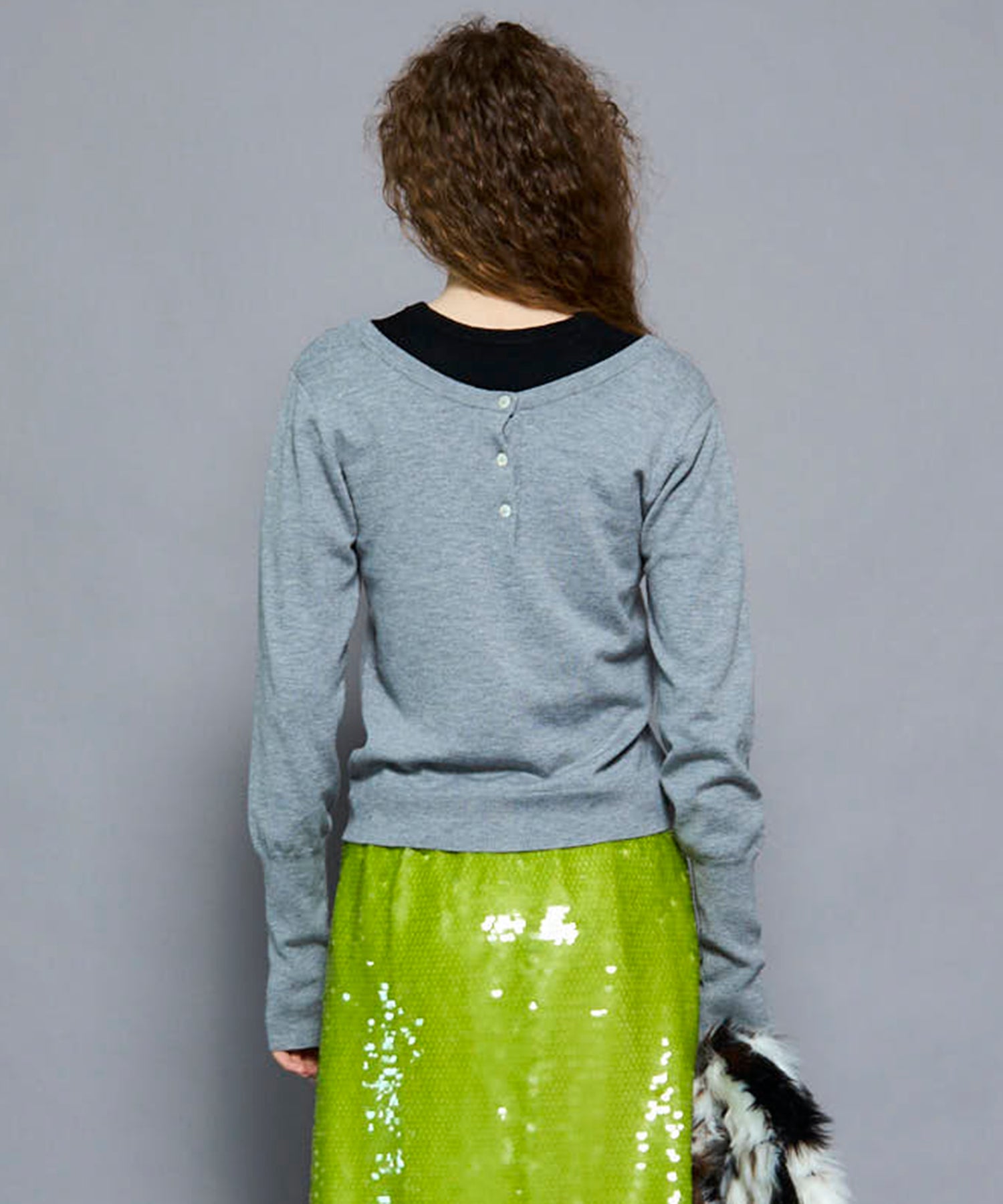 ・外側の長袖カーディガンは前後2WAY仕様で、ボタンを後ろにしても◎