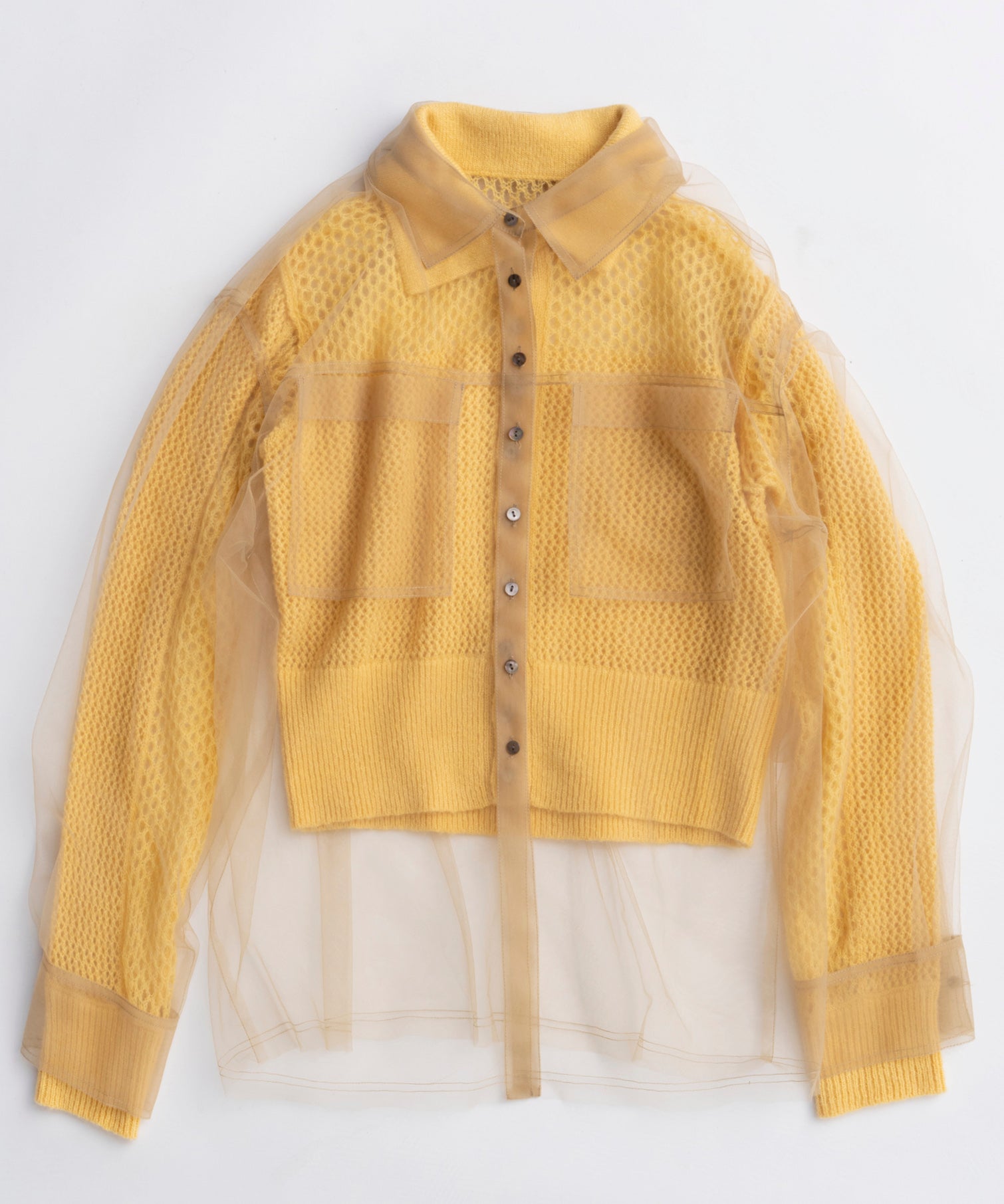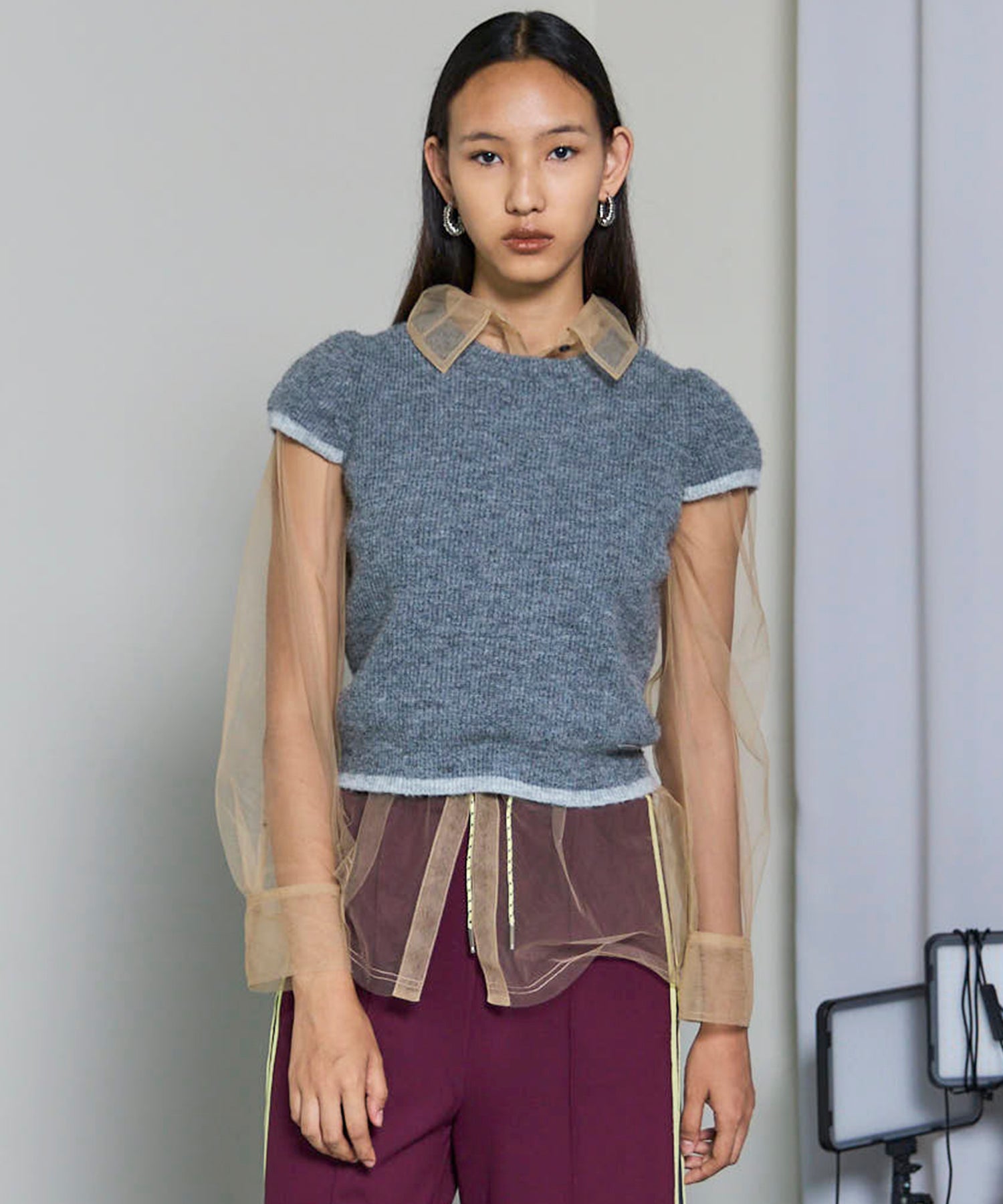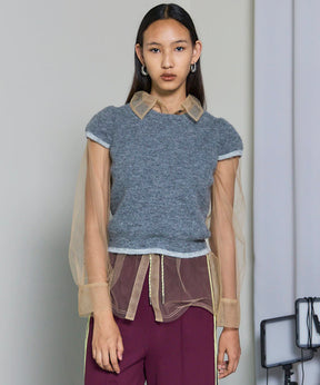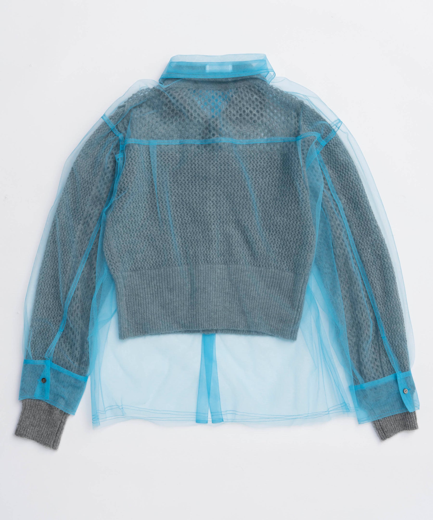 ・チュール素材のシャツとニットがセットになったレイヤードアイテム。