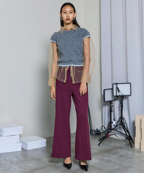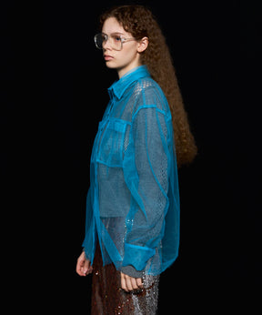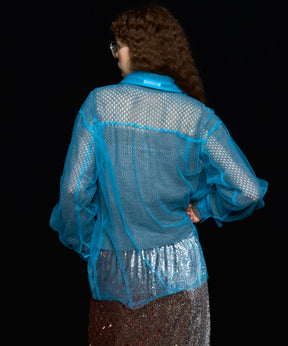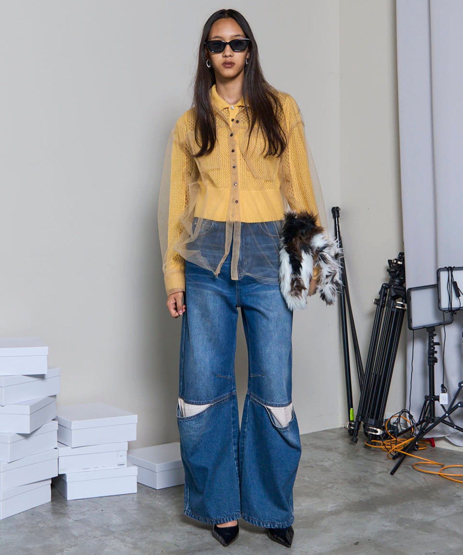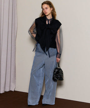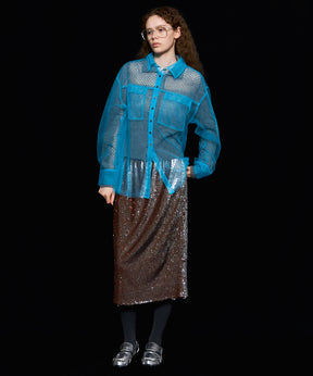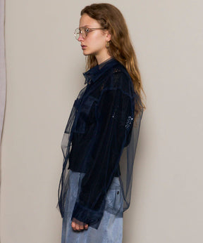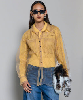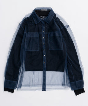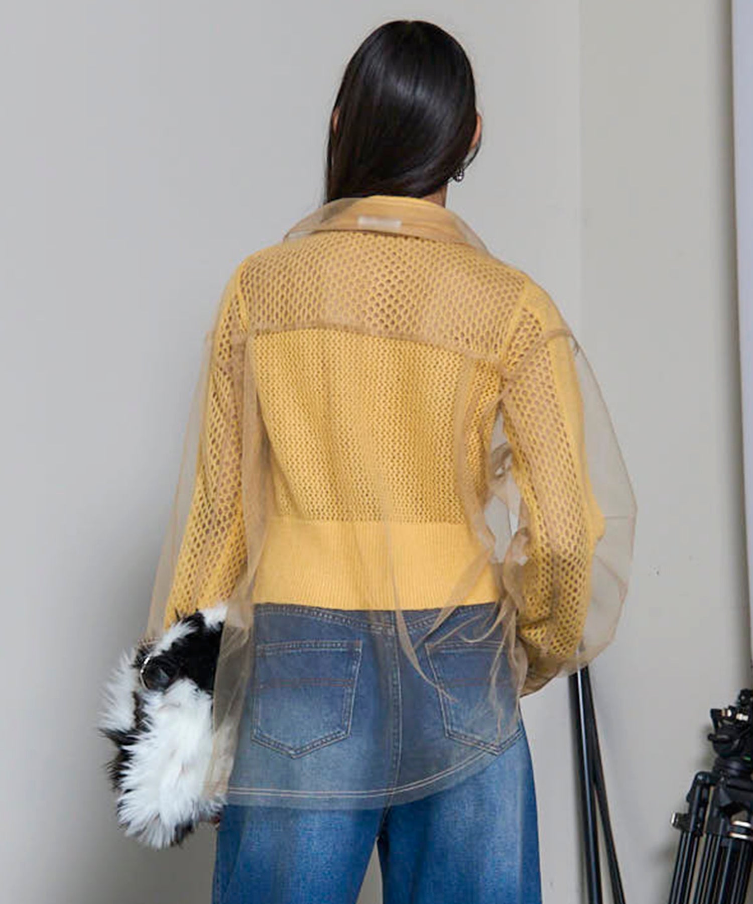 ・チュール素材のシャツとニットがセットになったレイヤードアイテム。