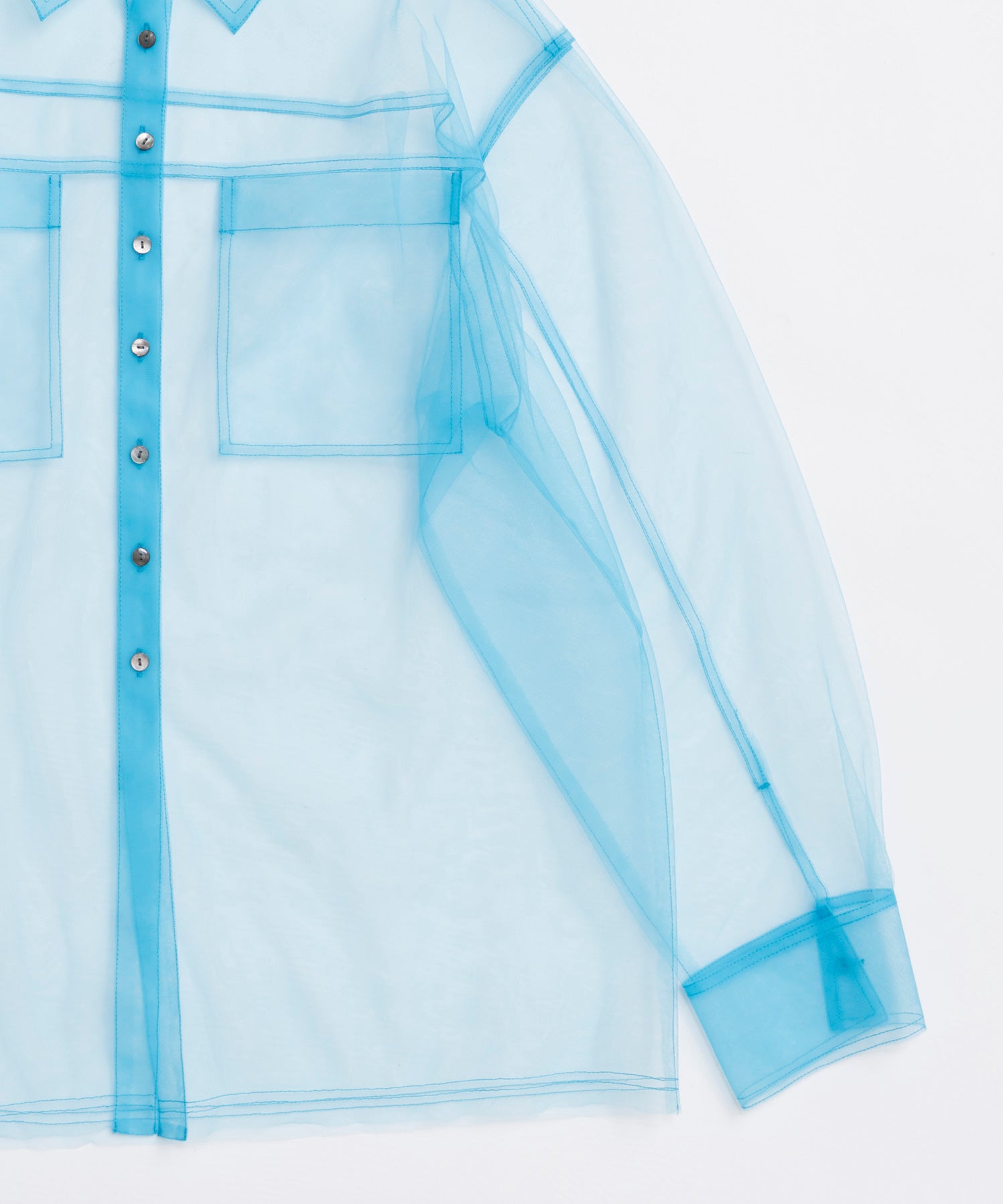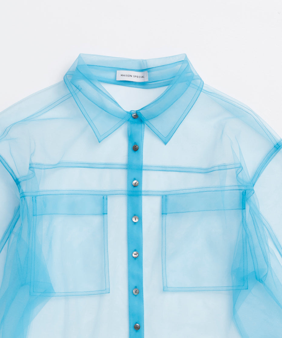 ・シャツ部分は、ほんのりハリのあるチュール素材で仕立て、透け感と立体感を両立。