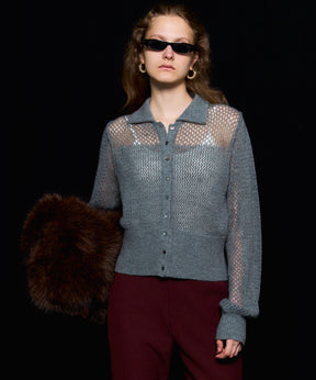 ・ニットはコンパクトなサイズ感で、程よいフィット感と透かし編みディテールがポイント。