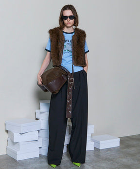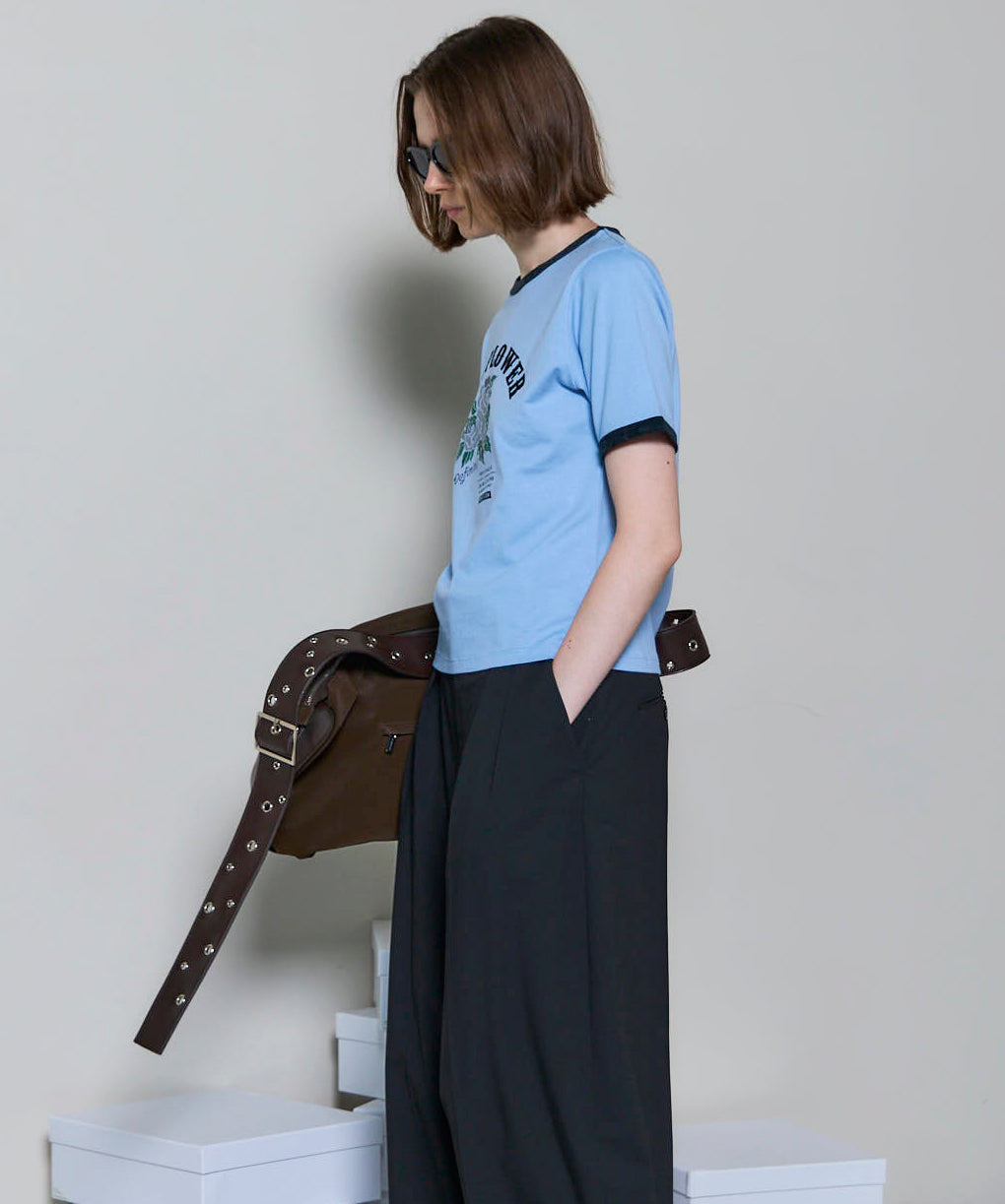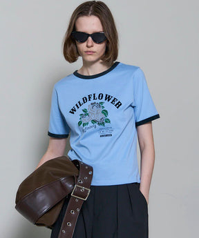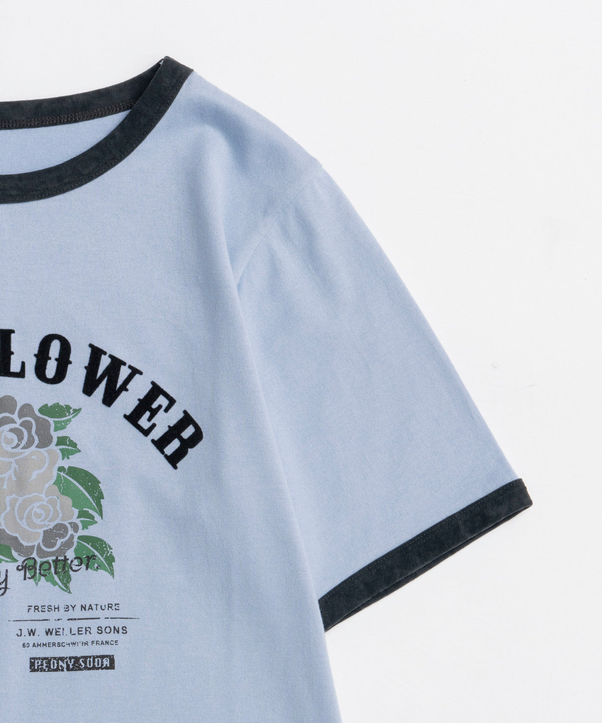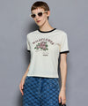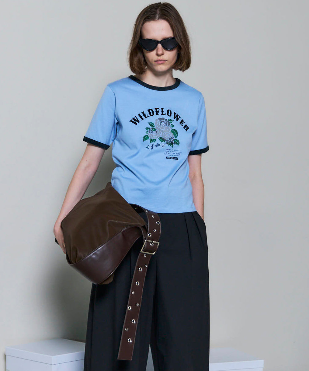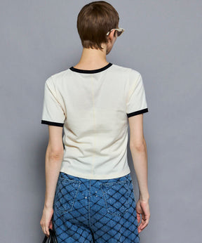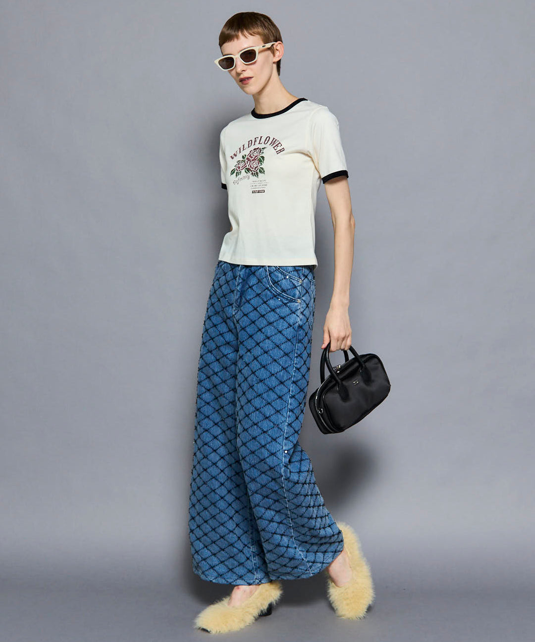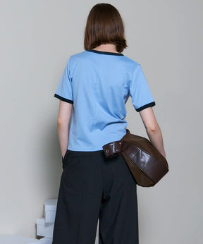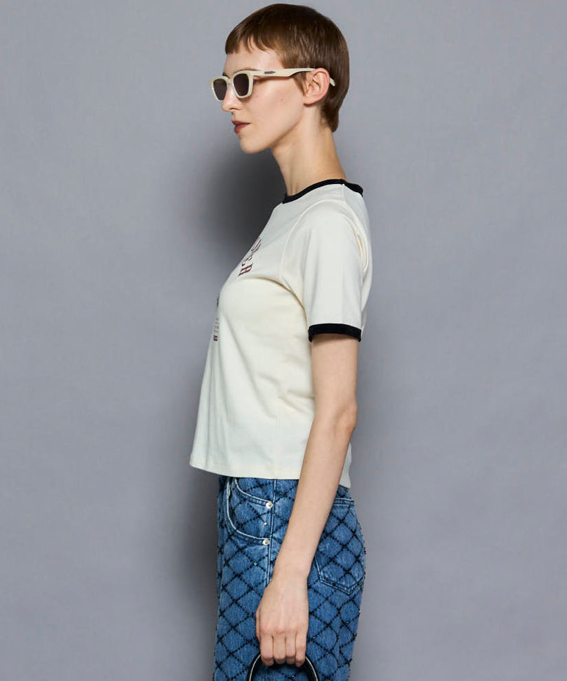 ・リンガーTシャツをベロア素材を組み合わせることで秋冬らしく仕上げた一着。