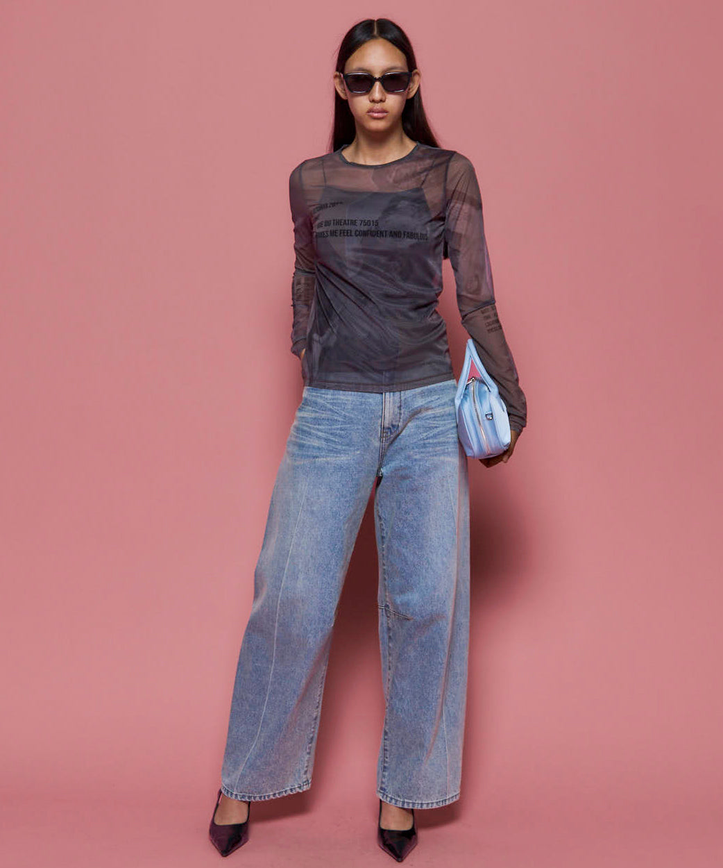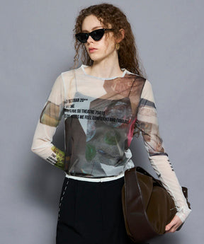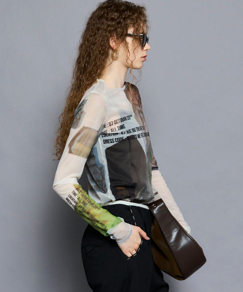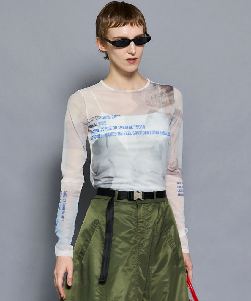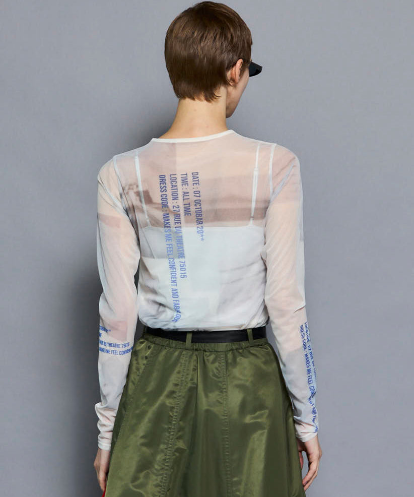 ・透け感のある素材が軽やかさと抜け感を与え、インナーとのレイヤードによって様々なスタイリングを楽しめるのも魅力。