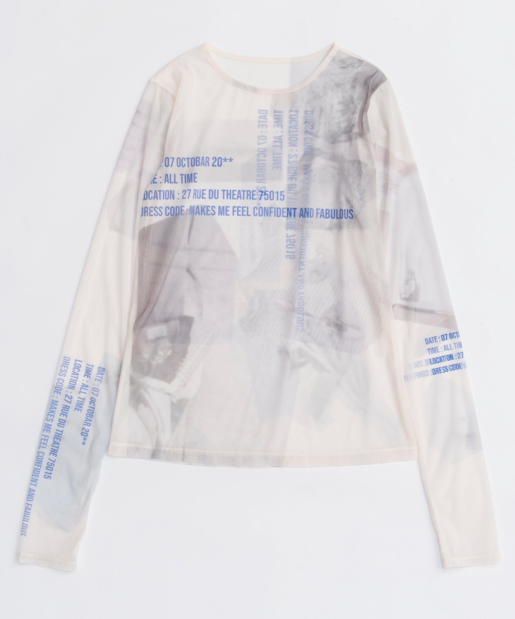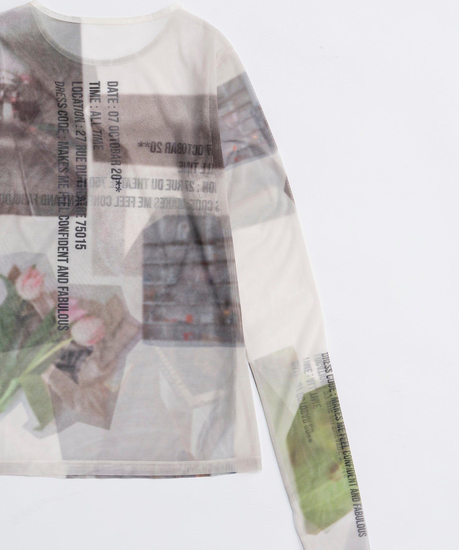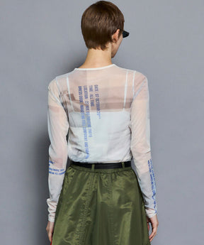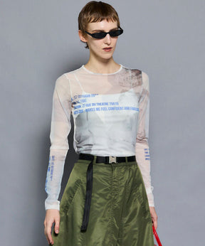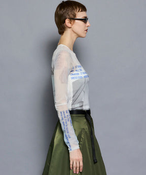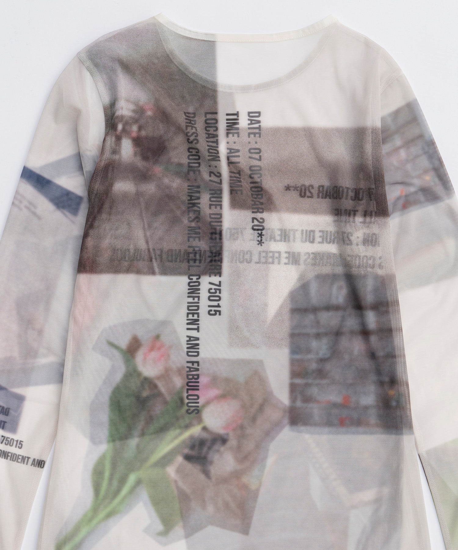 ・オリジナルのプリントを入れたシアー感のあるストレッチ素材を使用。