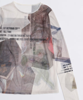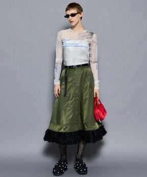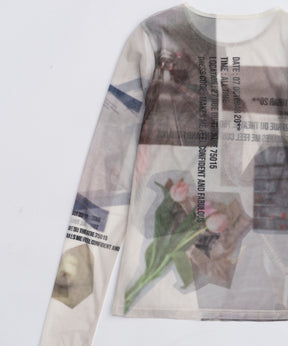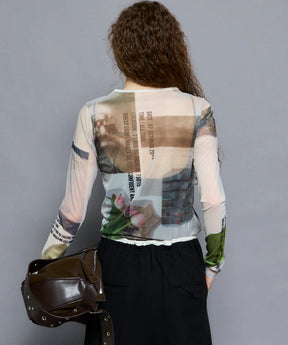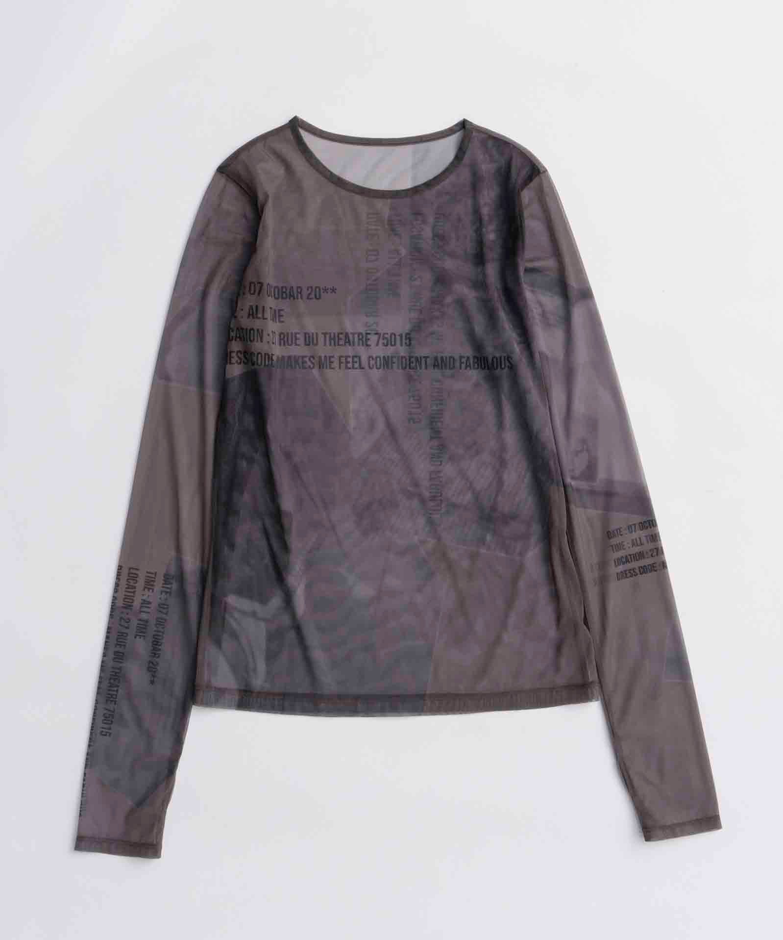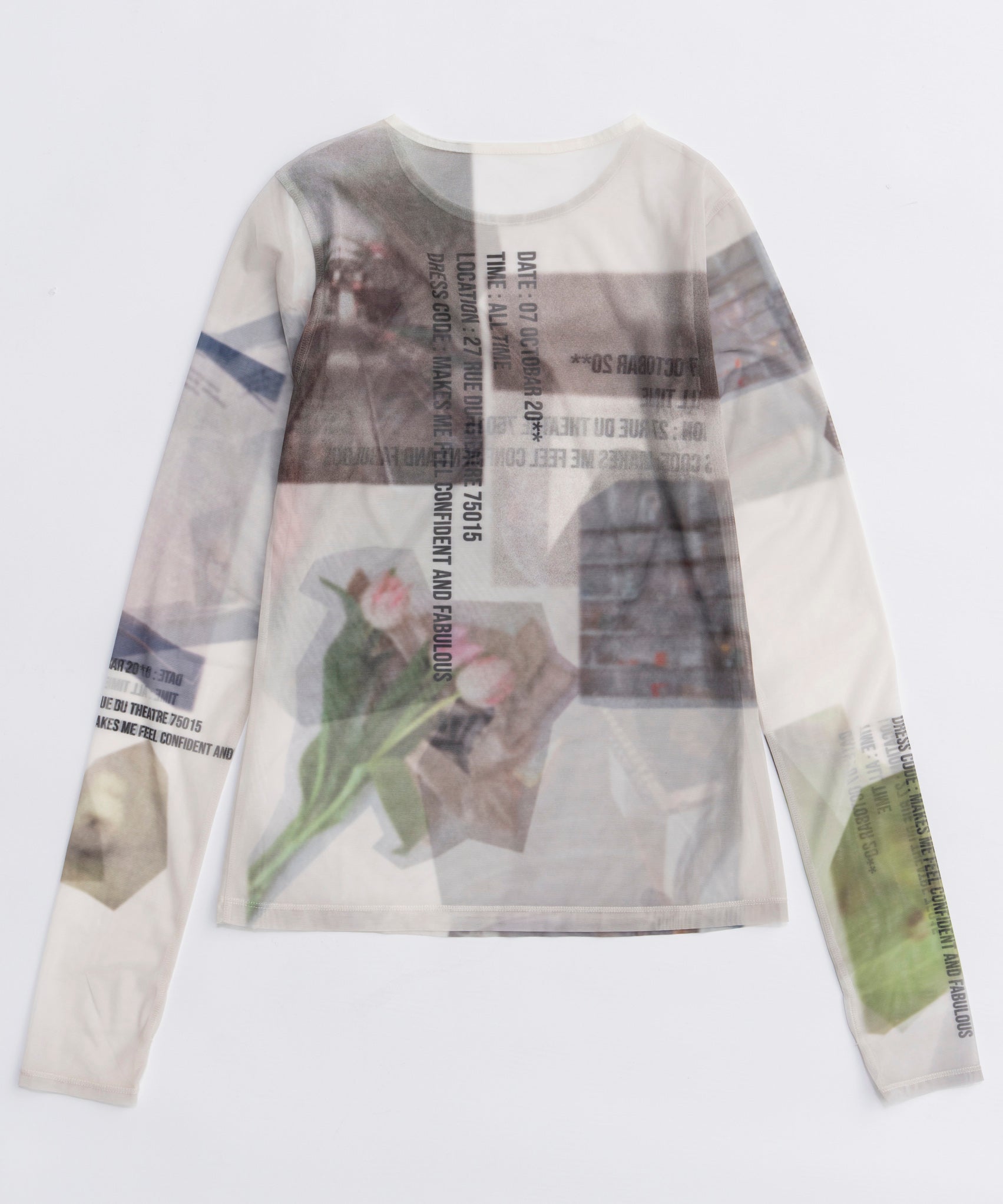 ・オリジナルのプリントを入れたシアー感のあるストレッチ素材を使用。