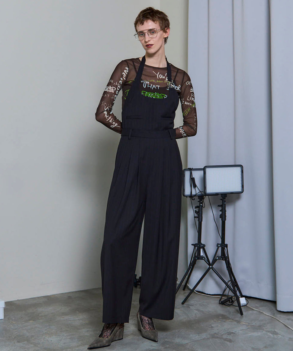 ・オリジナルのプリントを入れたシアー感のあるストレッチ素材を使用。