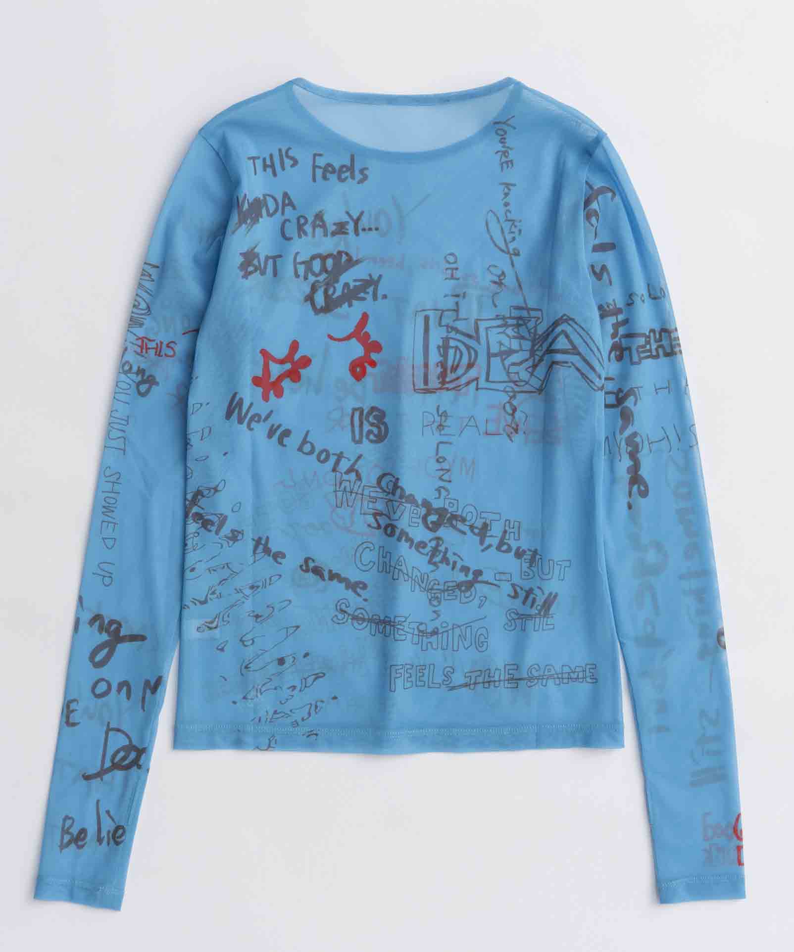 レイヤードのインナーとしても重宝し、インパクトのあるプリントが目を惹くロンTです。