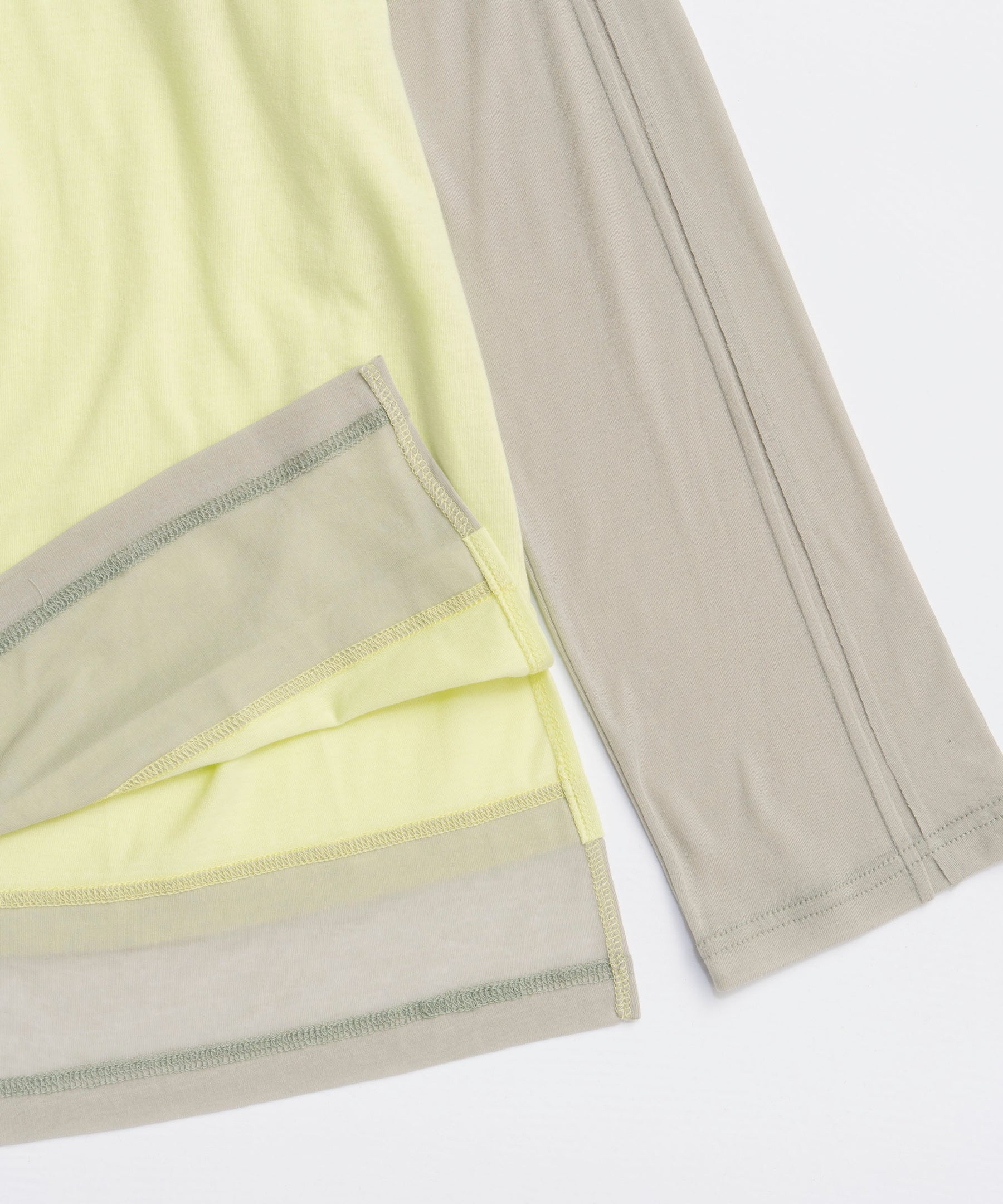 ・ボディーには天竺を、袖と裾にはガーゼのような優しいタッチのシアーフライス使用。