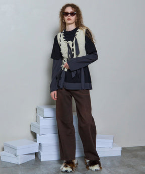 ※断ち切りデザイン(切りっぱなし仕様)の商品の場合、ご着用いただくにつれ、ほつれがみられる可能性がございます。そちらのデザインも含め、風合いをお楽しみください。ご了承いただきご注文をお願いいたします。