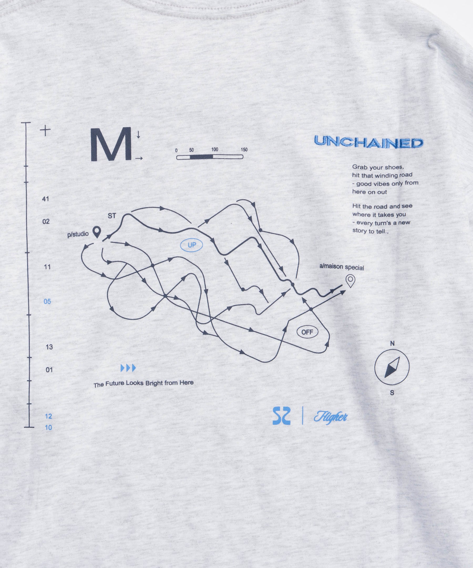 バックプリントは本社からMAISON SPECIAL青山ストアまでの経路をインスピレーションとしお客様が様々な場所からお店に足を運んでくださるという意味を込めてユニークな解釈で落とし込んでおります。