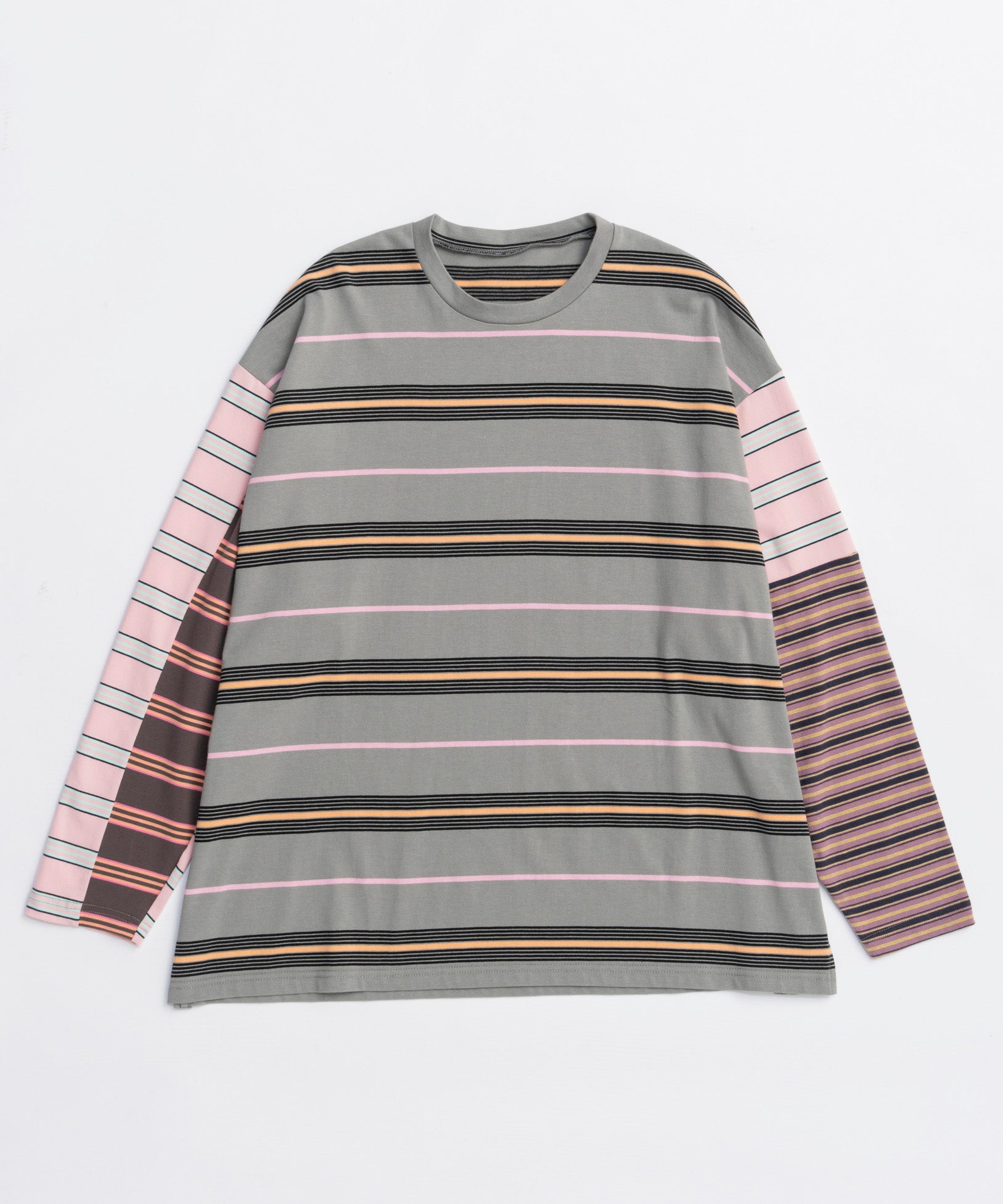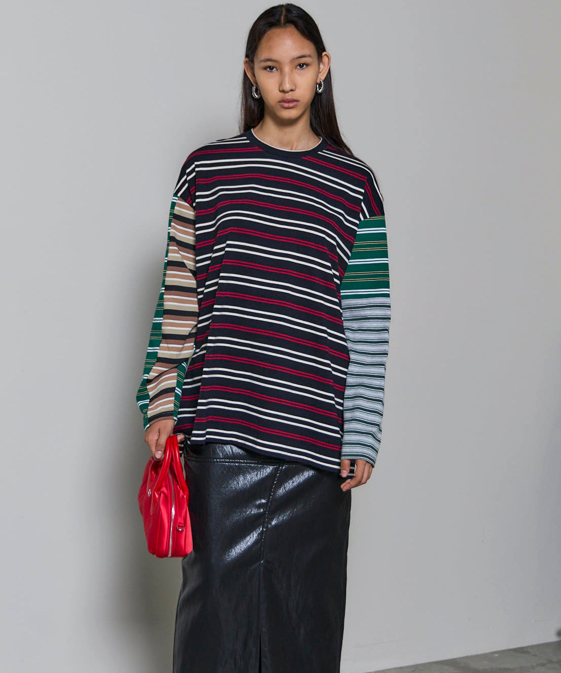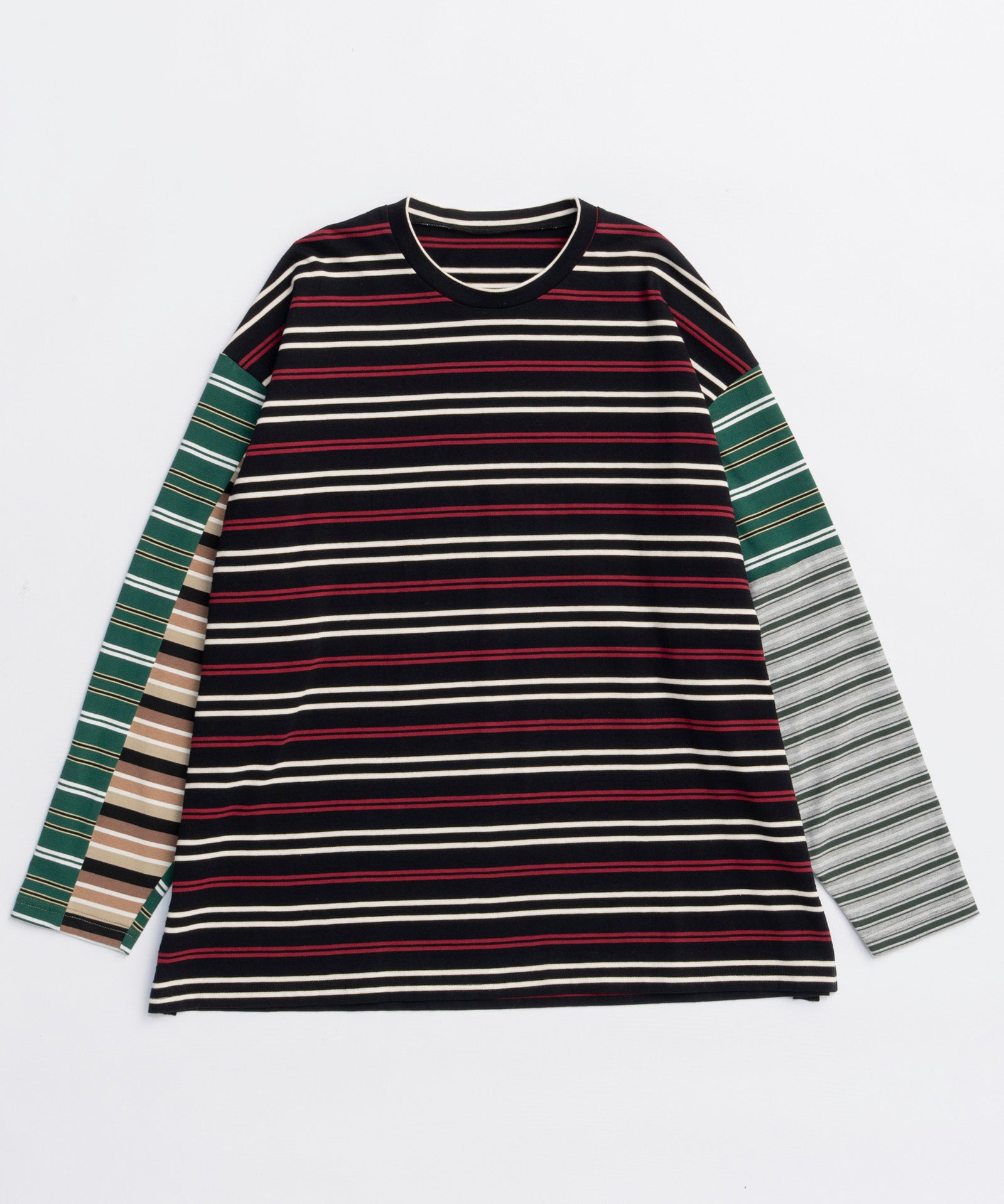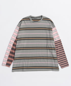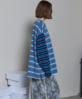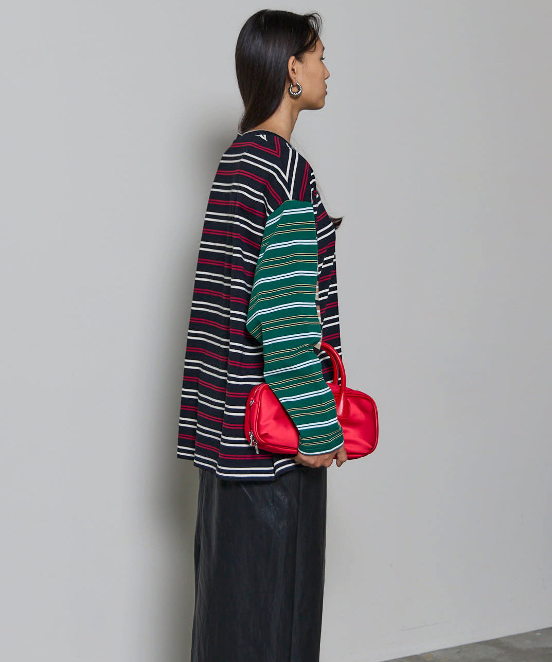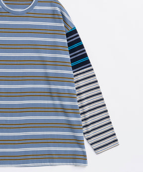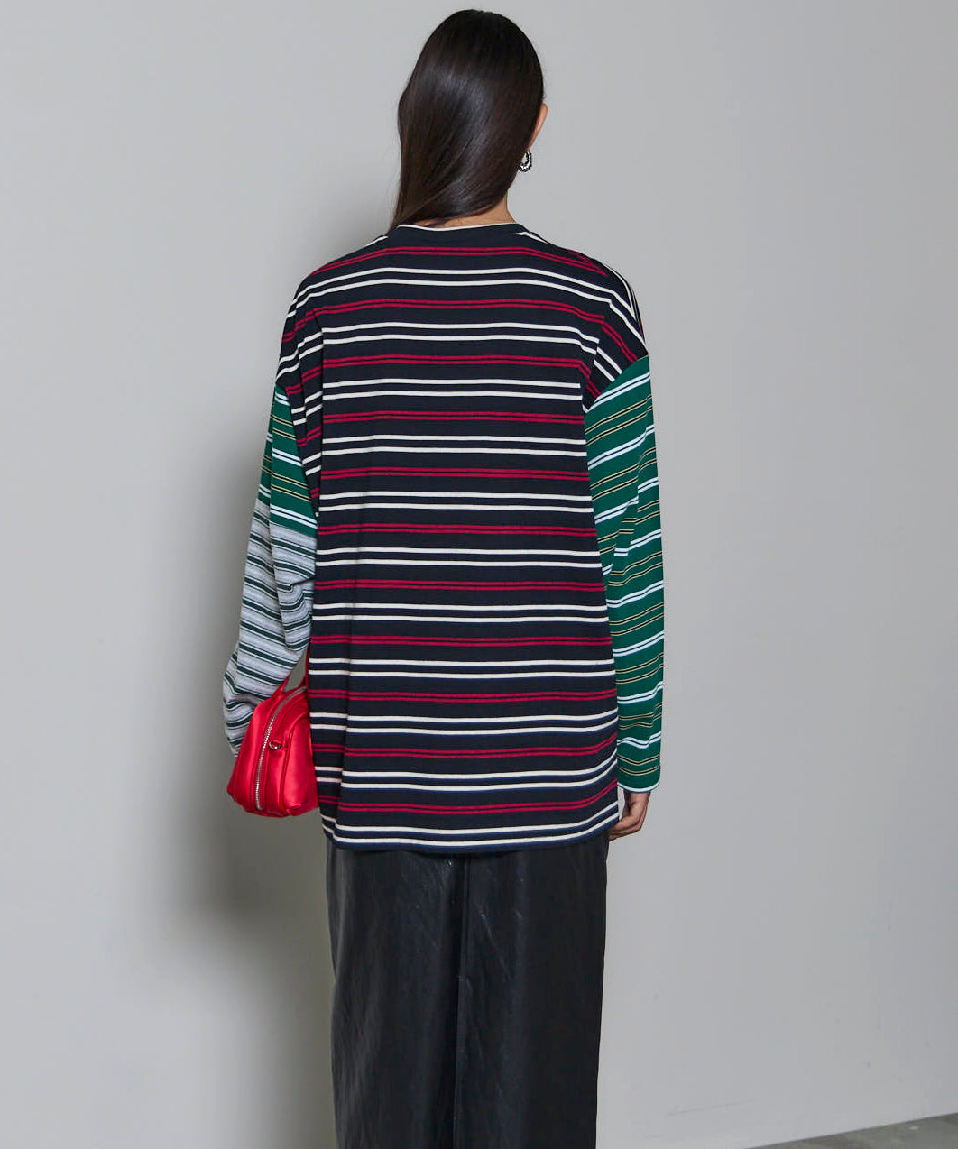 ・ピッチの異なるボーダー柄を配色で組み合わせた、遊び心たっぷりのロングスリーブトップス。