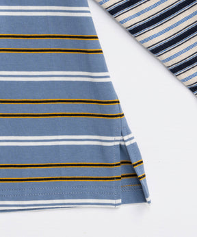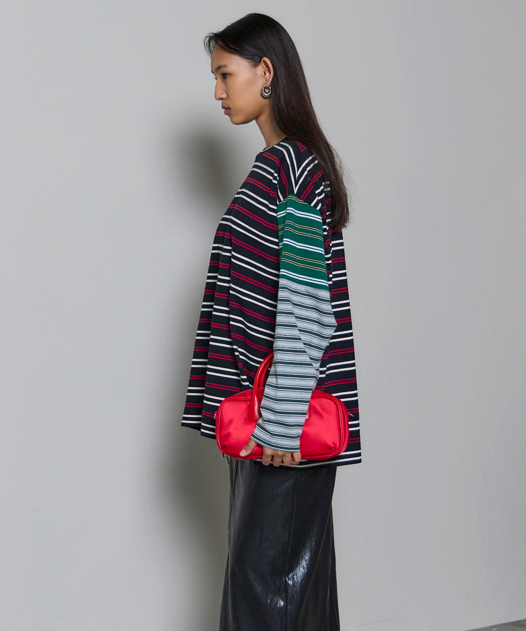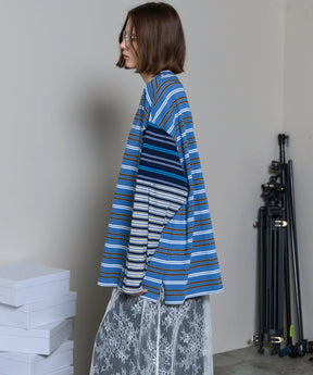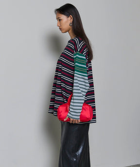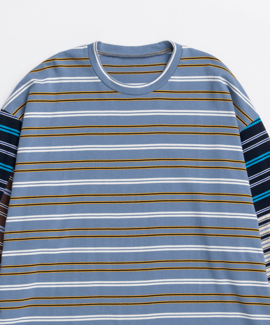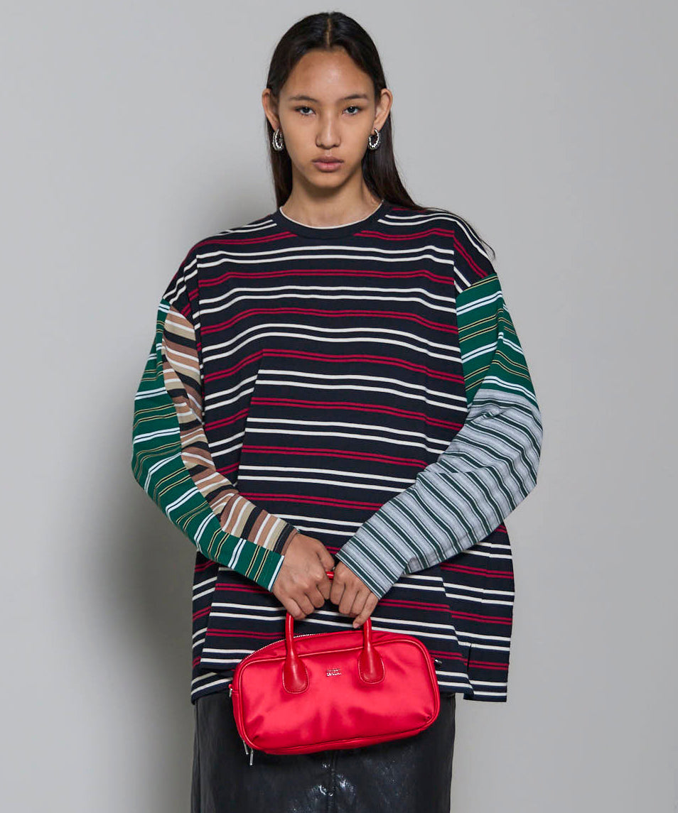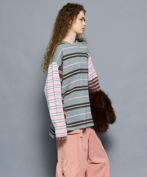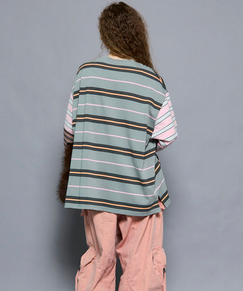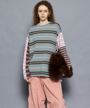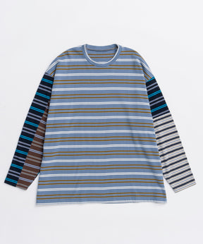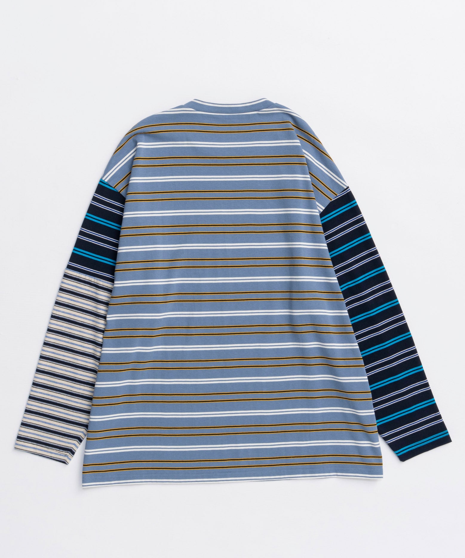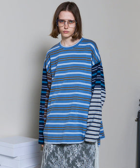 ・ピッチの異なるボーダー柄を配色で組み合わせた、遊び心たっぷりのロングスリーブトップス。