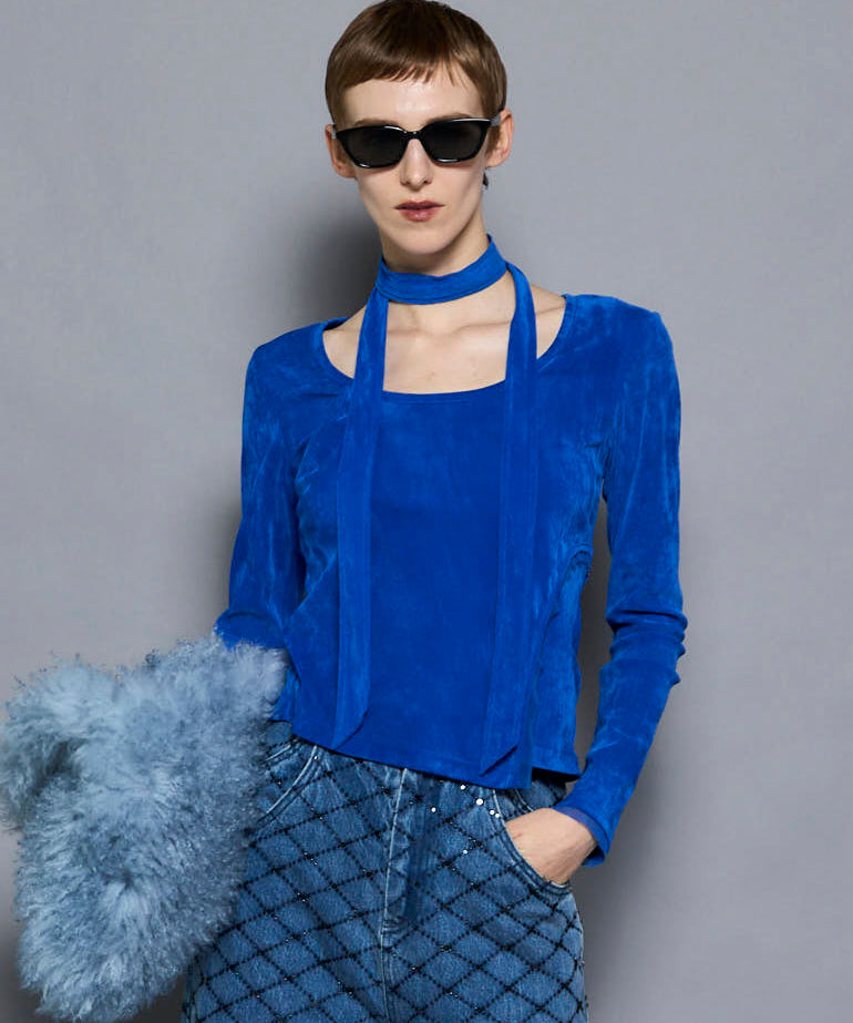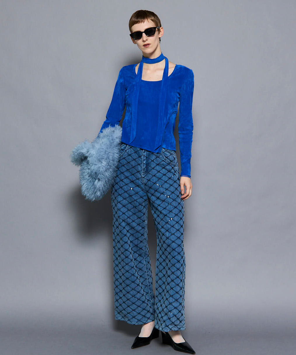 ベロア本来の美しい光沢感に、ほんのりとした透け感がヌケ感をプラスしてくれます。