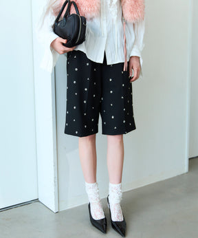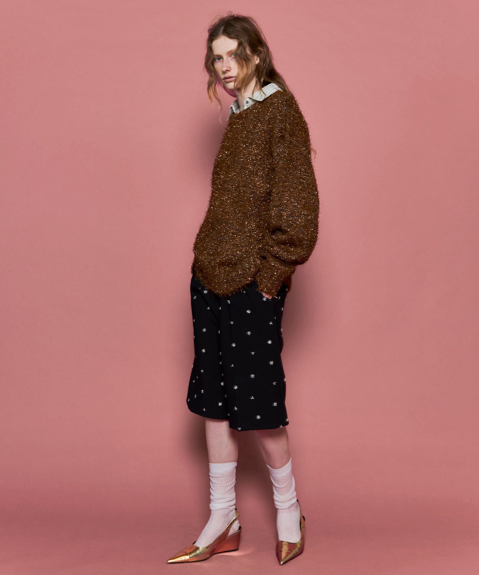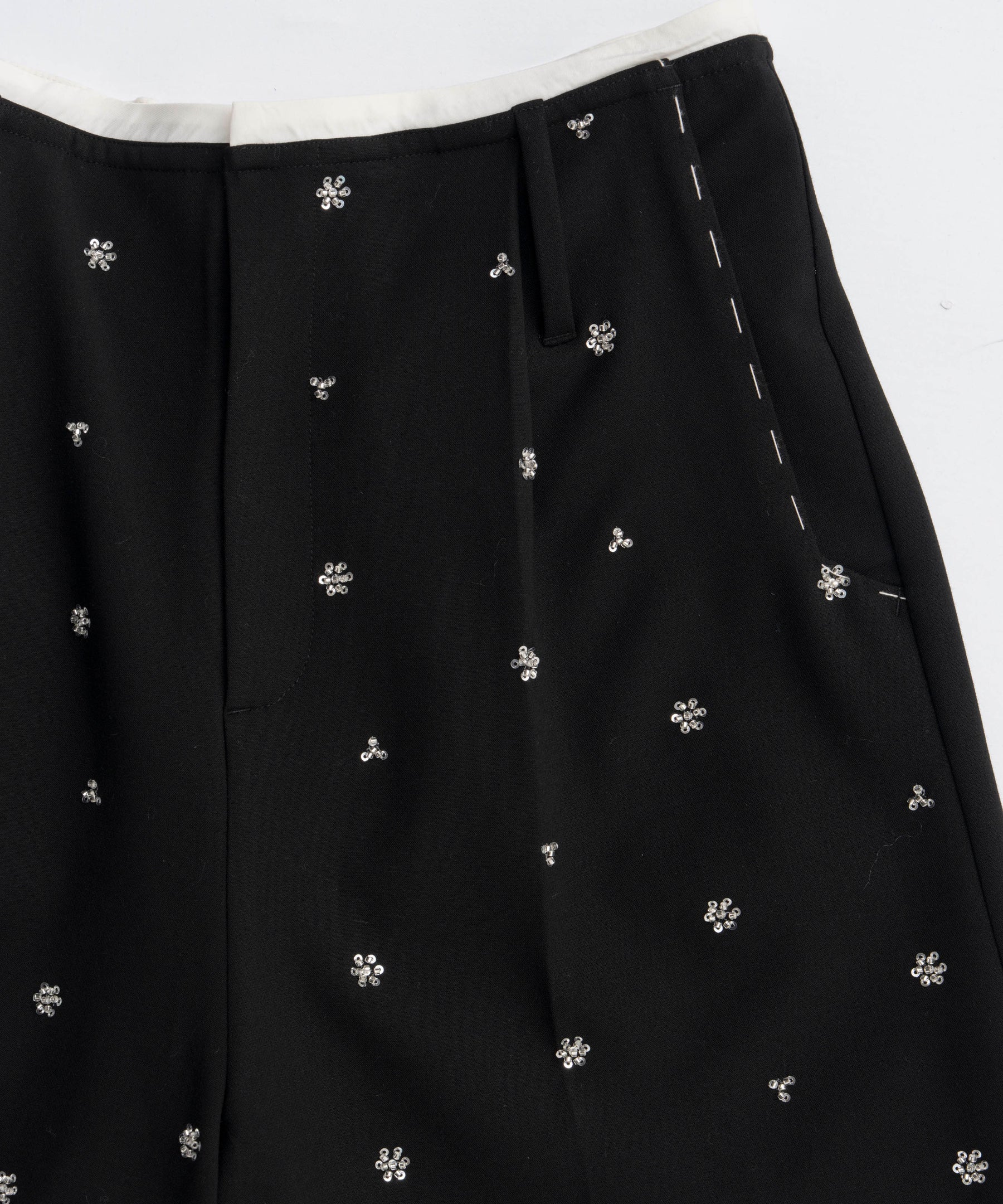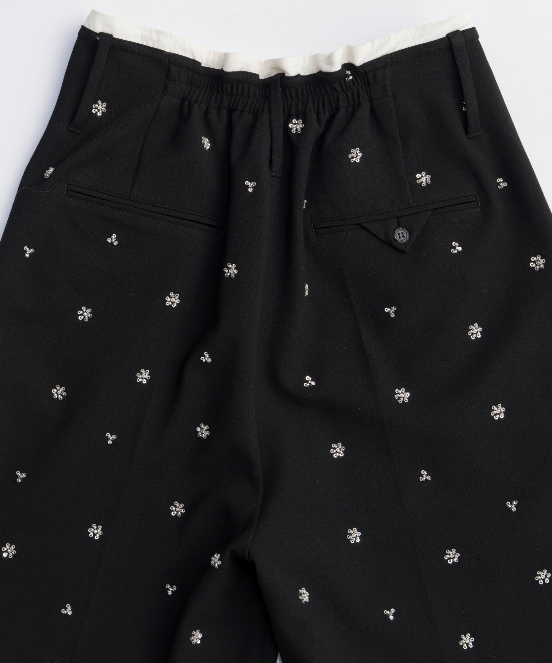 ウーステッドの素材にフラワーの形を施したスパンコール刺繍のMAISON SPECIALオリジナル素材でキャッチーで目を惹く一着に。