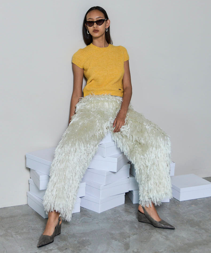 ・ファーよりも抑えめのボリュームでスタイリングへの取り入れやすさもポイントに。