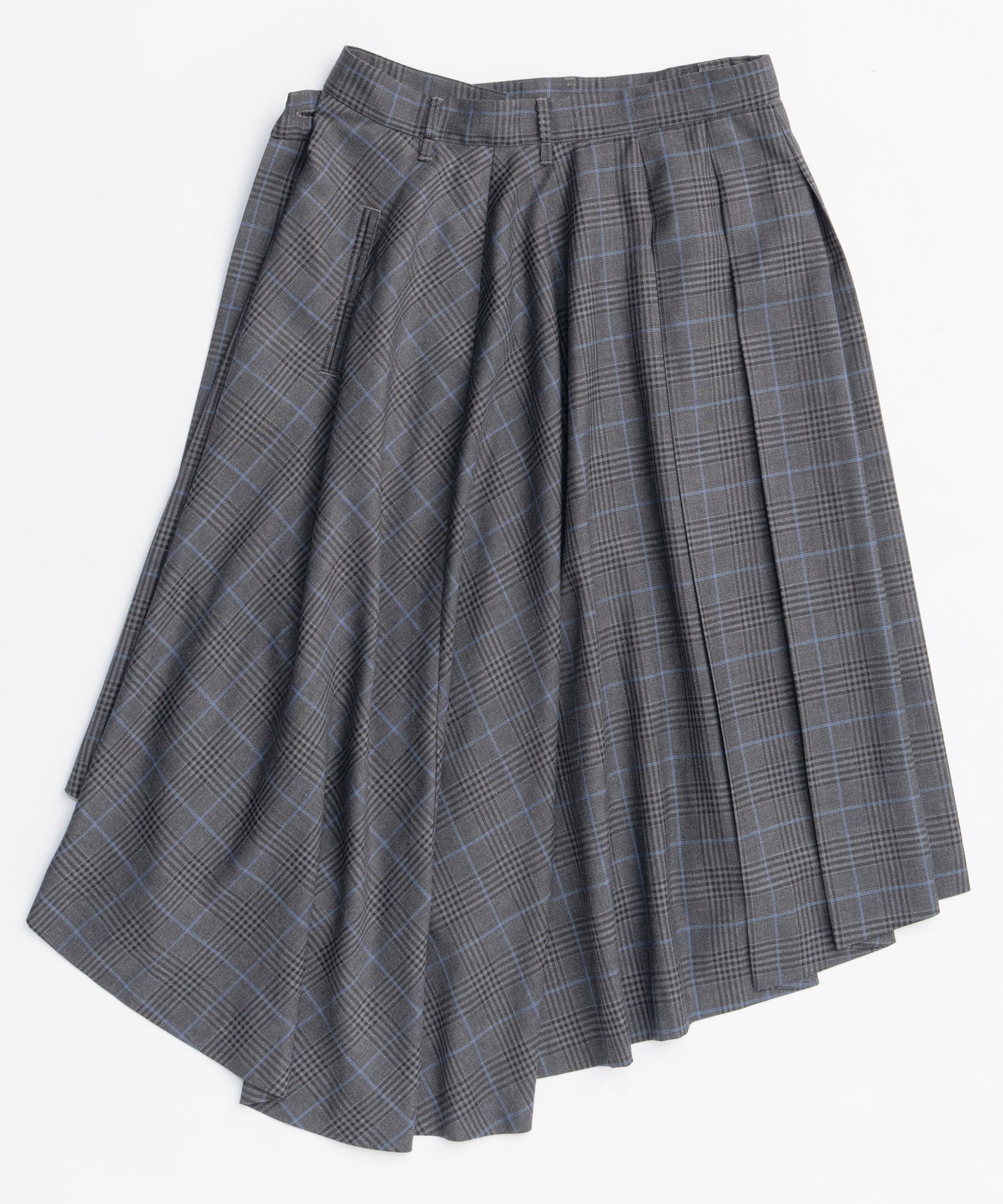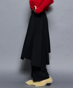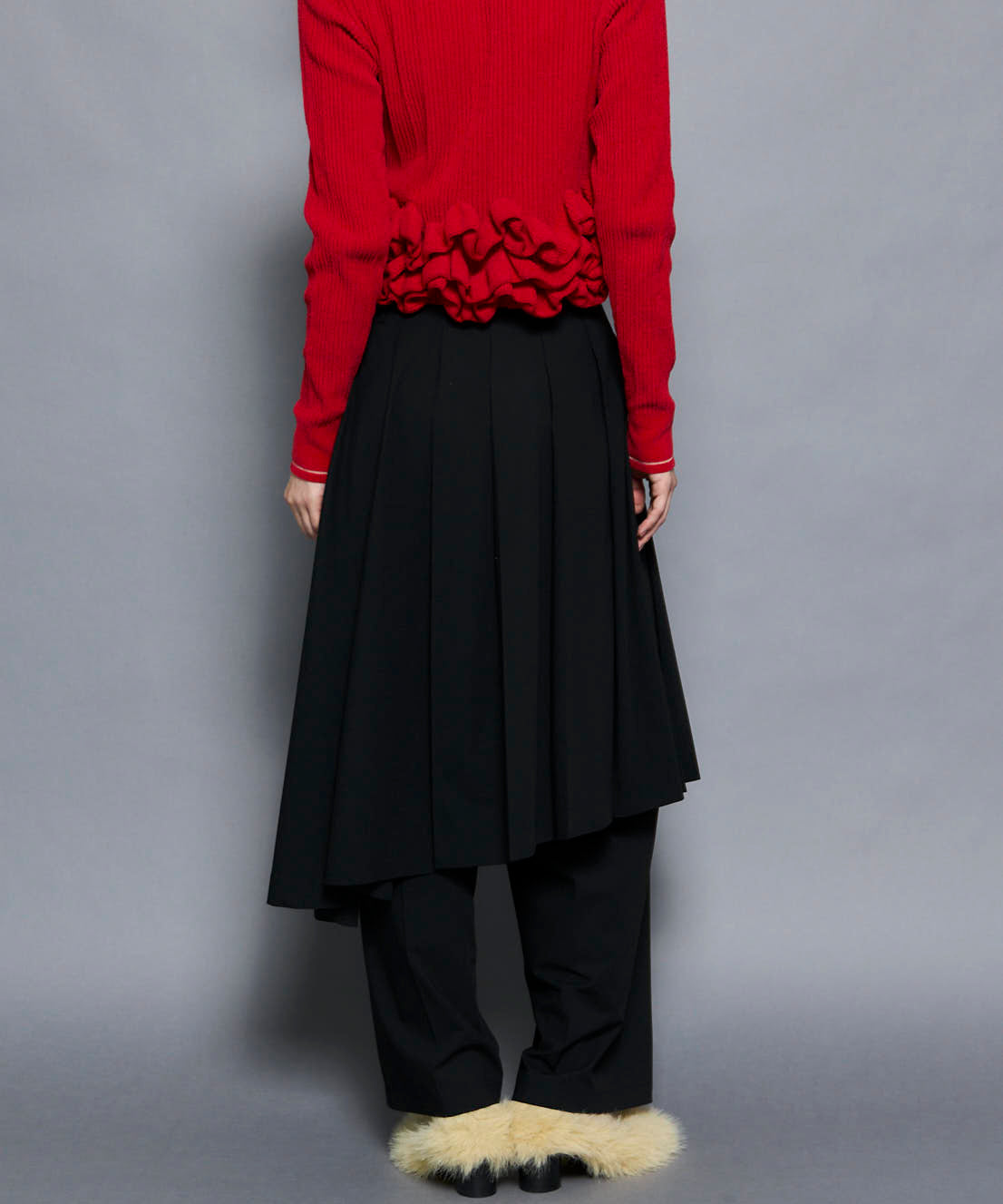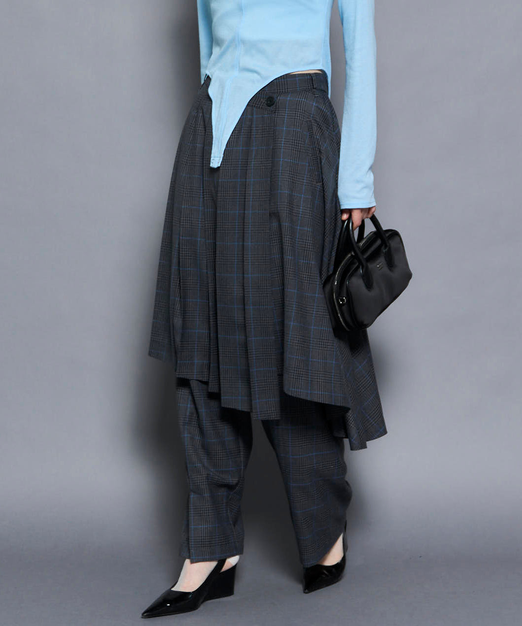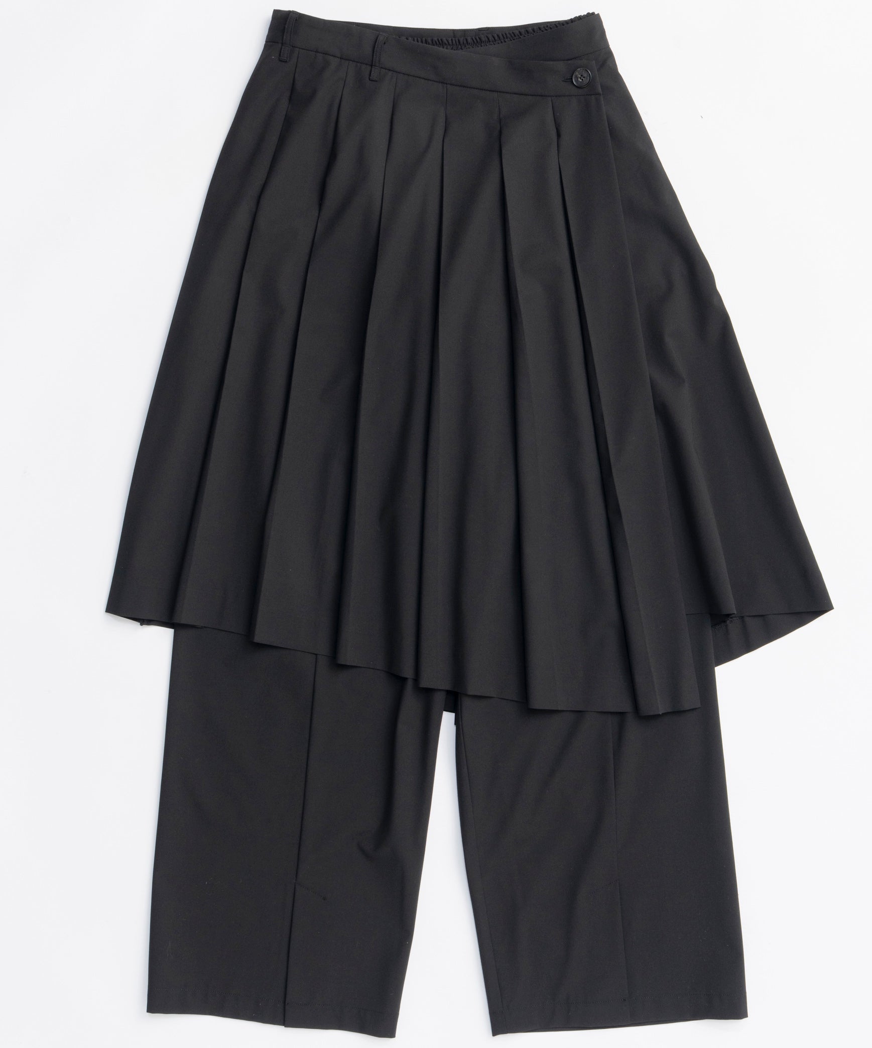 ・アシンメトリーなプリーツのラップスカートとスラックスがセットになった遊び心あるモードなアイテム。