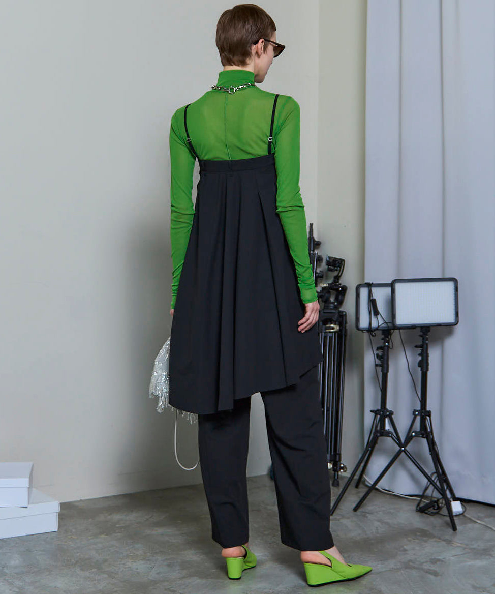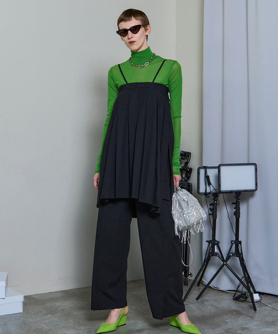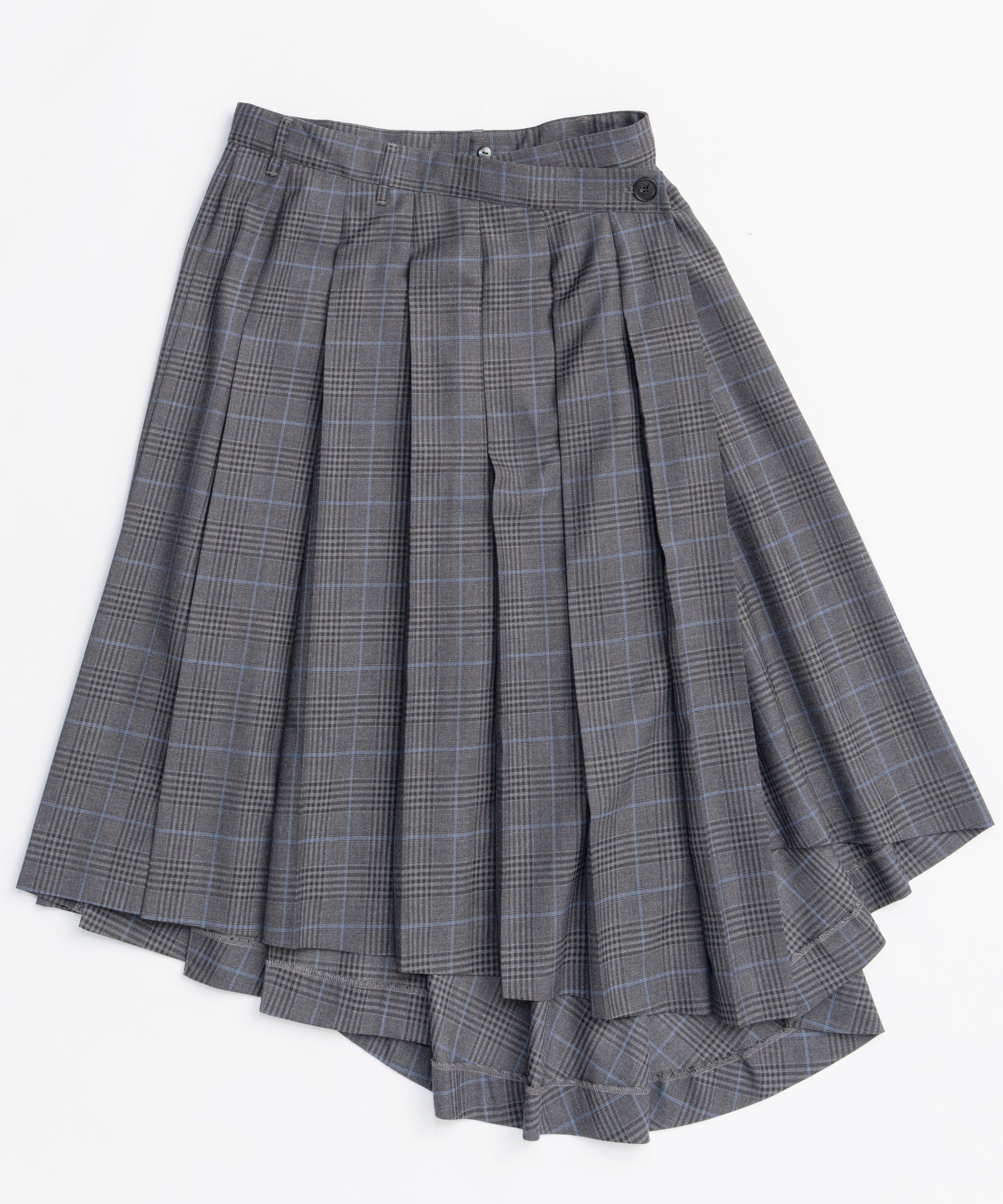 ・アシンメトリーなプリーツのラップスカートとスラックスがセットになった遊び心あるモードなアイテム。