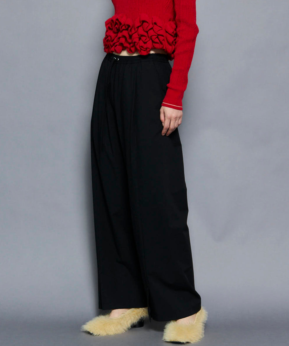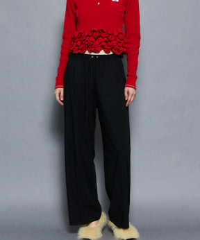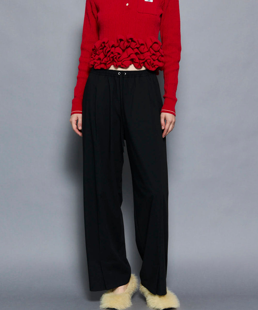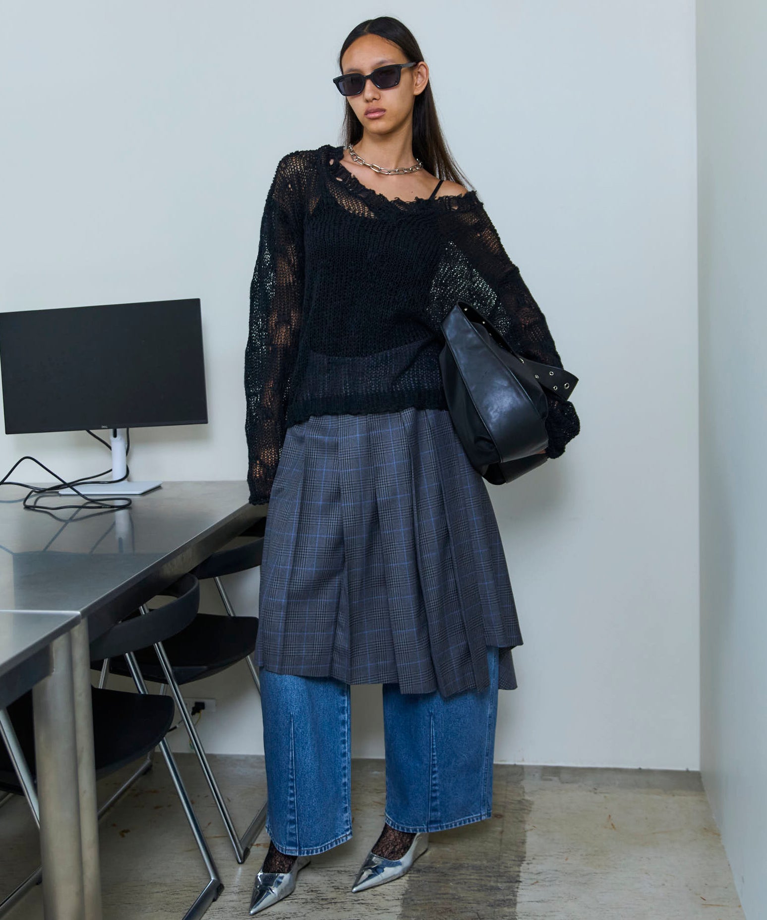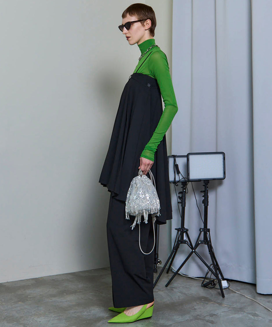 ・アシンメトリーなプリーツのラップスカートとスラックスがセットになった遊び心あるモードなアイテム。