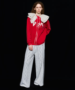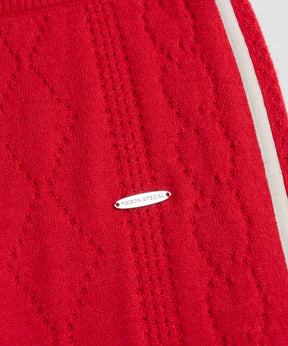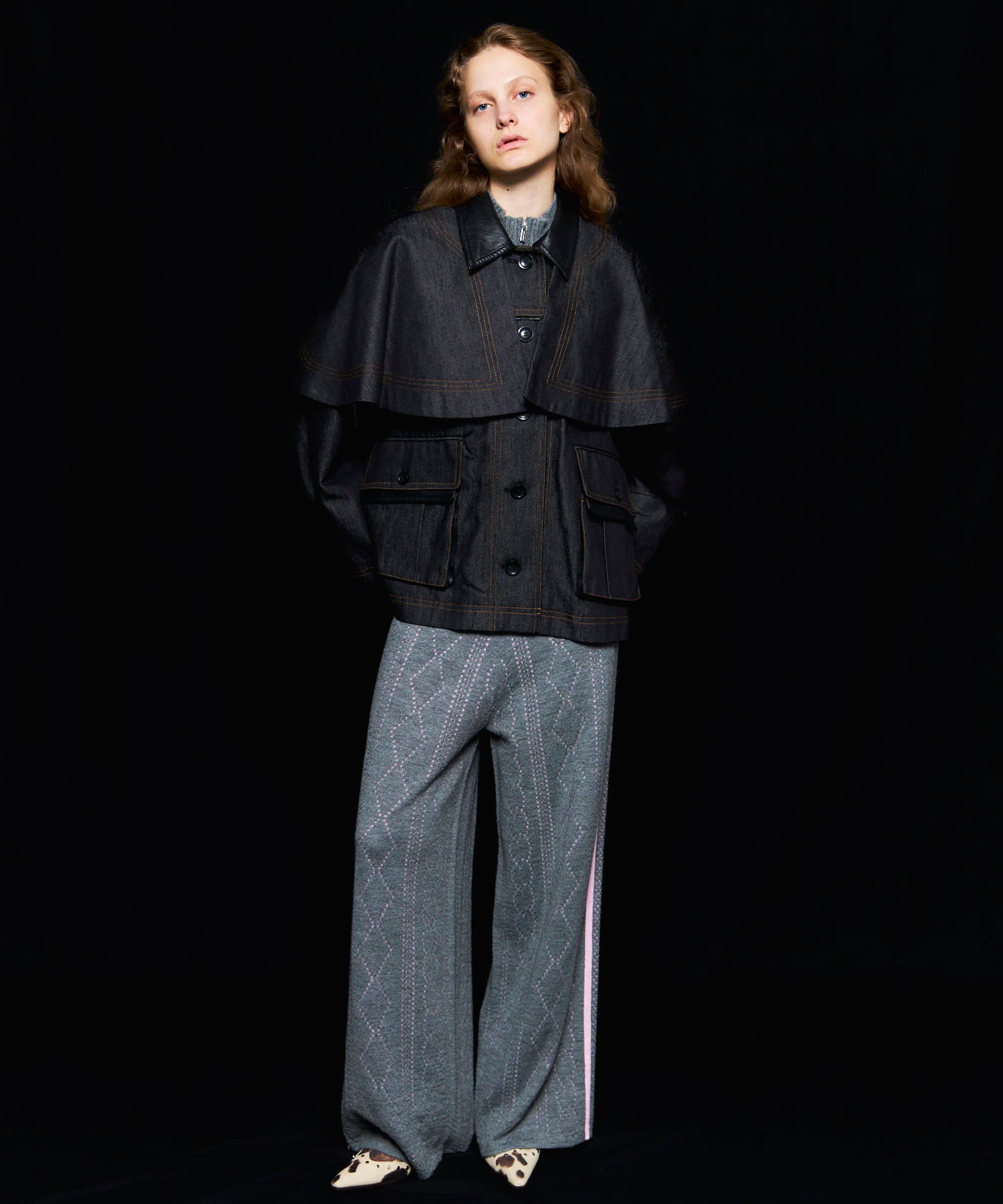 フロントにはダイヤ柄の透かし編み模様をあしらうことで、フェミニンかつ繊細な印象に仕上げました。