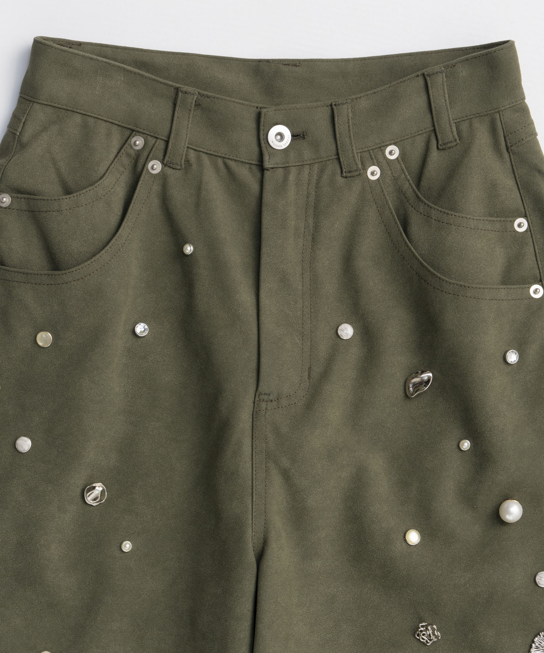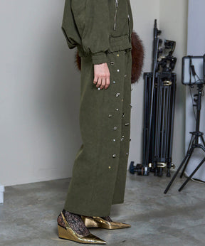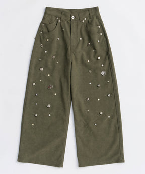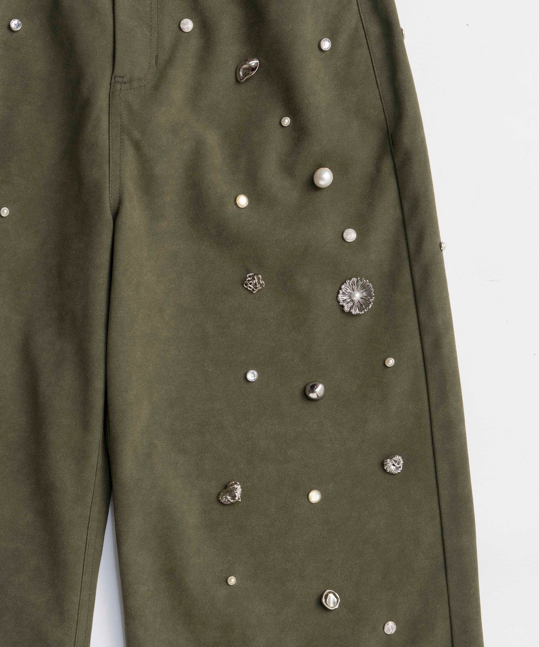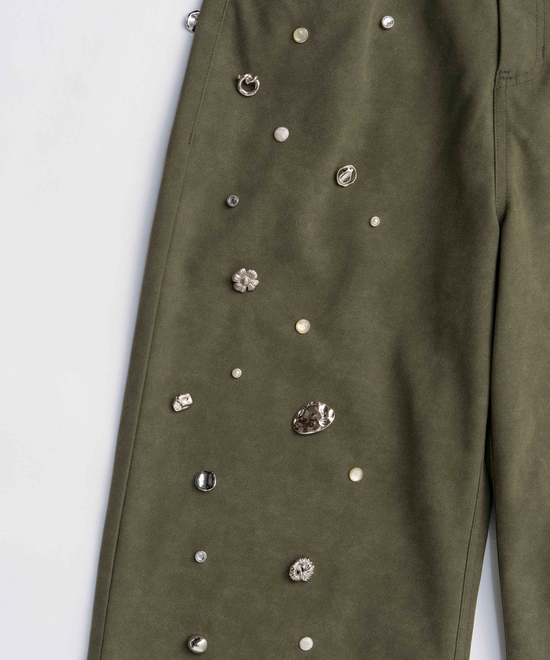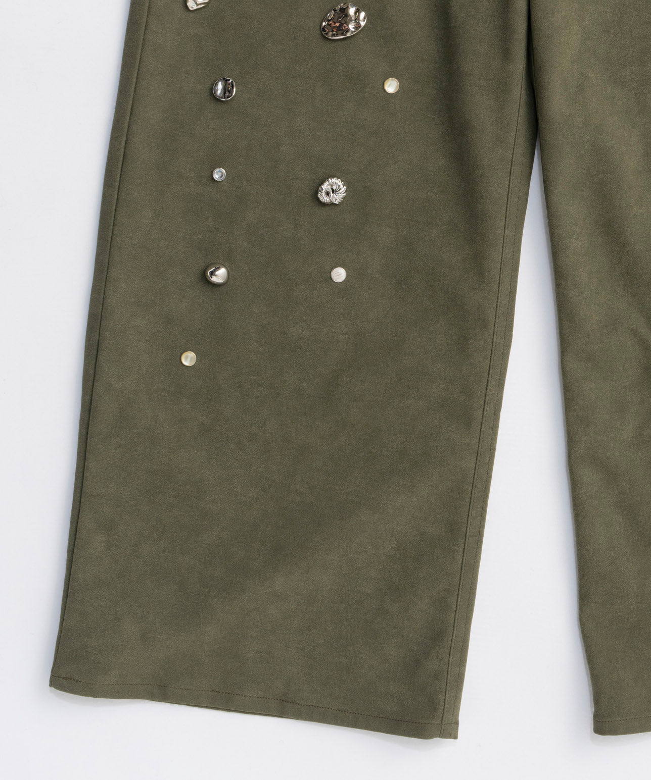 ・数種類のビジューや飾りボタンを一つ一つ手作業でつけた手の込んだ一着。