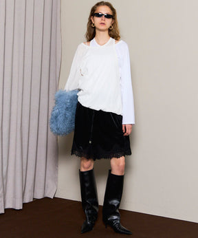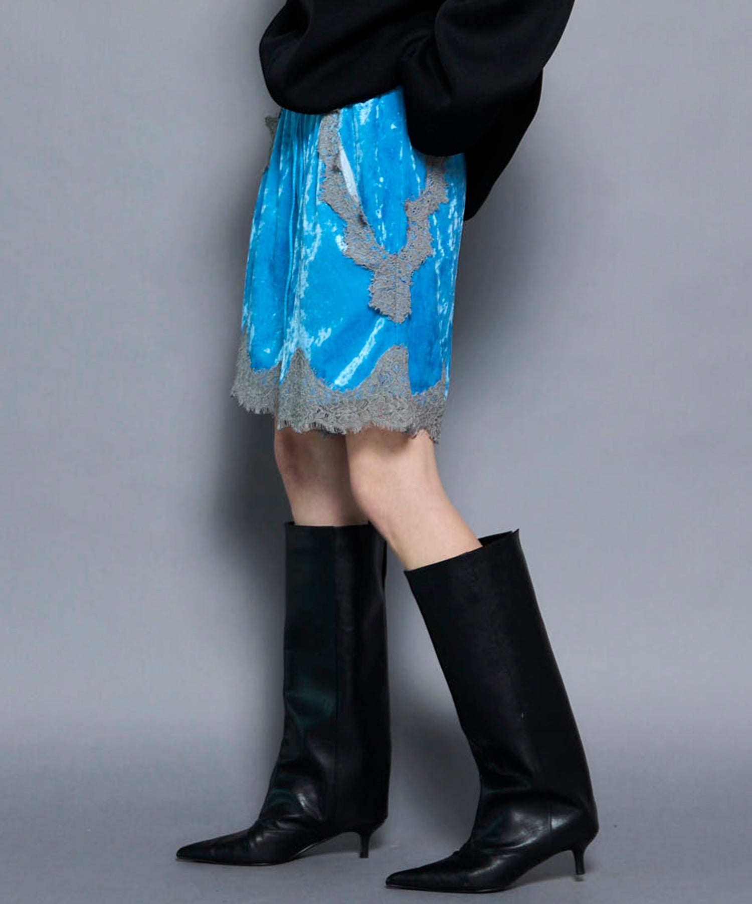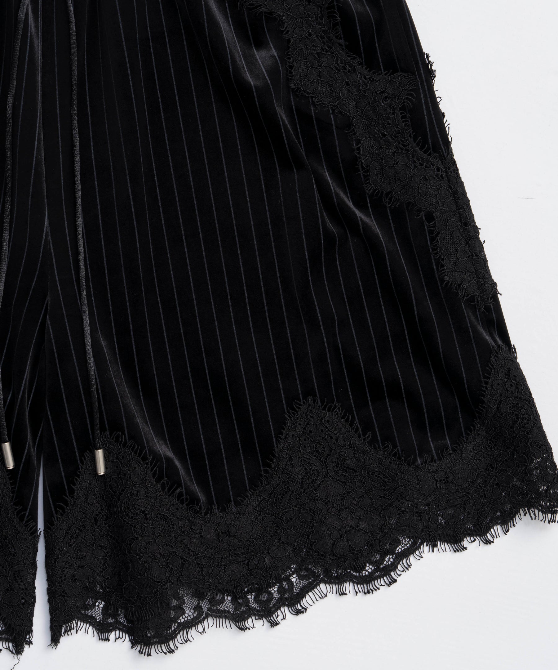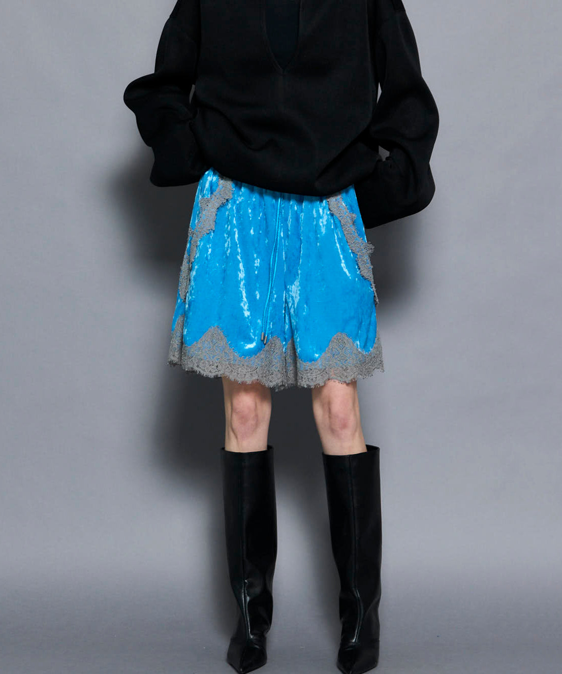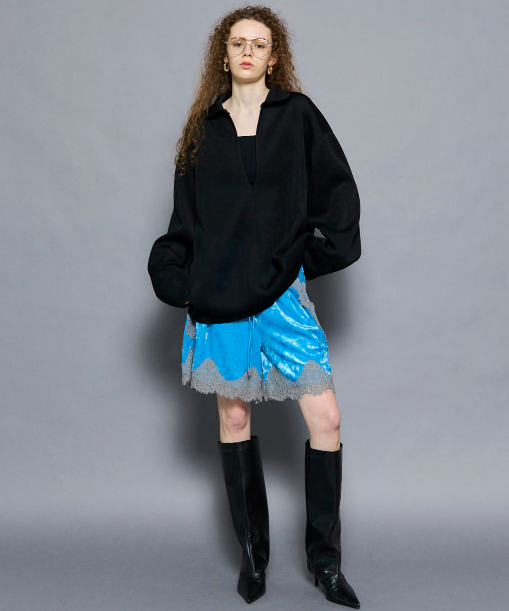 ・繊細なレースディテールもポイントで、裾にはスカラップ状にカットされたレースをあしらい、動くたびに揺れるフェミニンな表情がスタイリングに華やかさをプラス