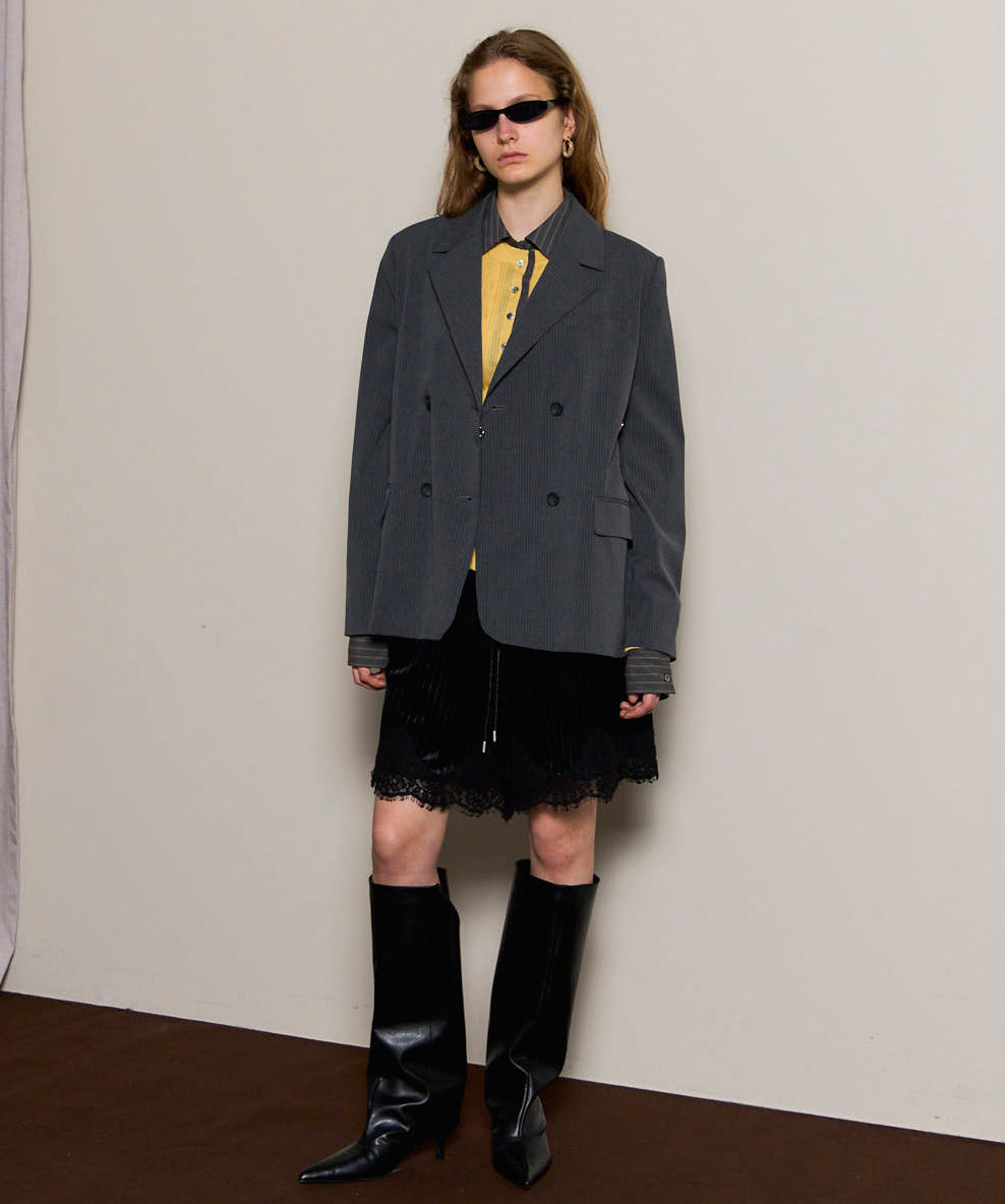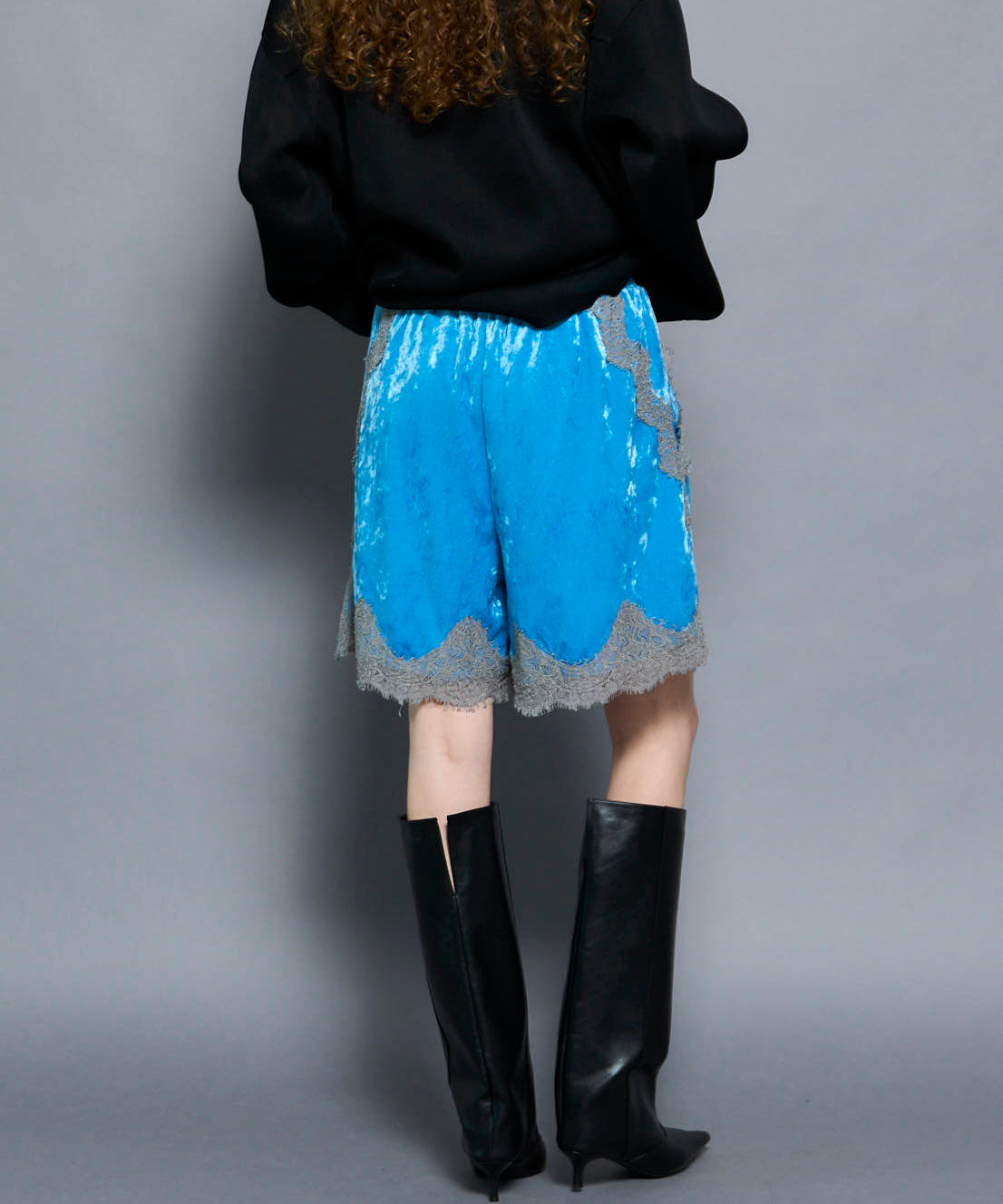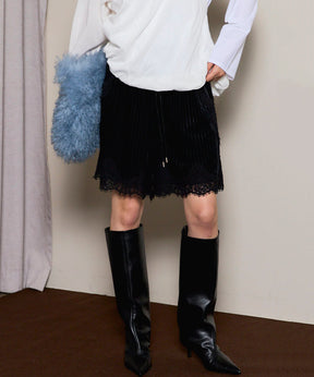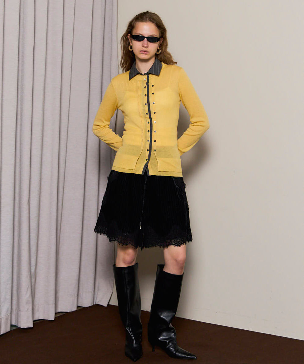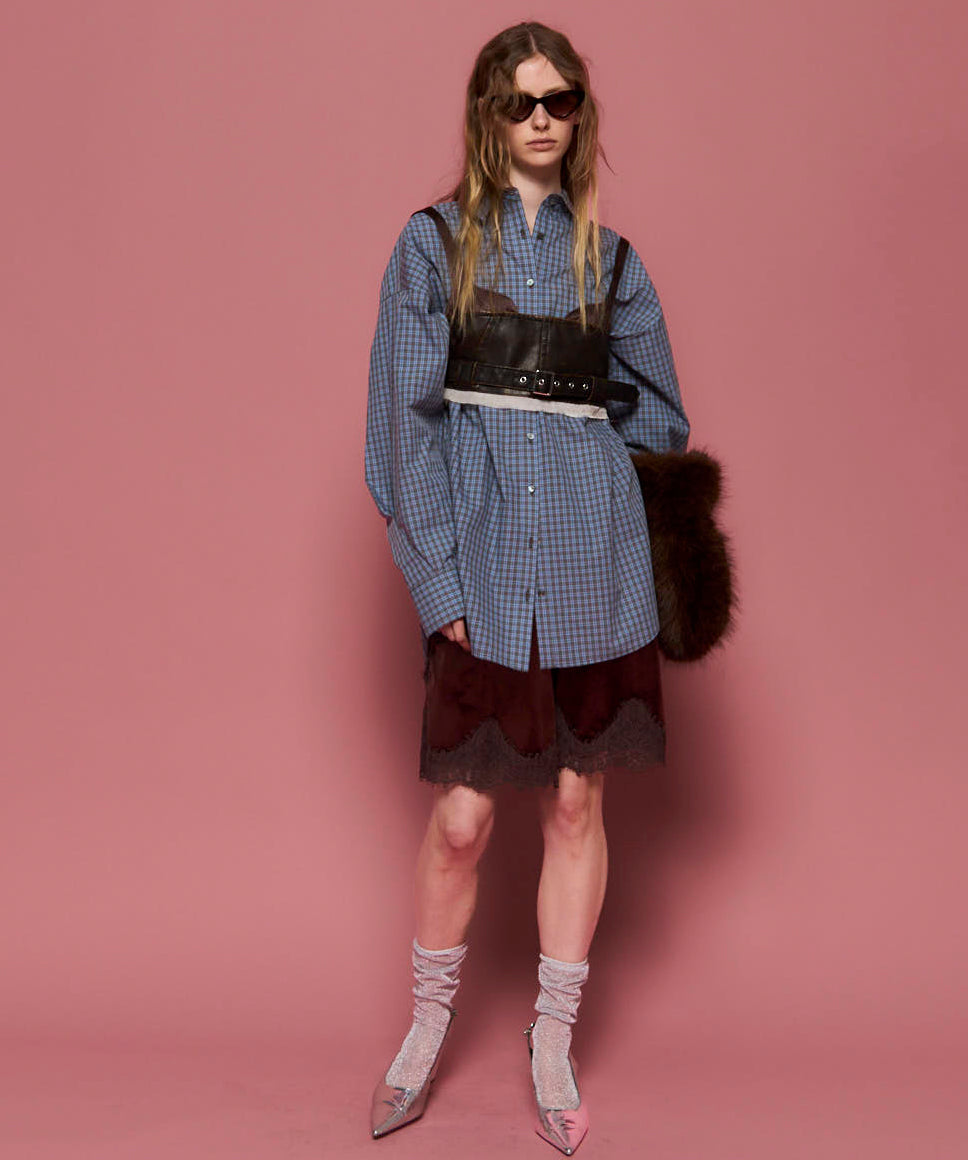 ・繊細なレースディテールもポイントで、裾にはスカラップ状にカットされたレースをあしらい、動くたびに揺れるフェミニンな表情がスタイリングに華やかさをプラス