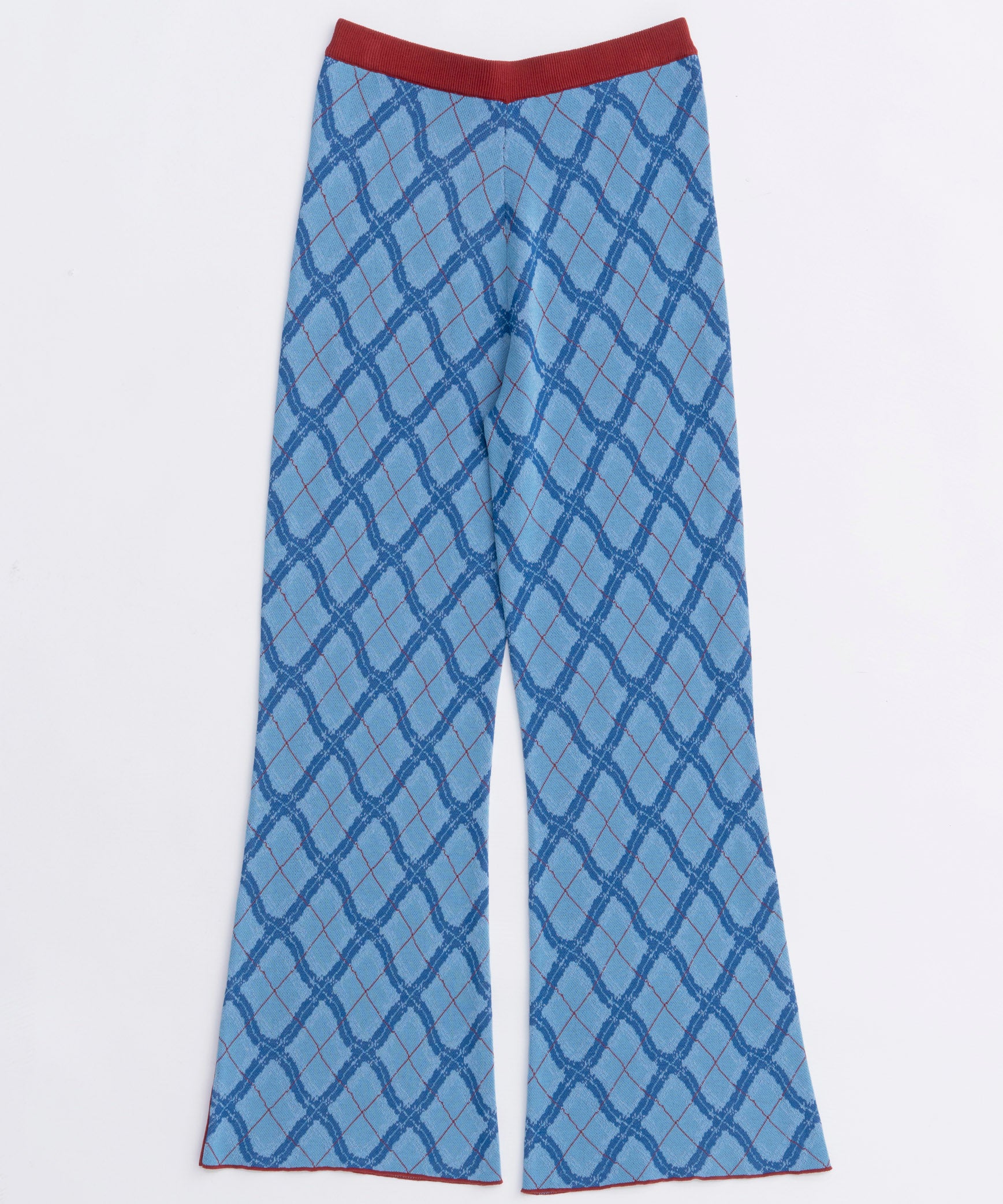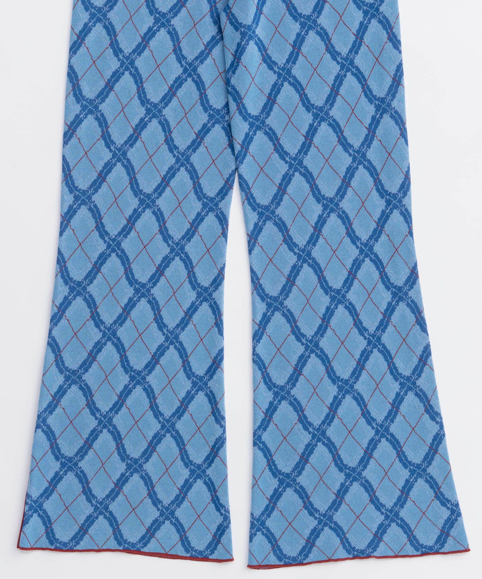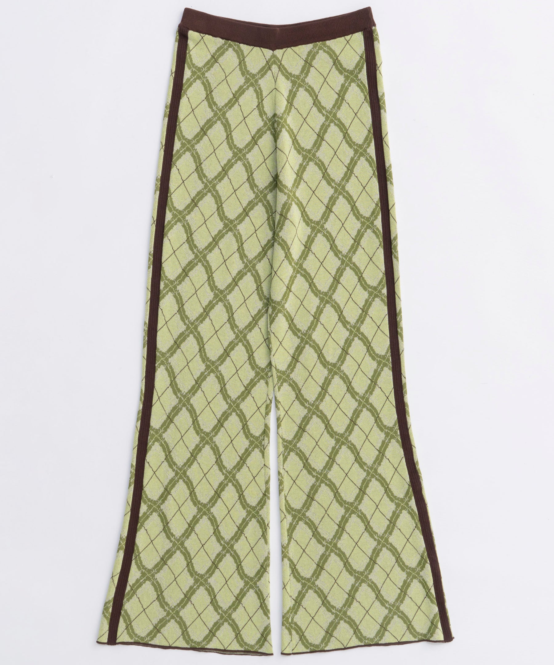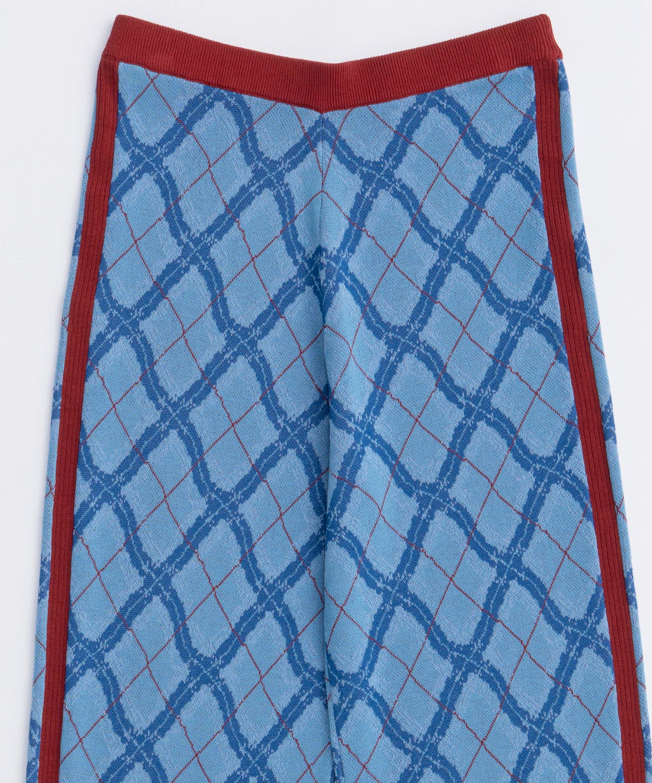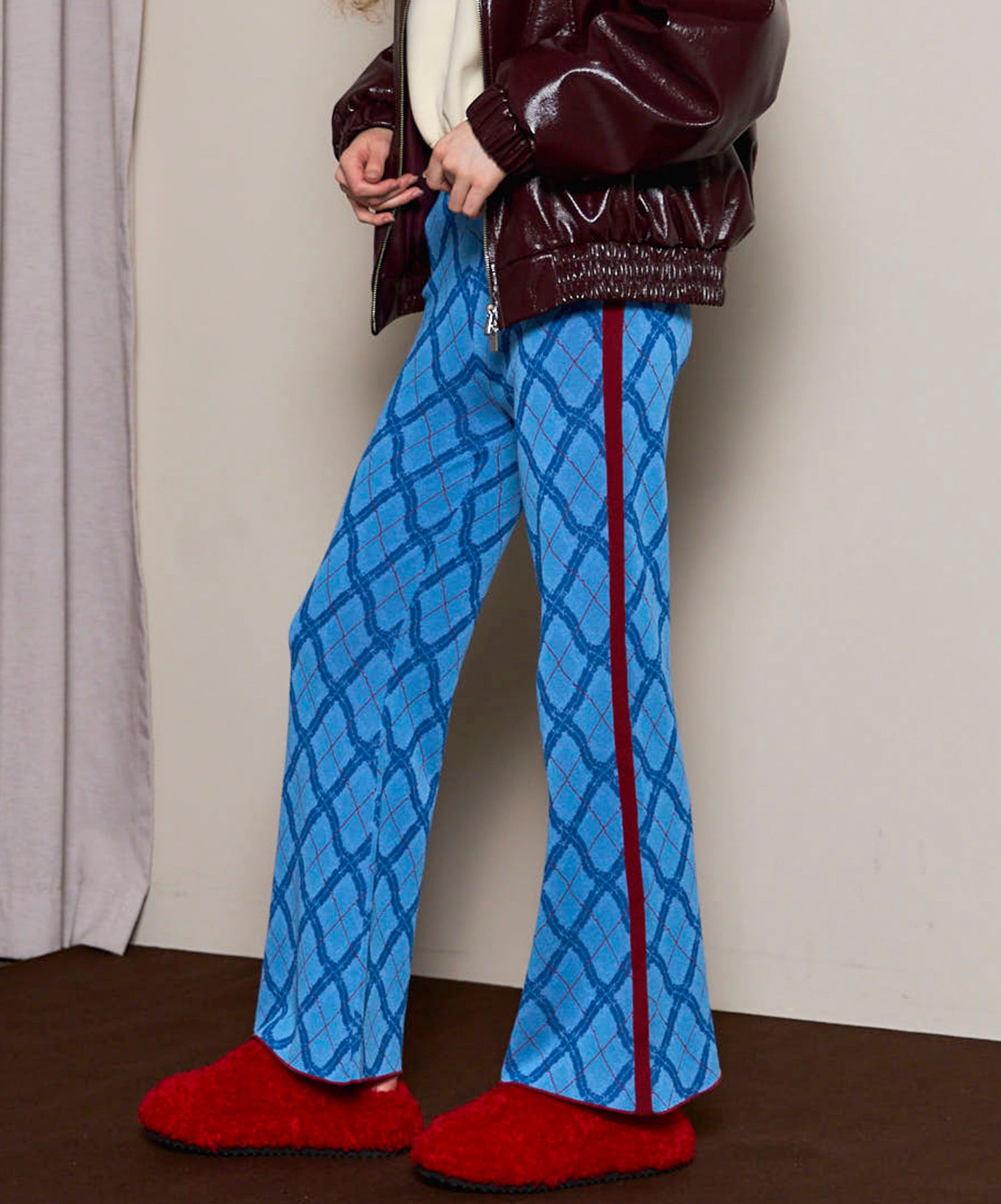 ・オリジナルのチェック柄が目を惹く,秋のムードたっぷりなニットパンツ。