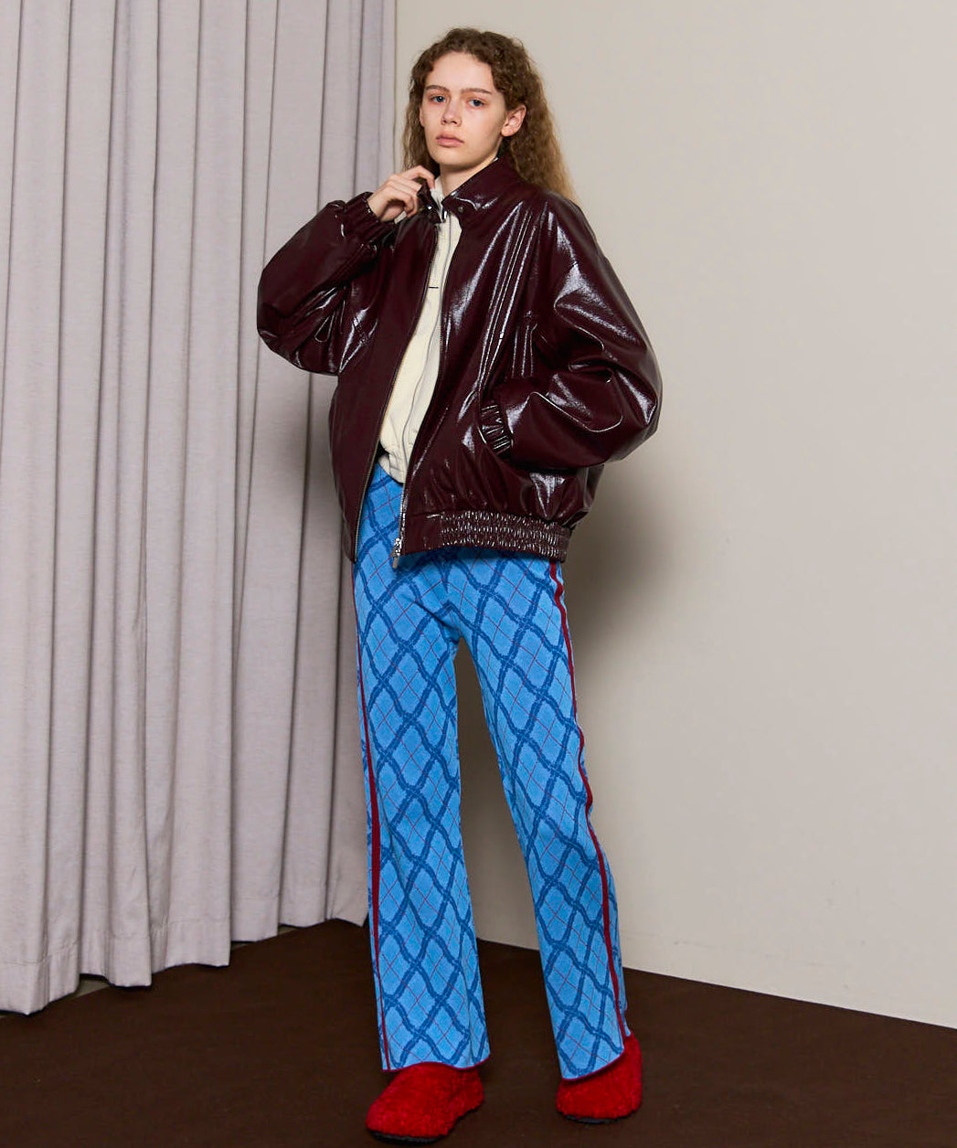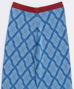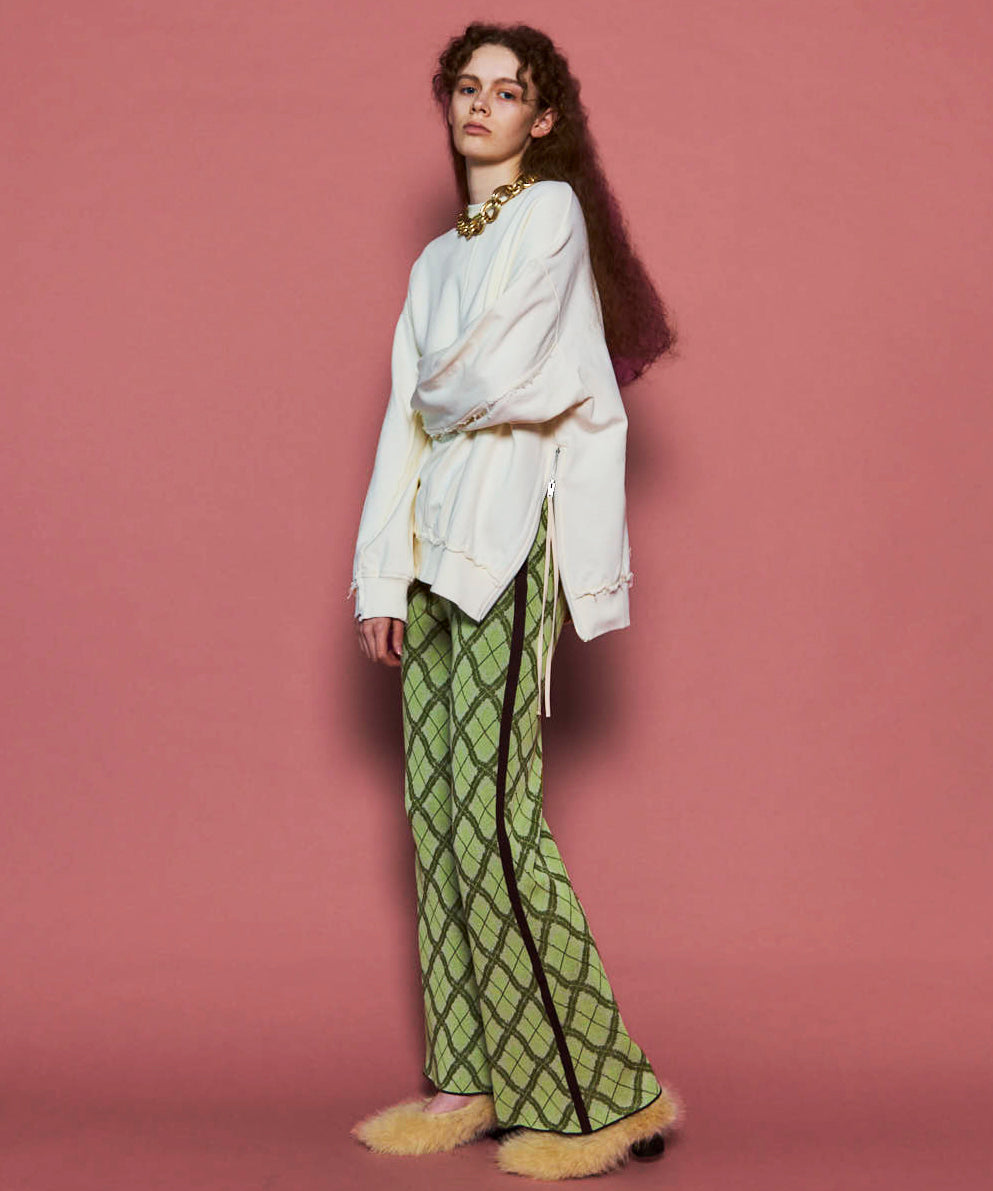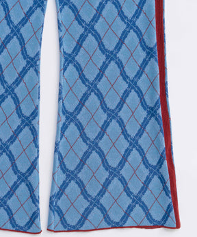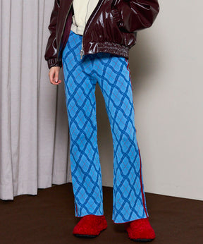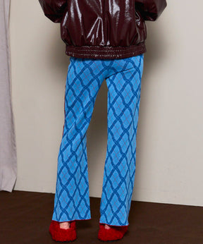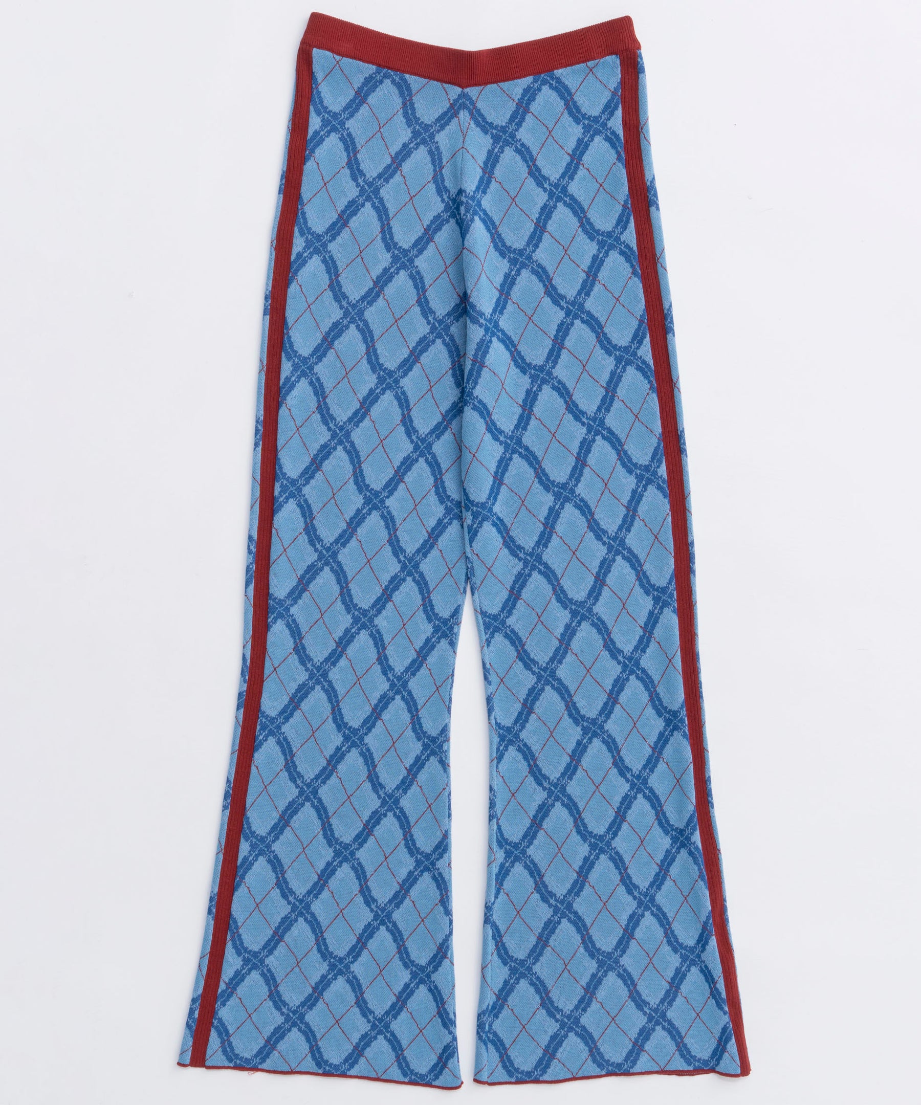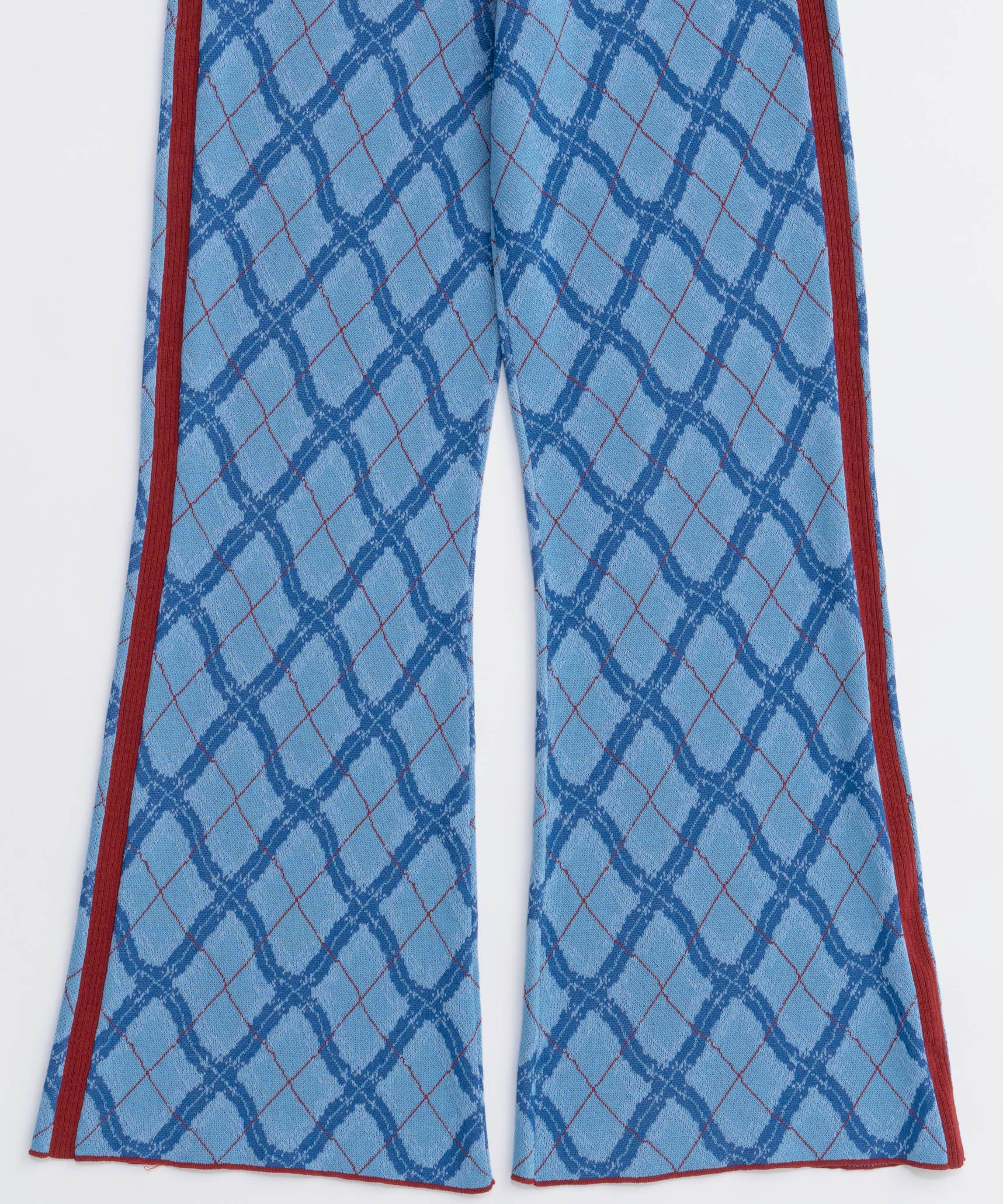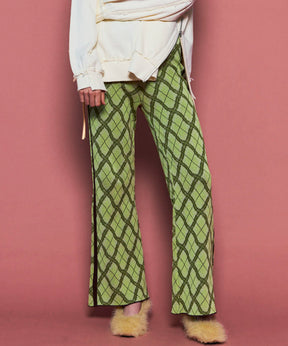 ・オリジナルのチェック柄が目を惹く,秋のムードたっぷりなニットパンツ。