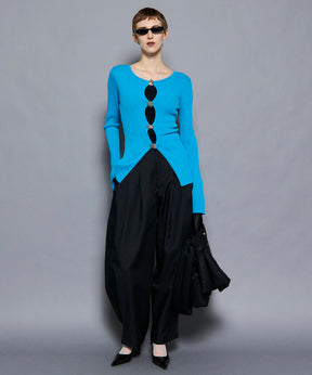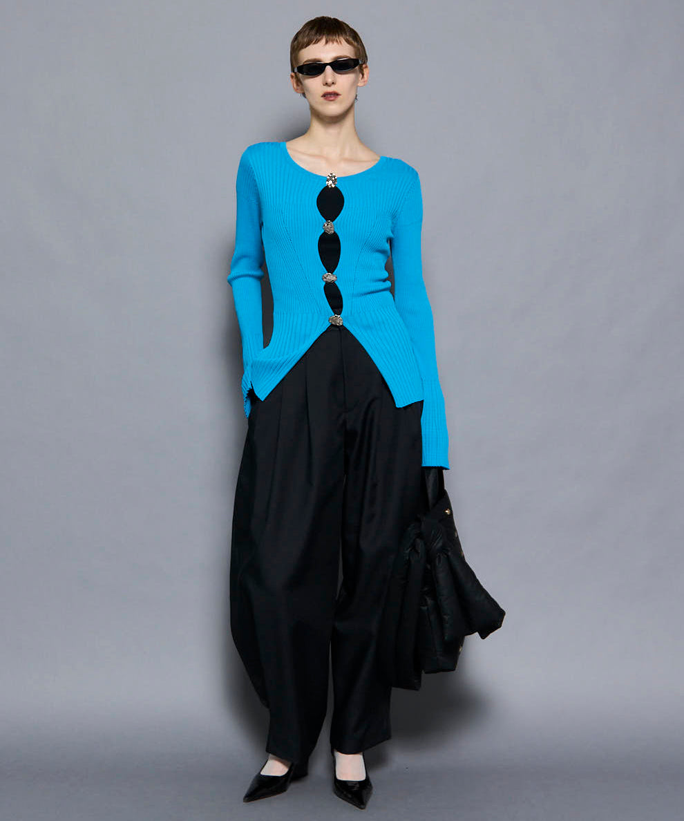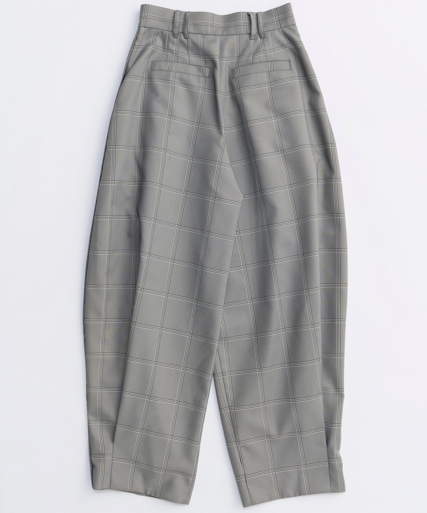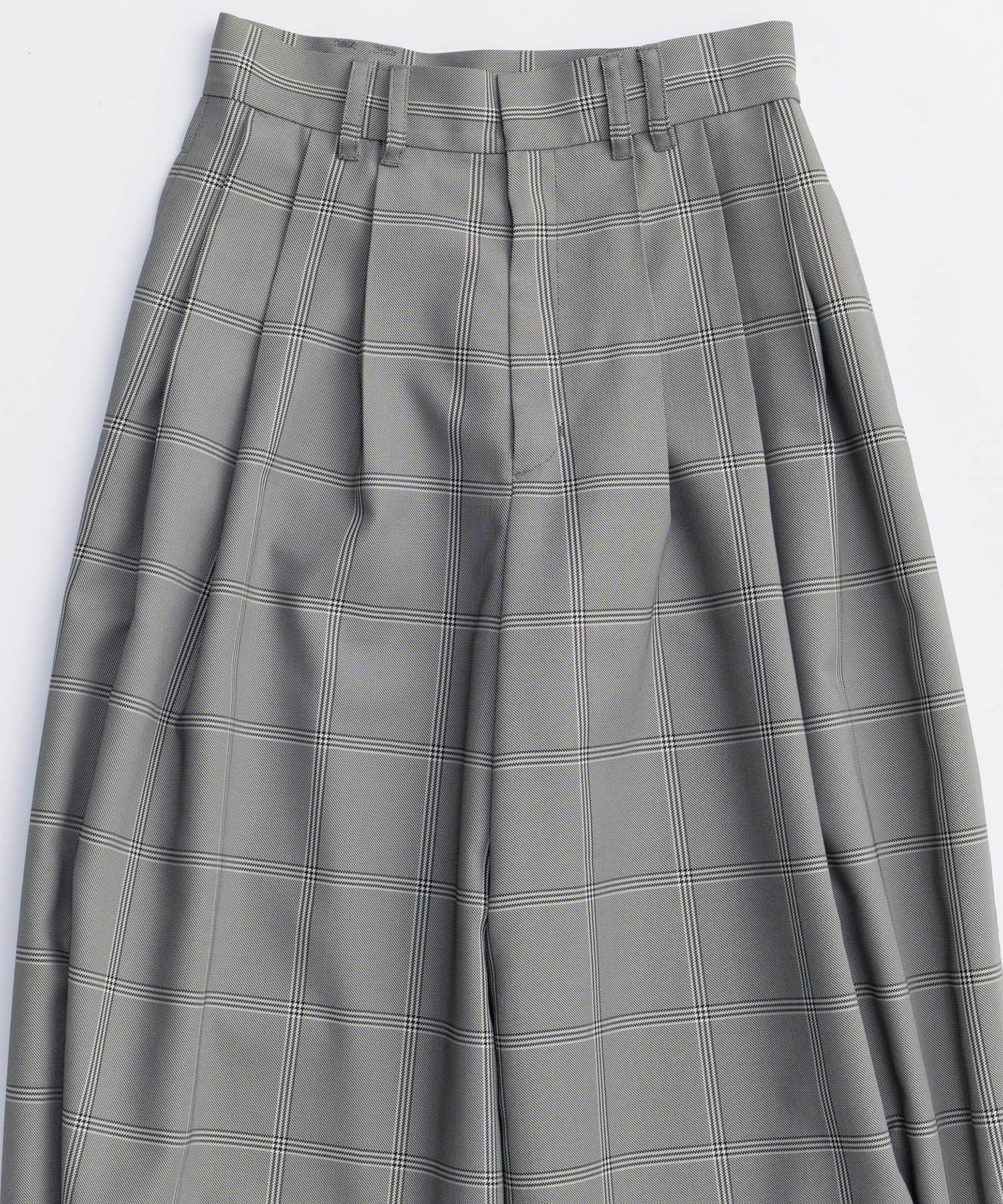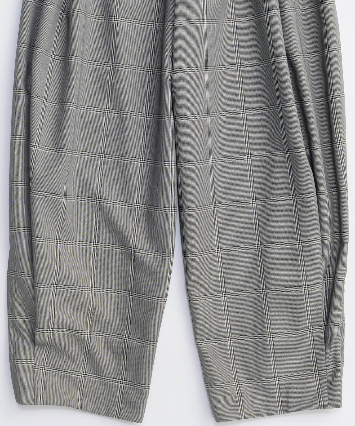 ウエストと裾に施した深めのタックと、独自のカーブパターン設計で立体的なフォルムを形成してるのがポイントです。
