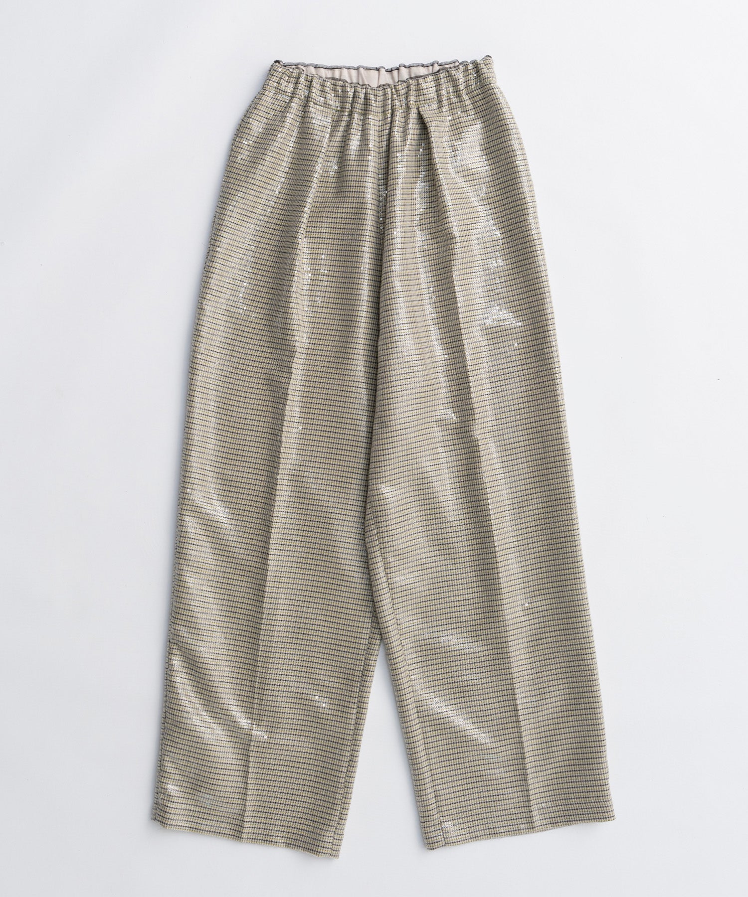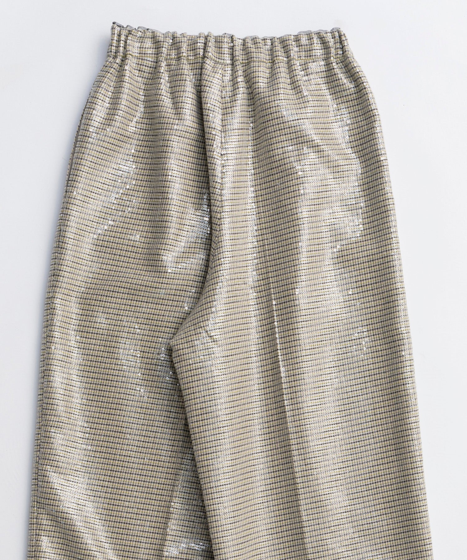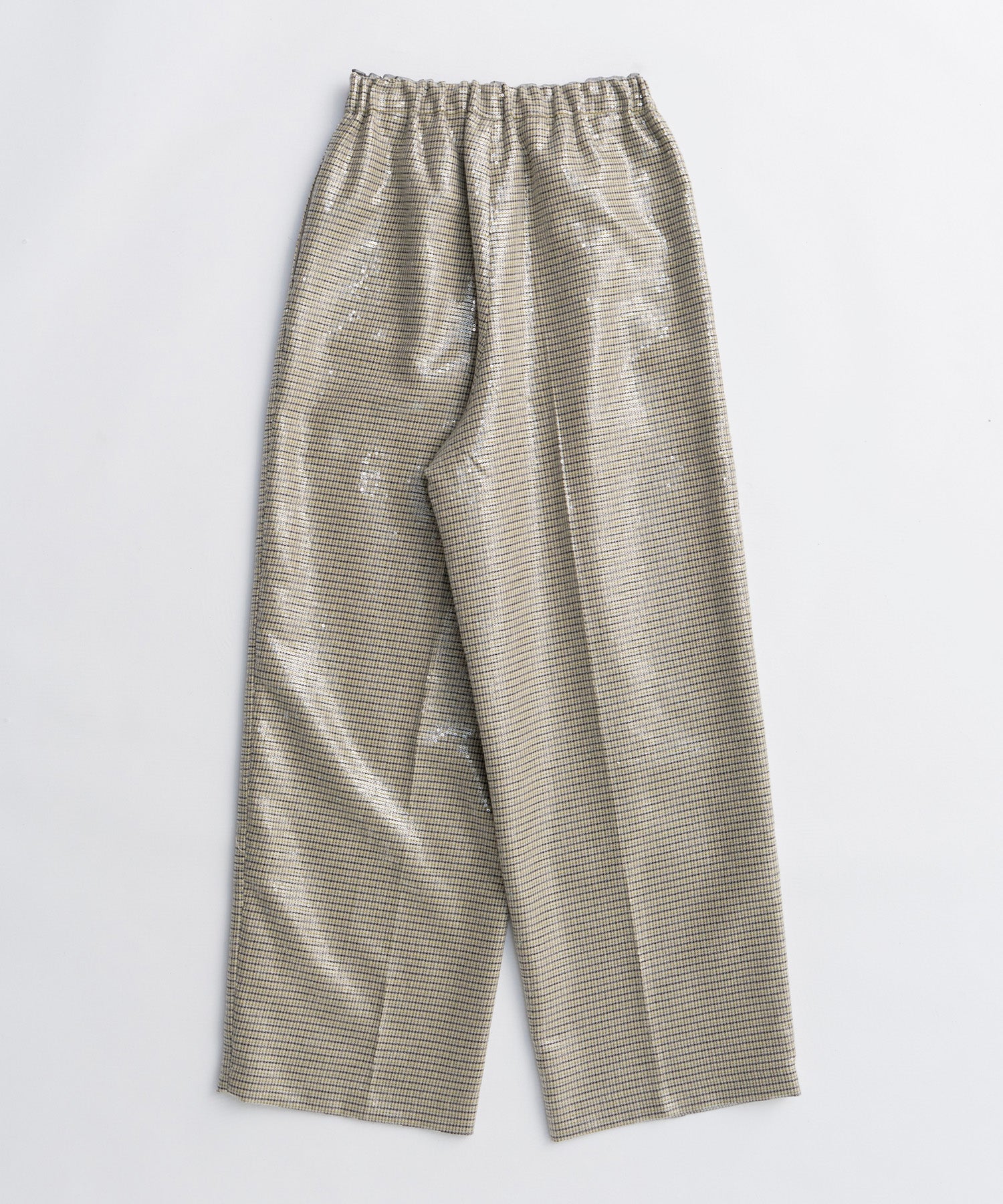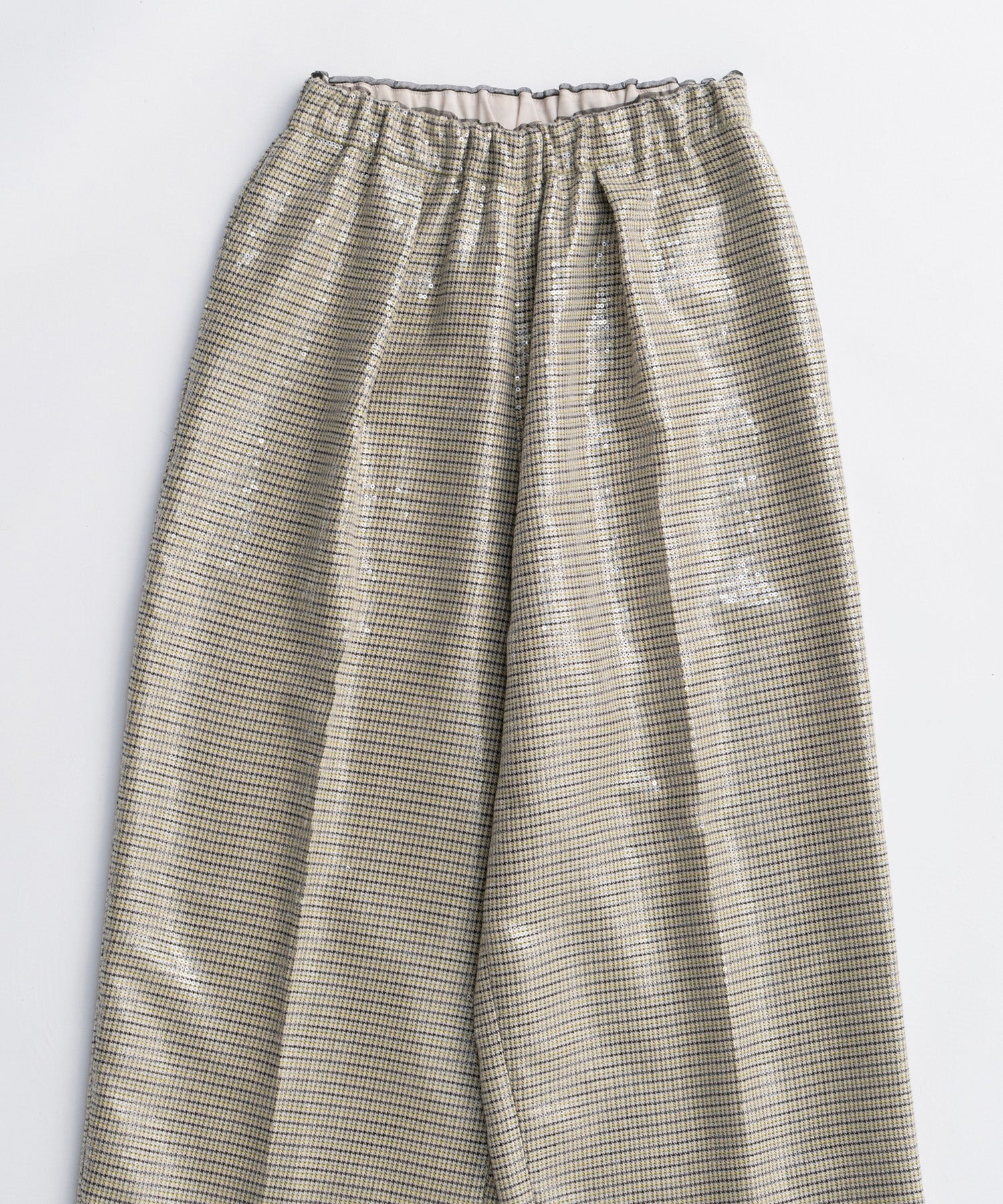 ・クラシカルなチェック柄素材の上に、スパンコールを全面にたたきつけたスペシャルファブリックを使用。