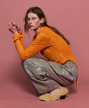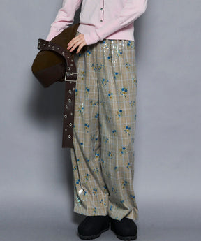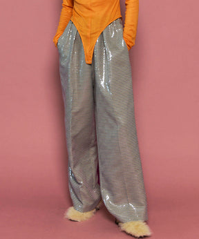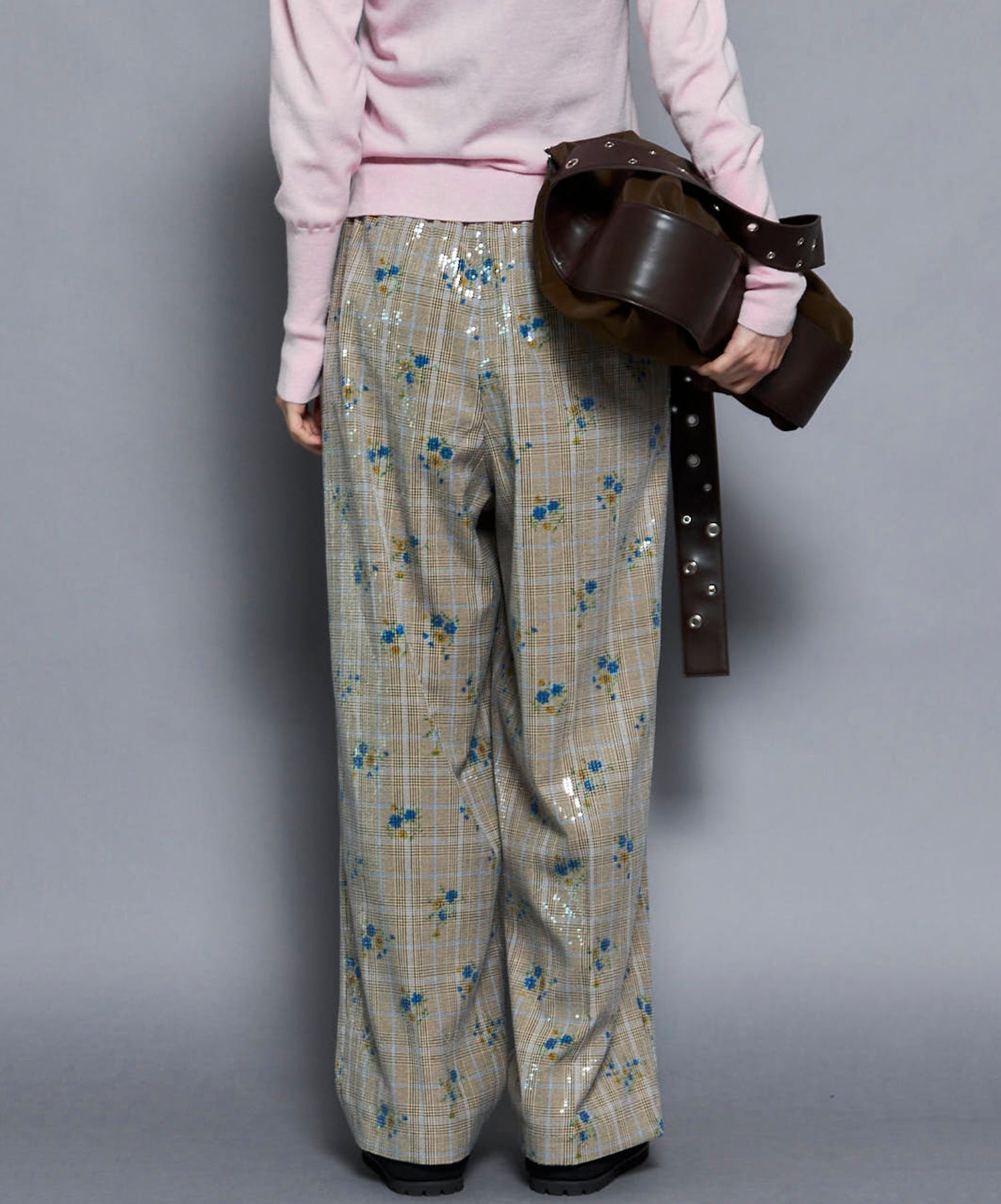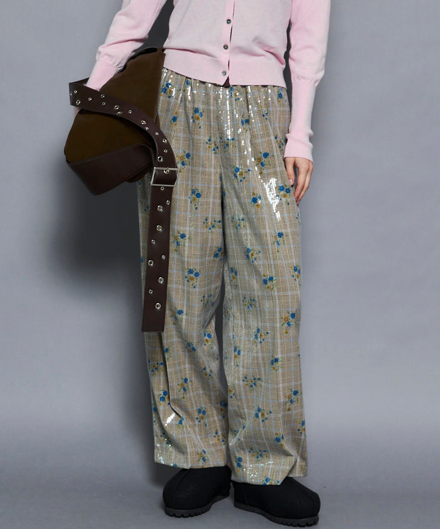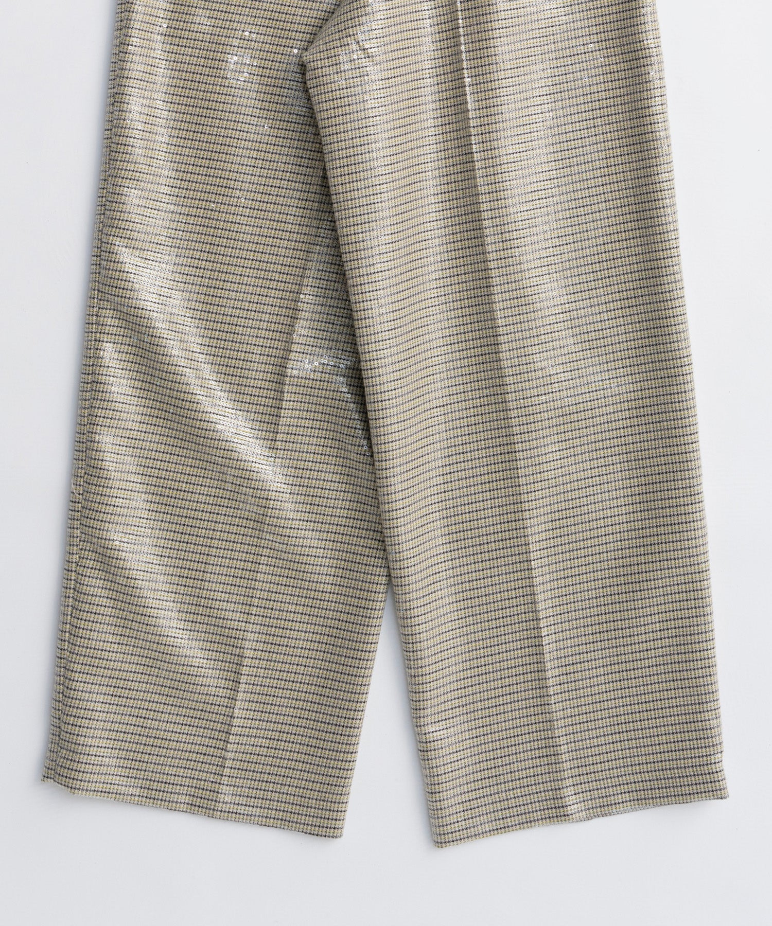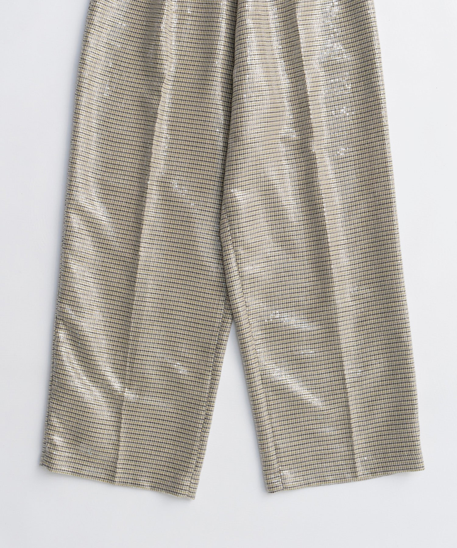・クラシカルなチェック柄素材の上に、スパンコールを全面にたたきつけたスペシャルファブリックを使用。