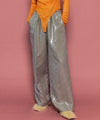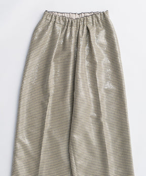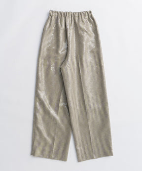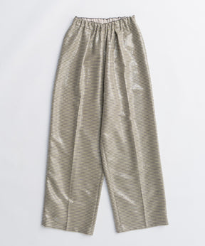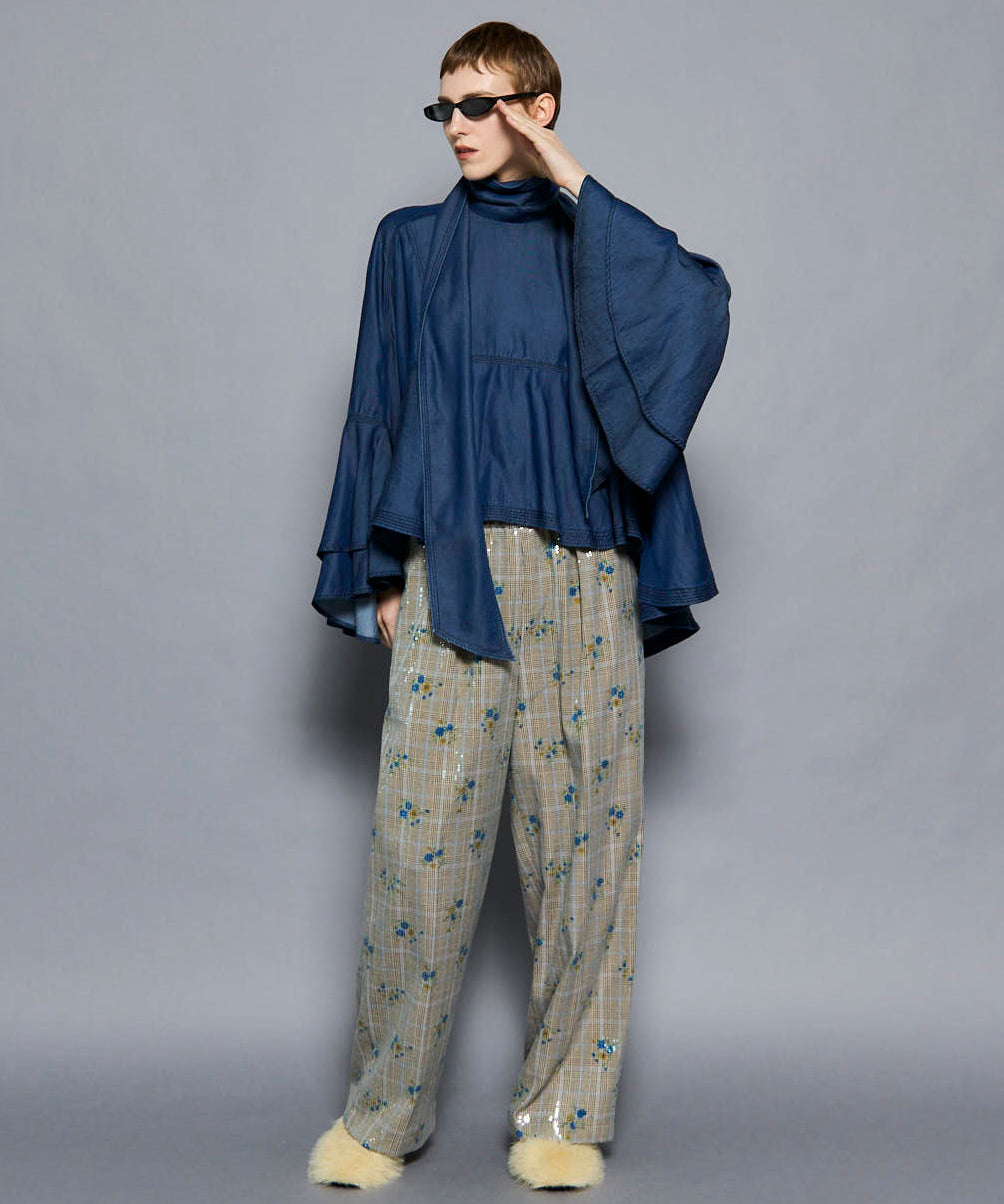 ・素材の光沢と落ち感が美しく、歩いたときの揺れ感もエレガントなワイドパンツ。