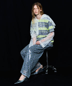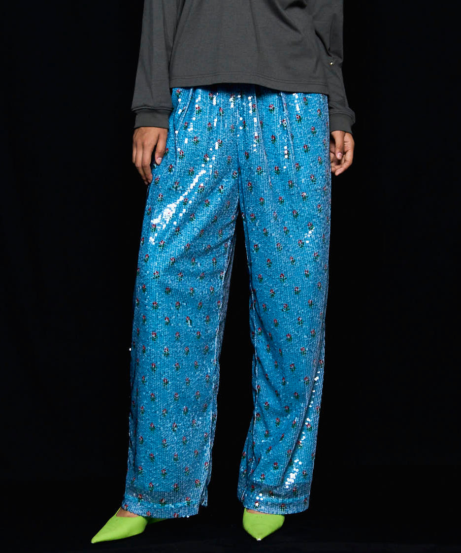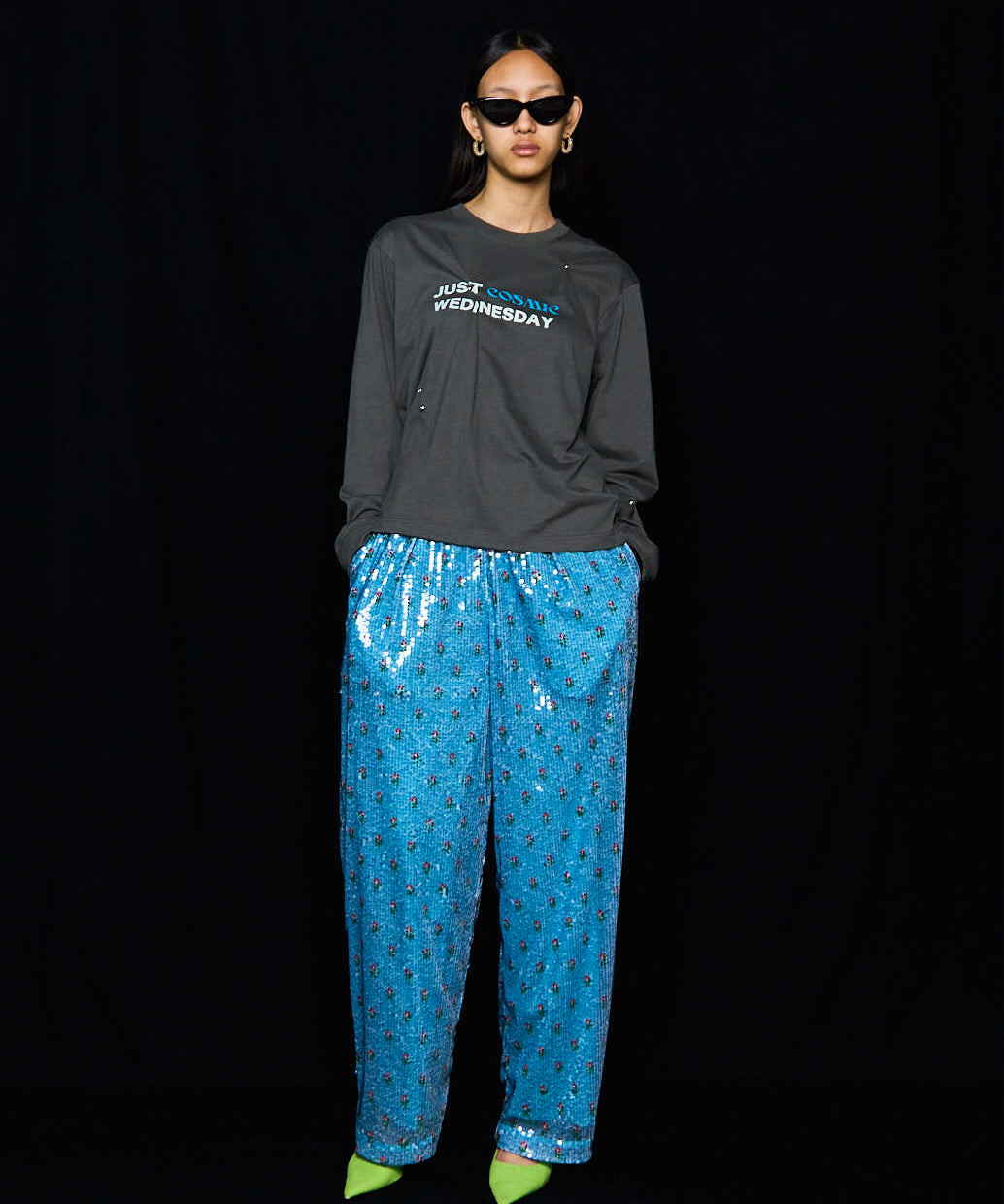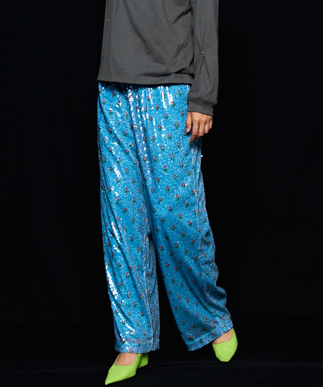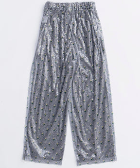 ・透明感あるスパンコールとプリントの重なりが、他にはない奥行きと華やかさを演出し存在感のある雰囲気に。