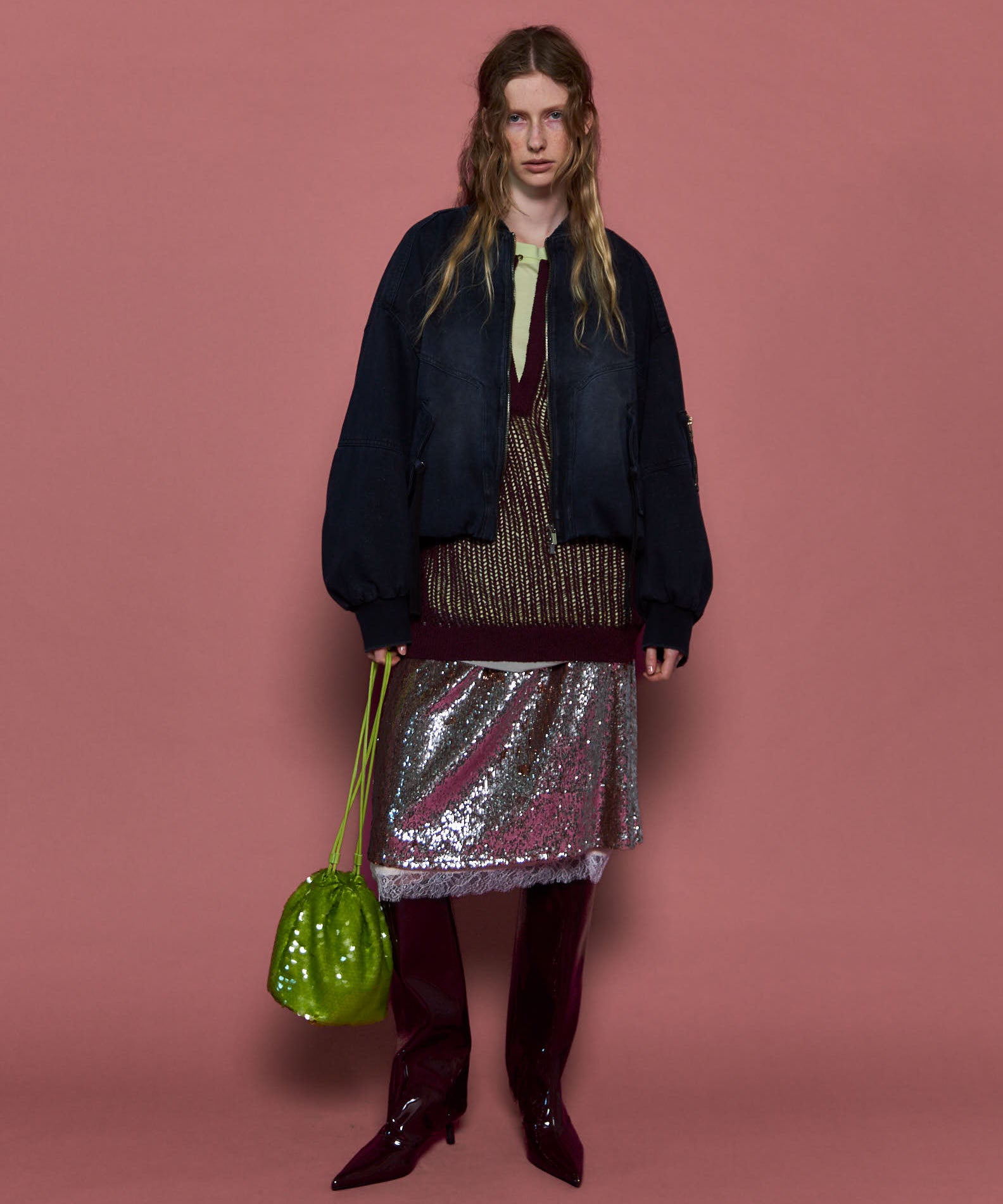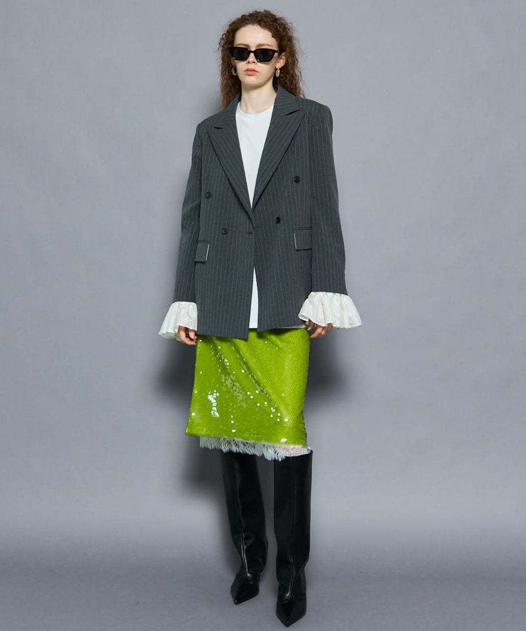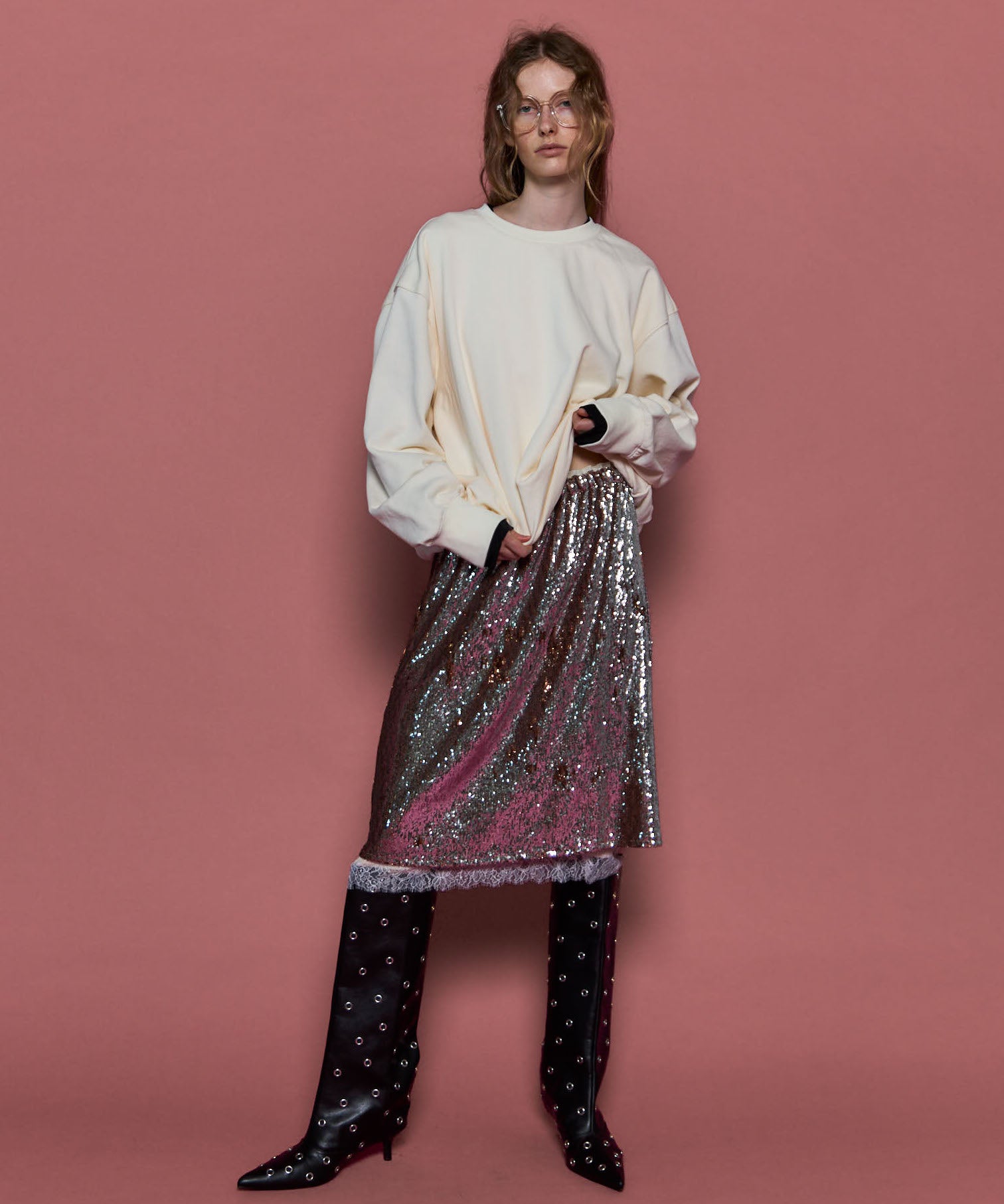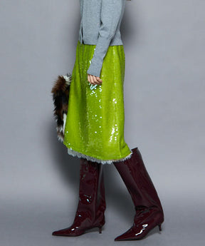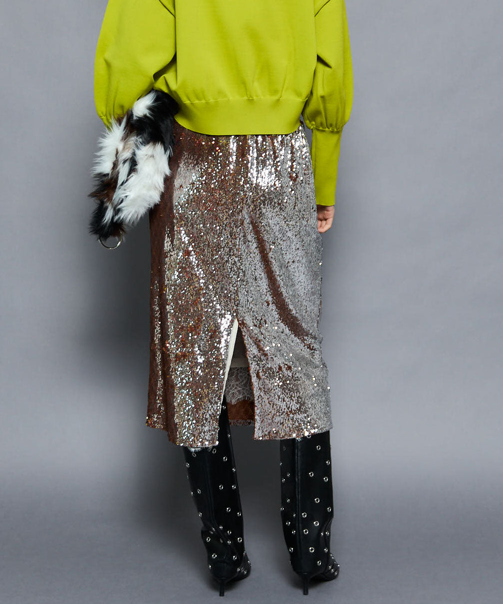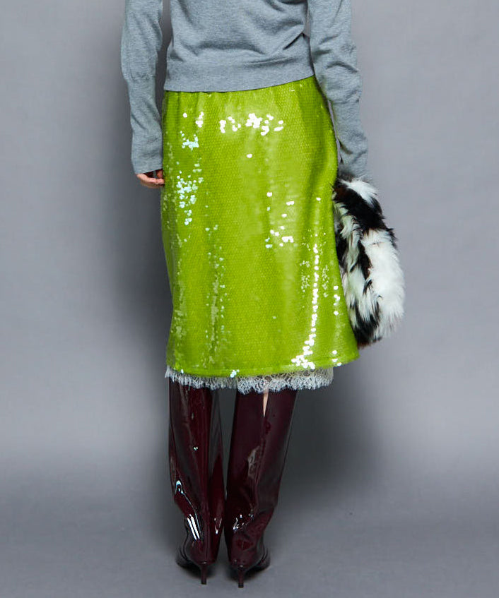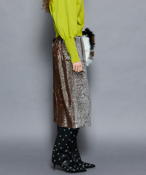 ・煌めくキャッチーなスパンコールを使用したタイトスカート。