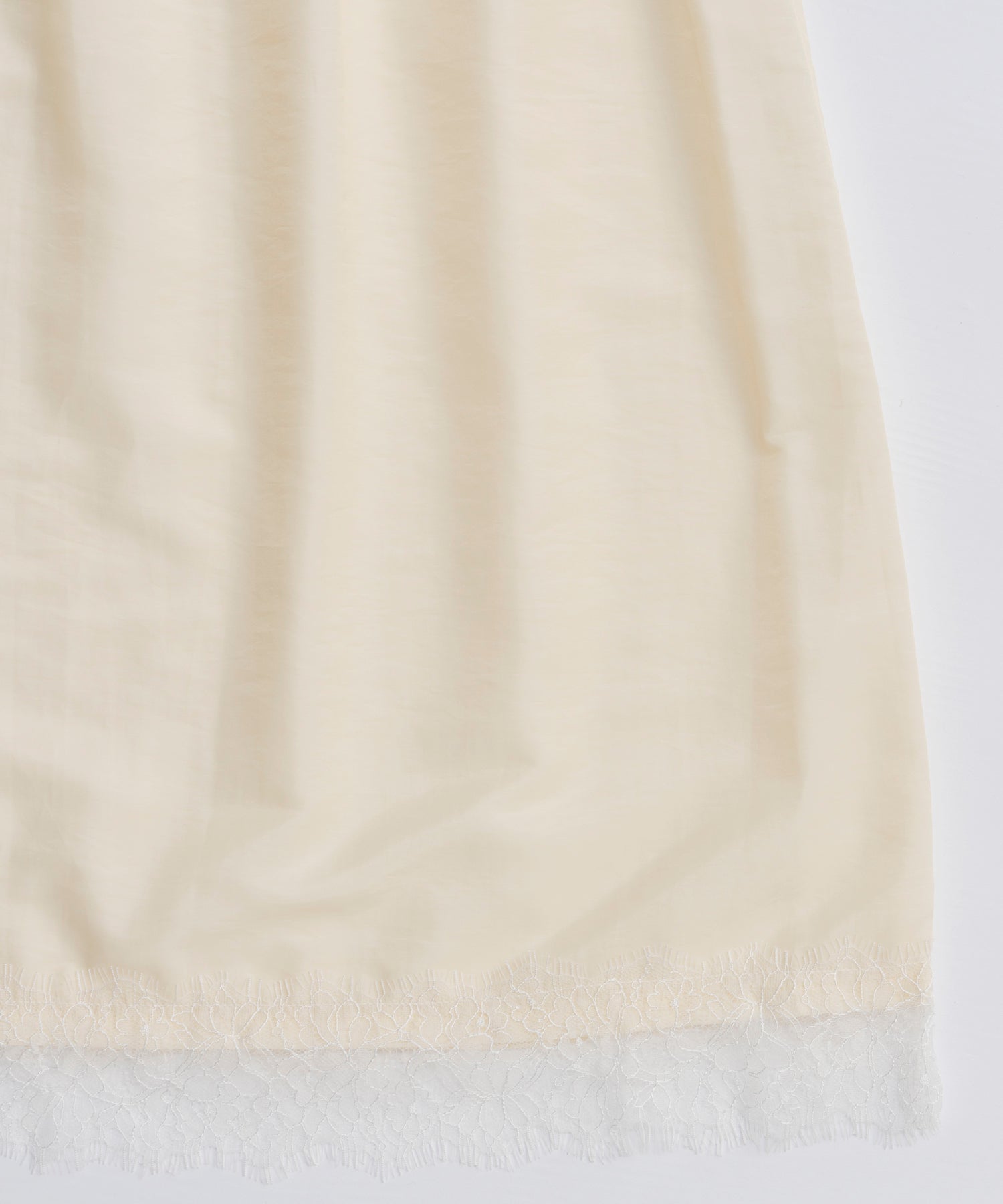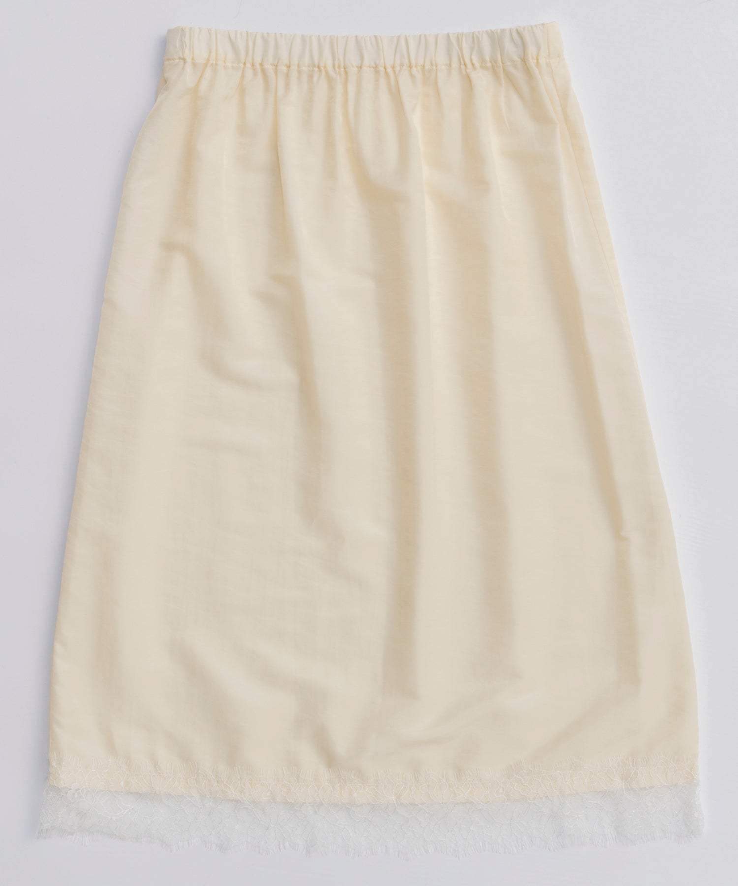 ペチコートの裾にはレースを使用しておりレイヤードで楽しんでいただきたいアイテムとなっております。