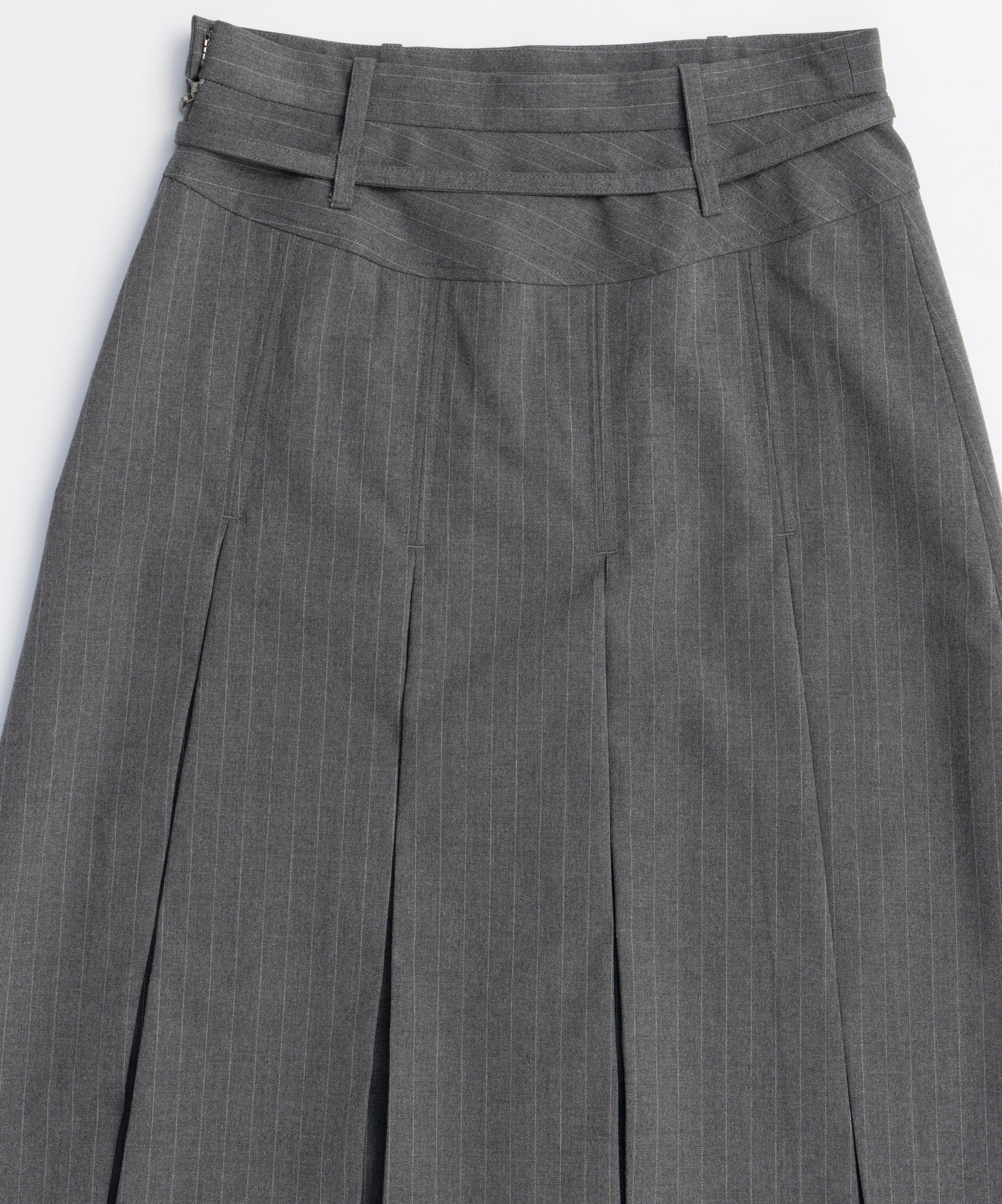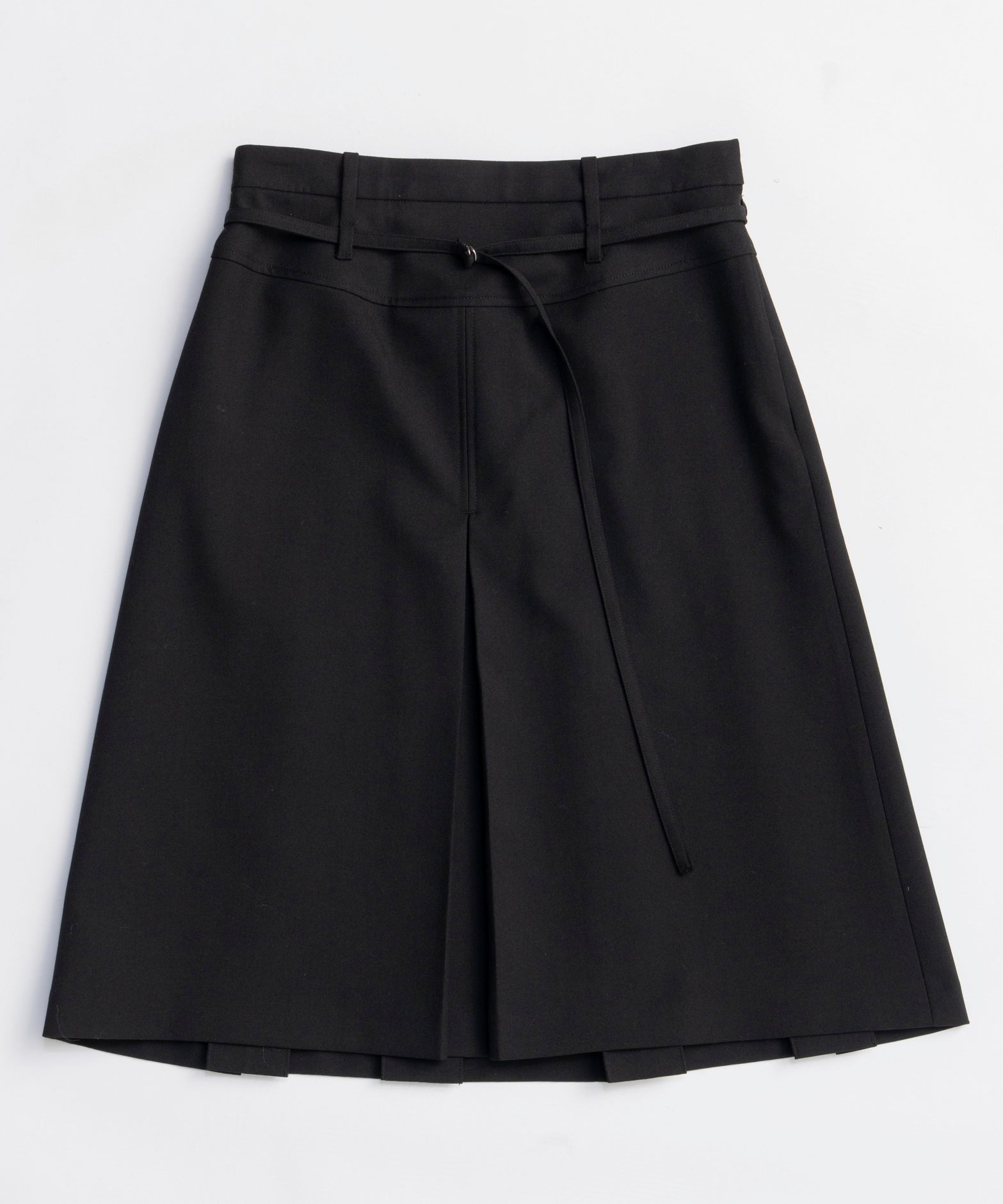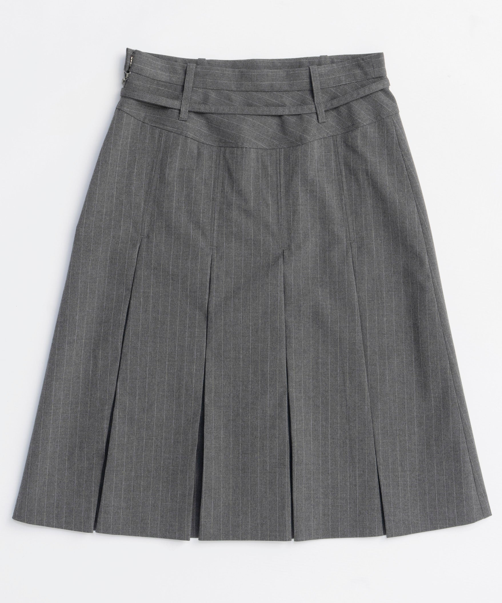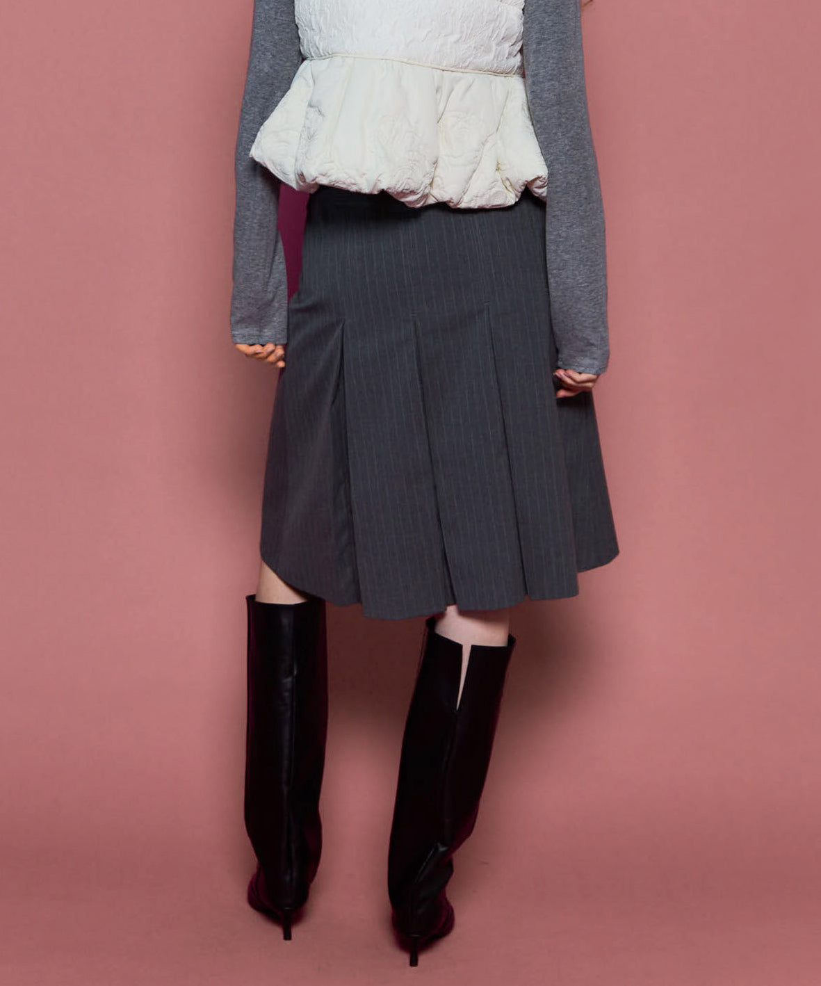 ・前はボックスプリーツ、後ろは細かいプリーツで抜け感のあるデザインがポイントのミモレスカート。