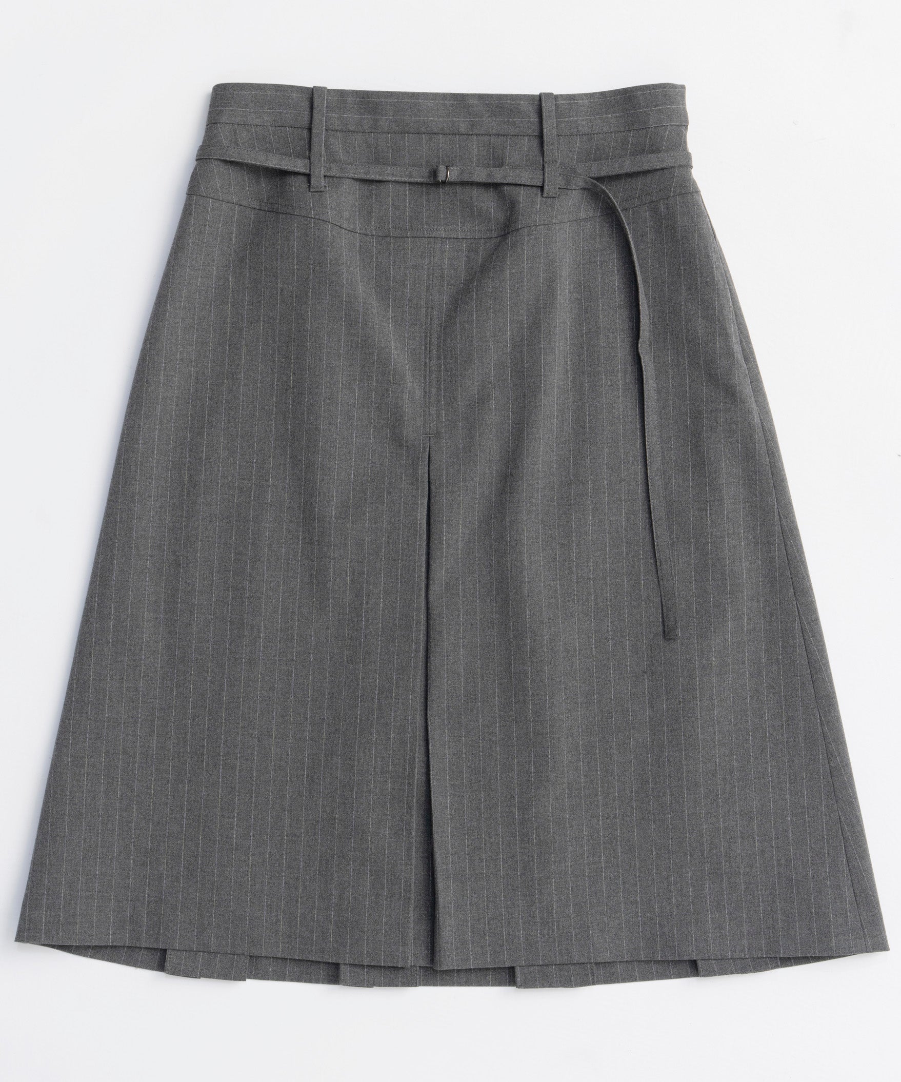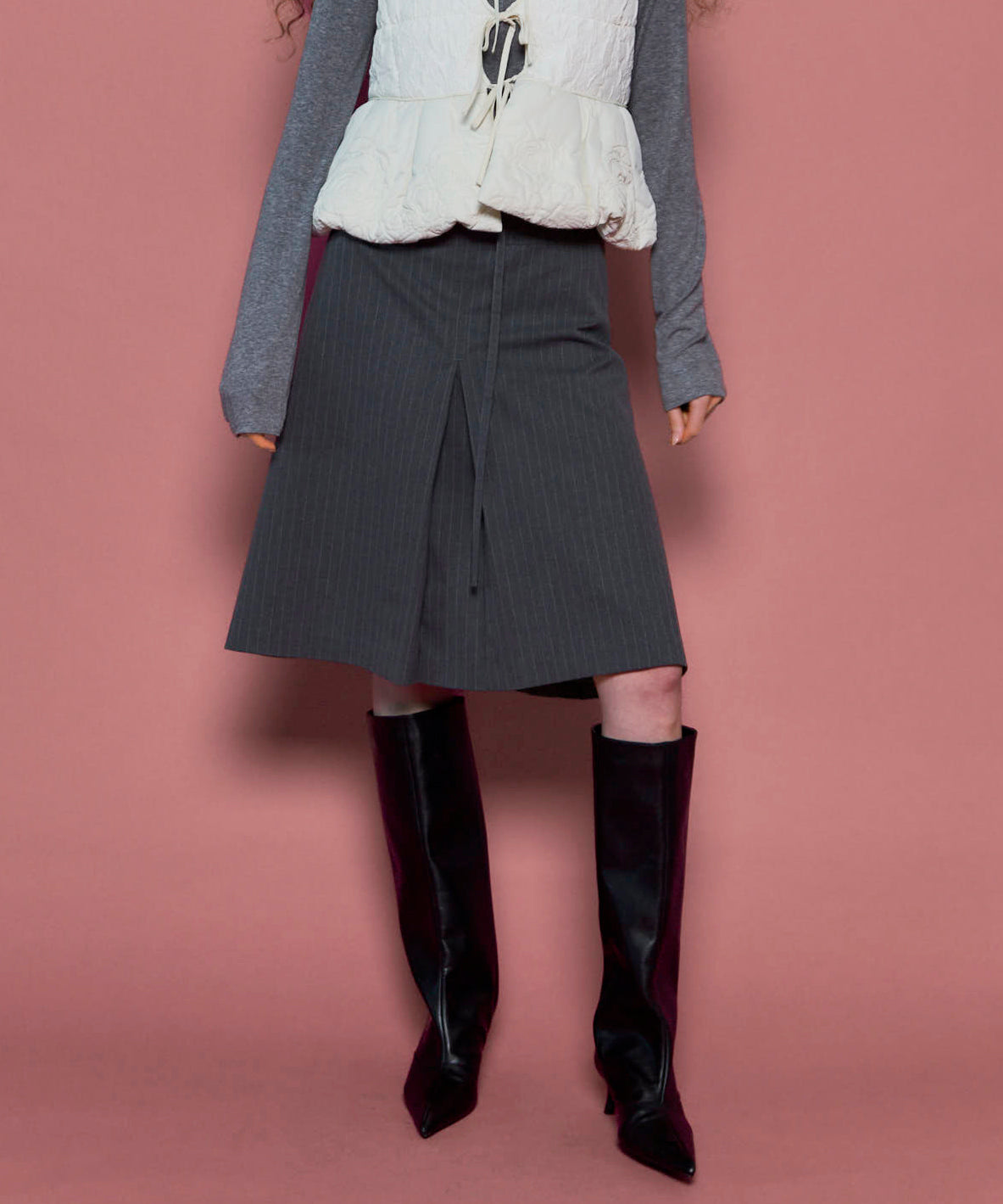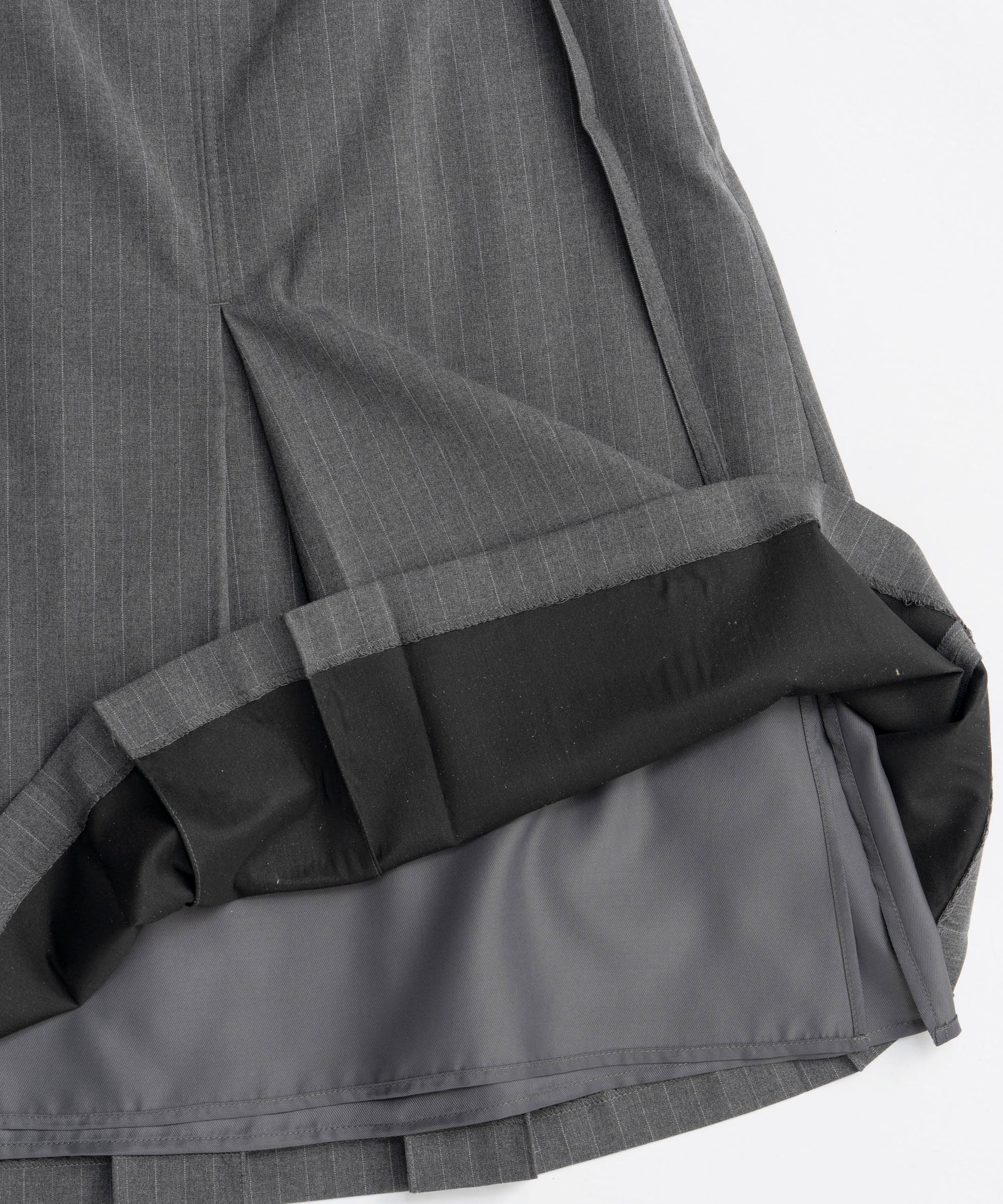 ・前はボックスプリーツ、後ろは細かいプリーツで抜け感のあるデザインがポイントのミモレスカート。