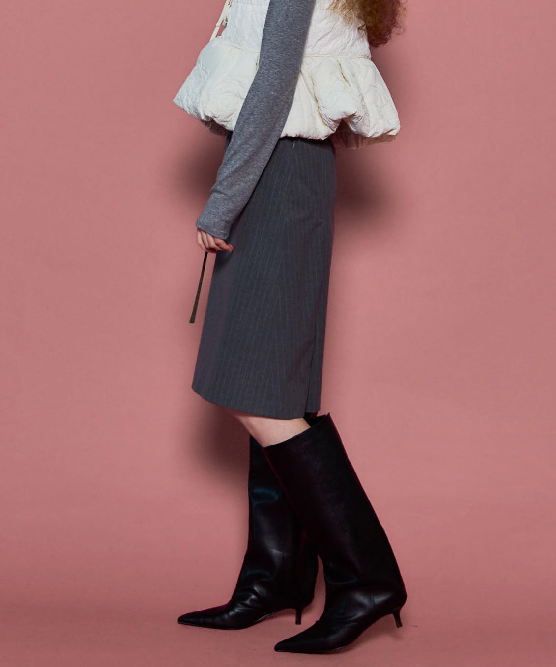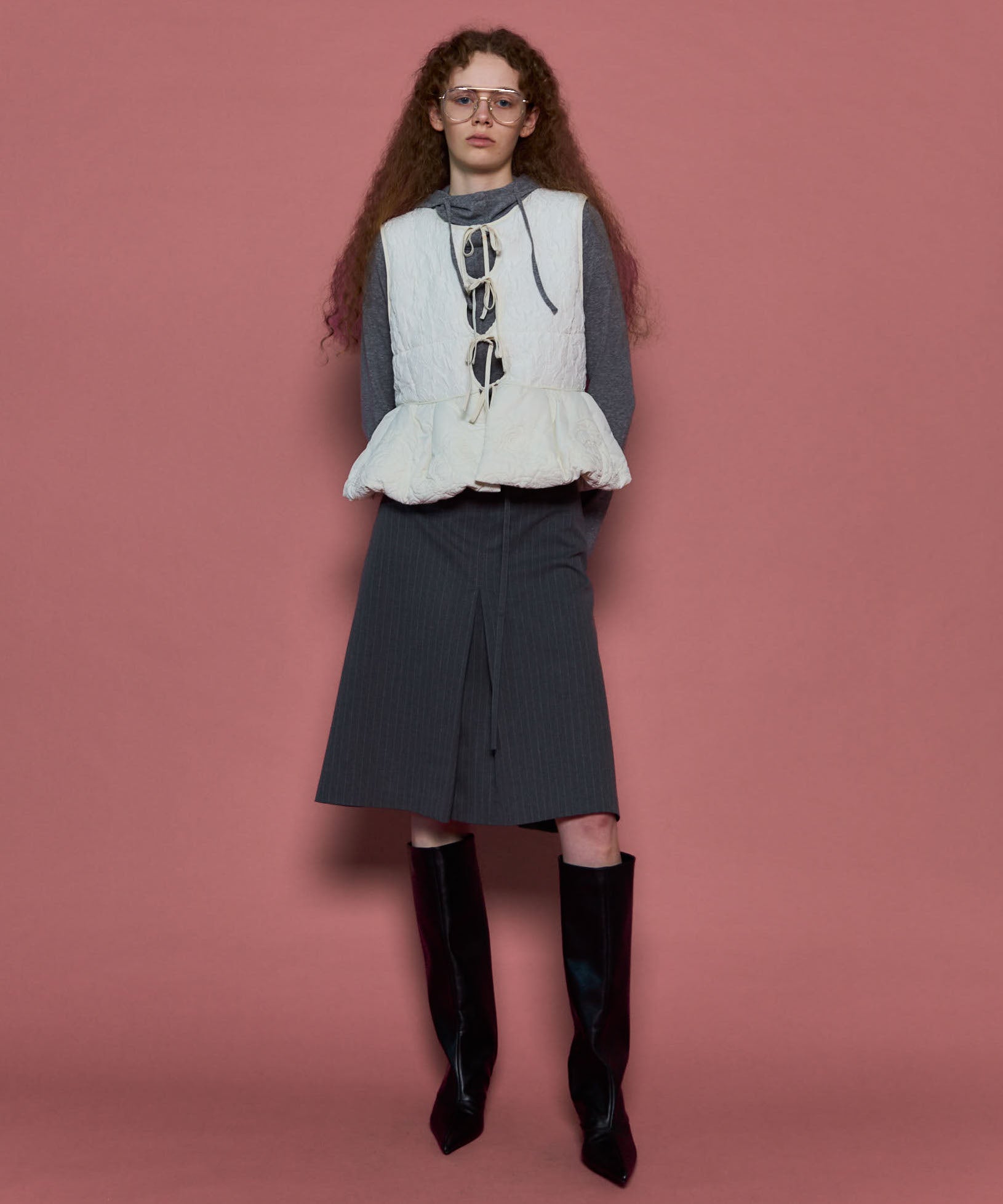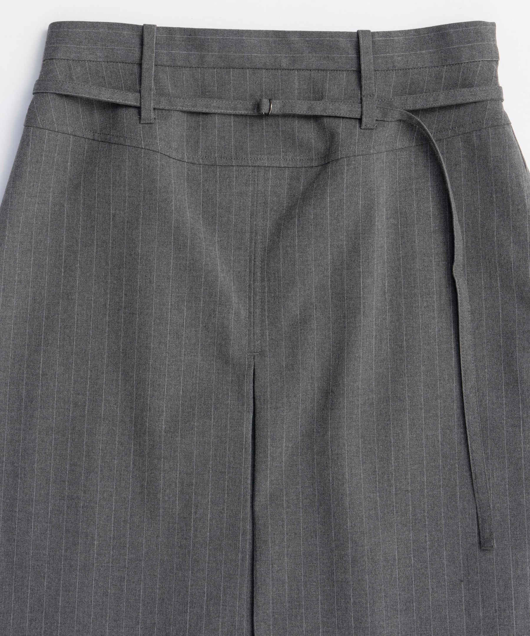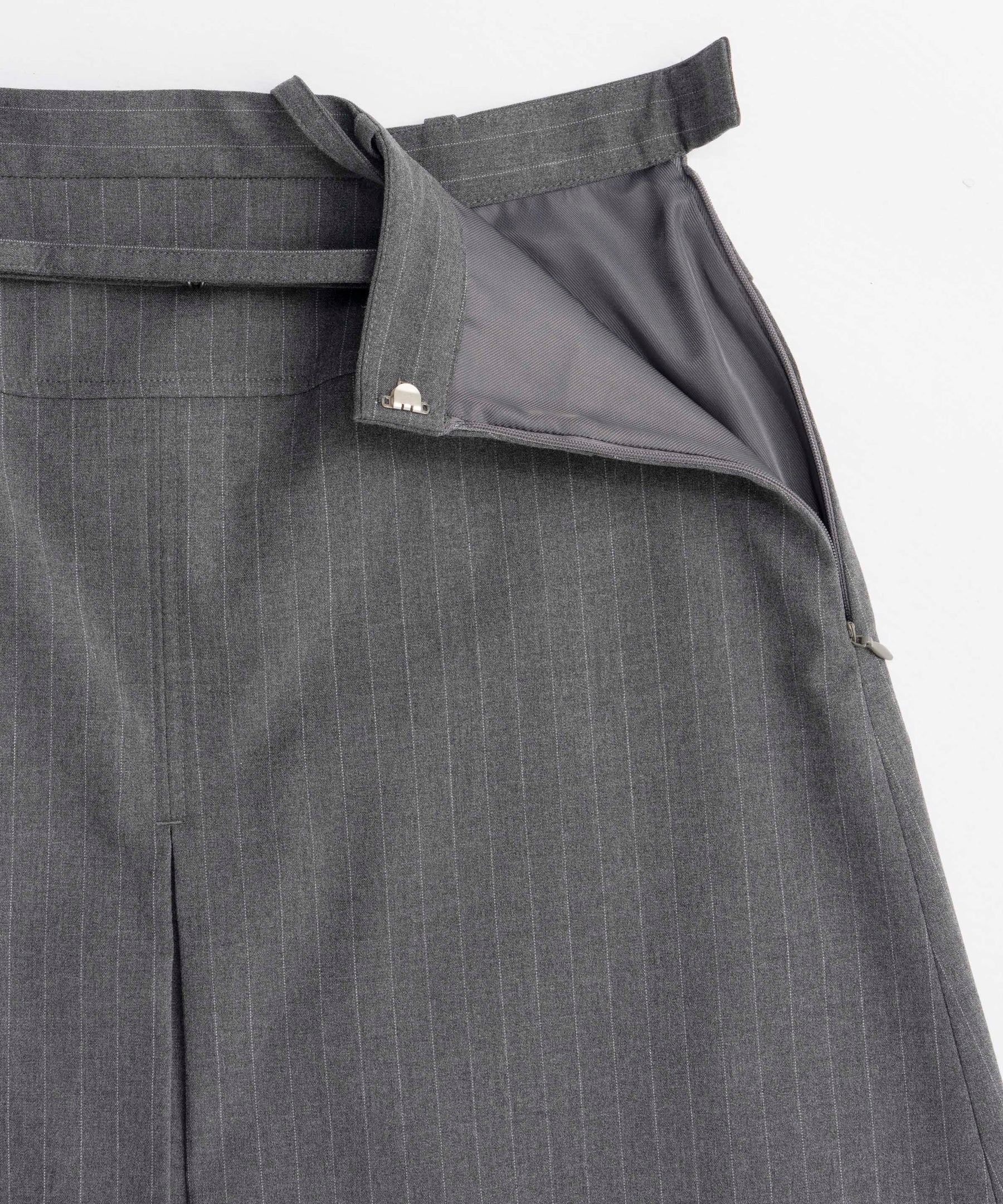 ・前はボックスプリーツ、後ろは細かいプリーツで抜け感のあるデザインがポイントのミモレスカート。