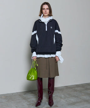 Material:【GRY】表地:ポリエステル69%、レーヨン31%、ポリウレタン1%、裏地:ポリエステル100%、【BLK/KHK】表地:ポリエステル91%、リネン5%、ポリウレタン4%、裏地:ポリエステル100%
