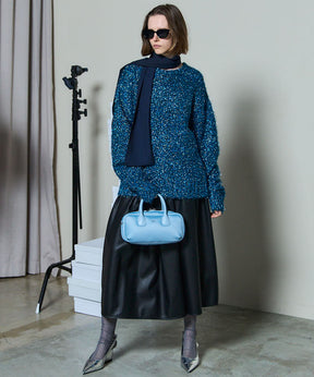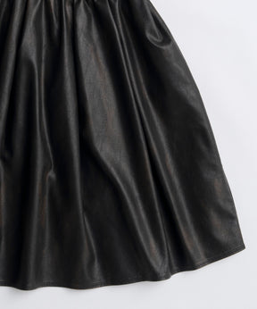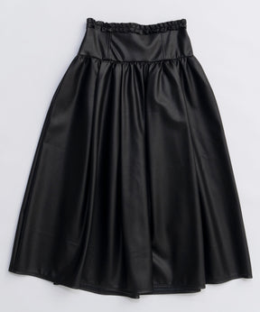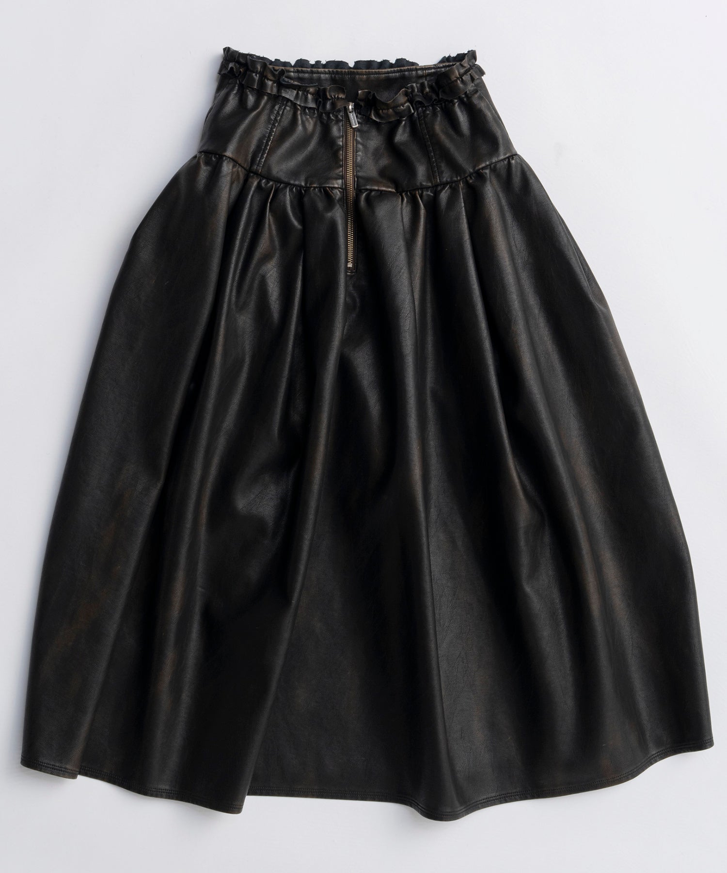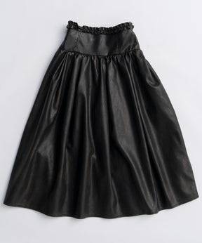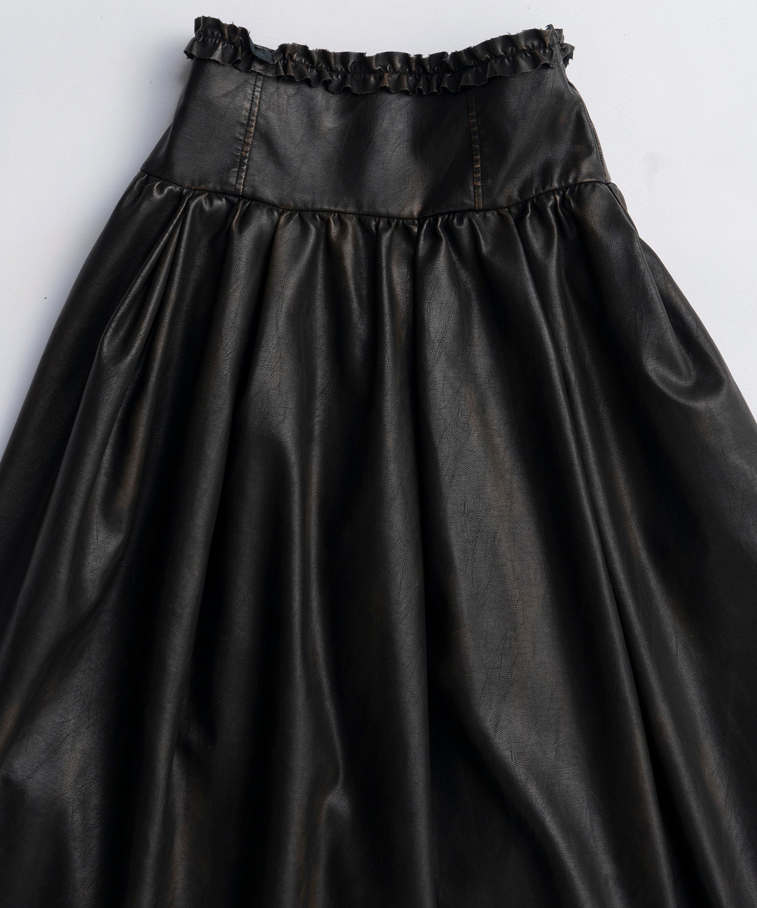 【SALE】Waist Frill Vegan Leather Mid-length Skirt