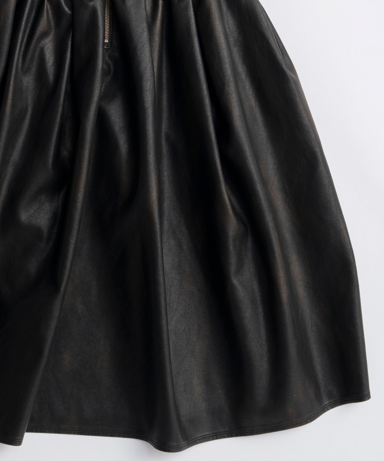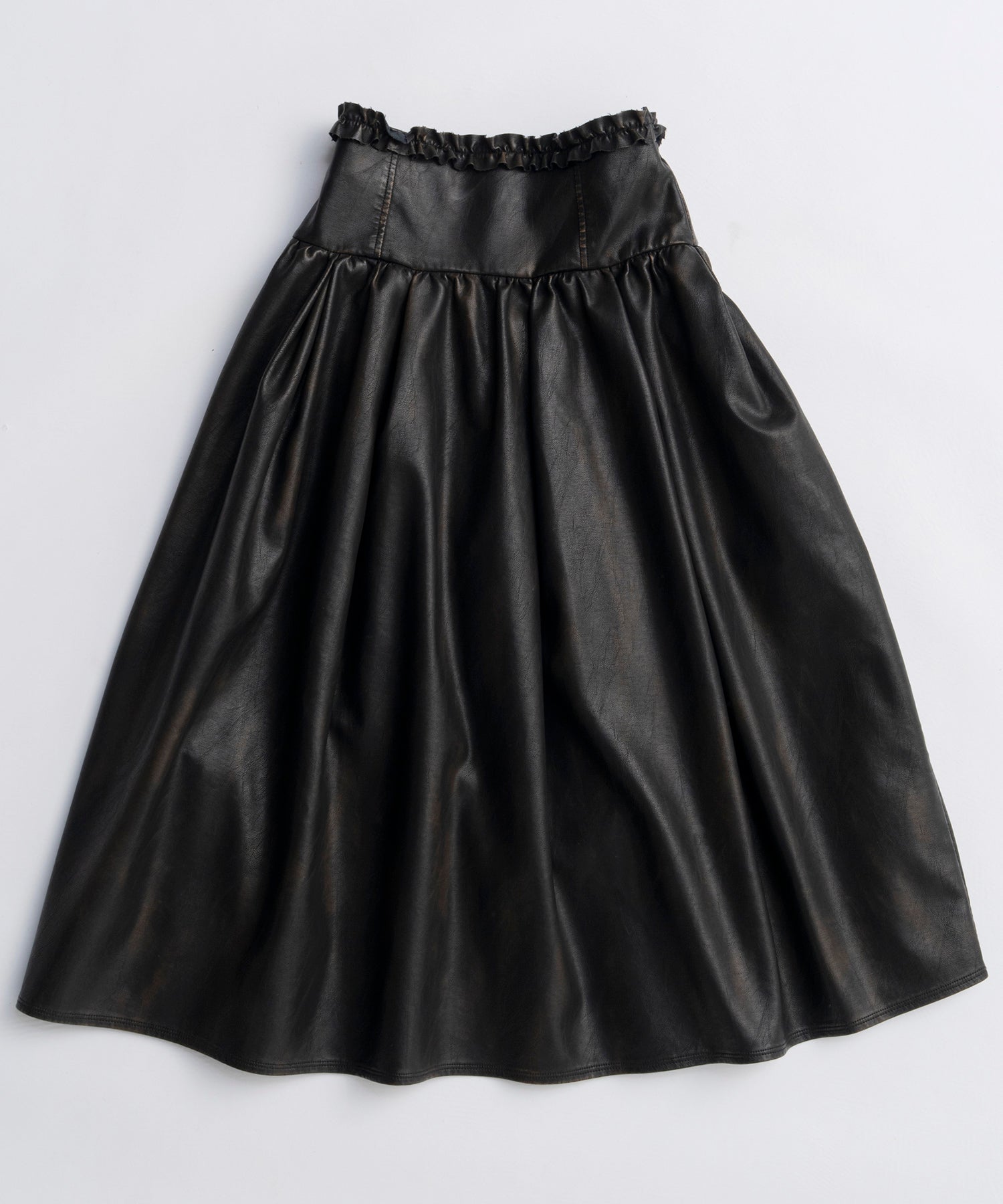Product Name:ウエストフリルヴィーガンレザーミモレスカート