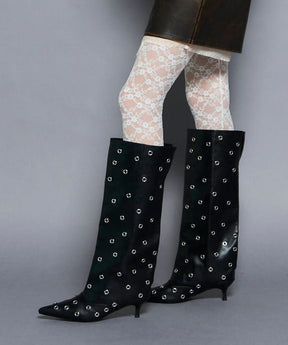 Low Heels Studs Loose Long Boots