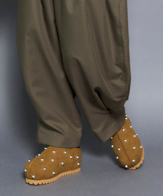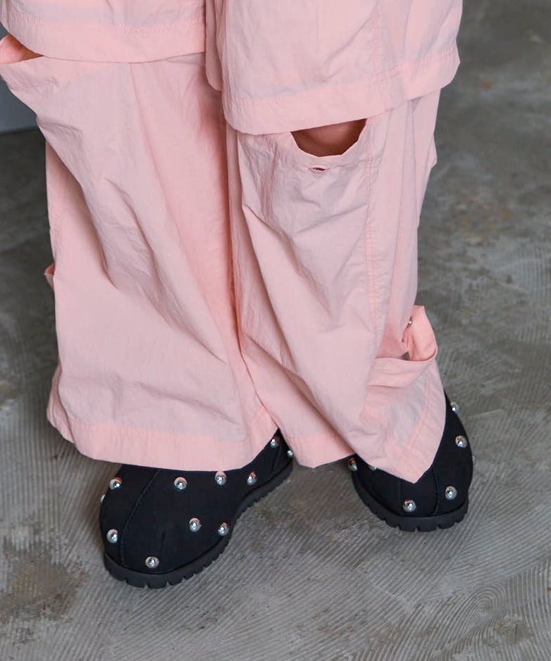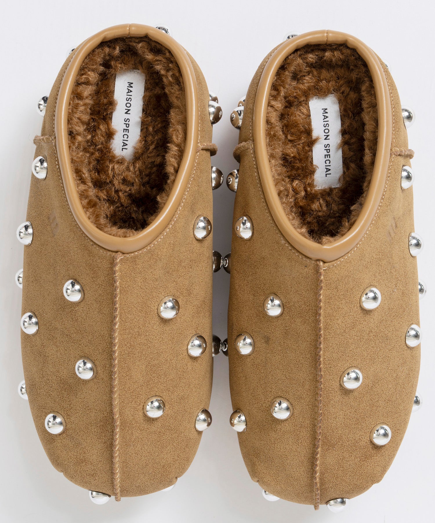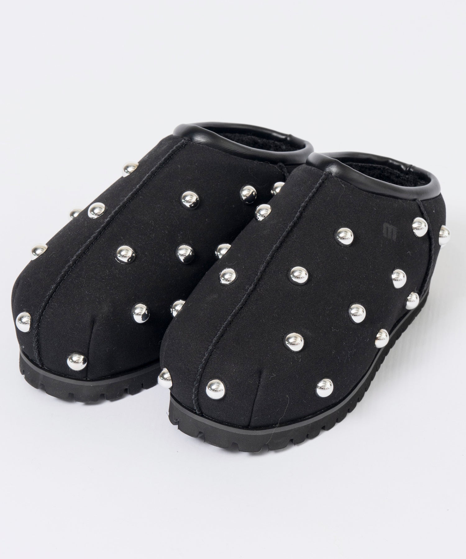 ヒールを包み全体的なボリュームを出したシルエット×スタッズ×サボを組み合わせ、他にはないメゾンスペシャルらしい一足に仕上げております。
