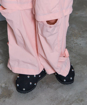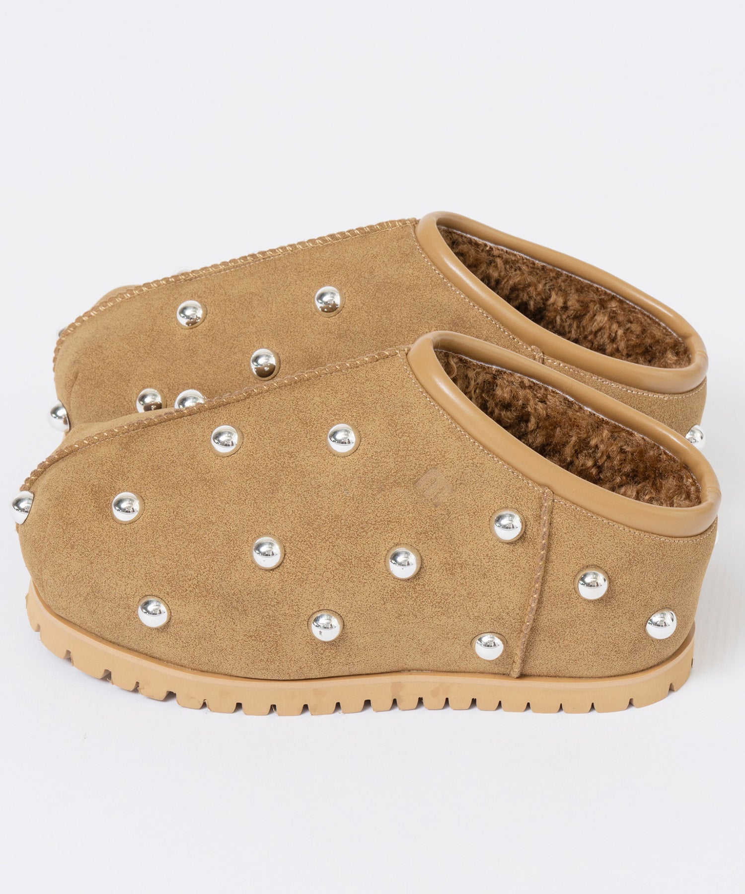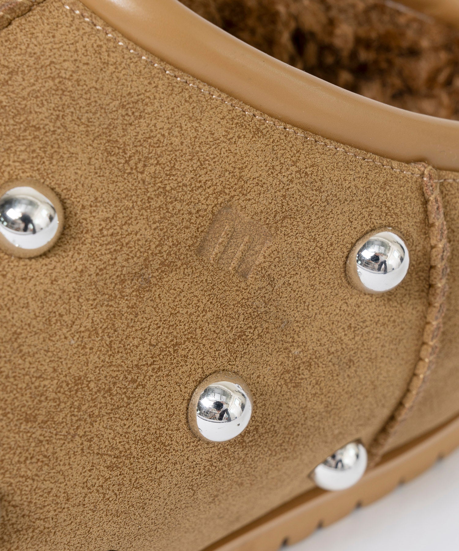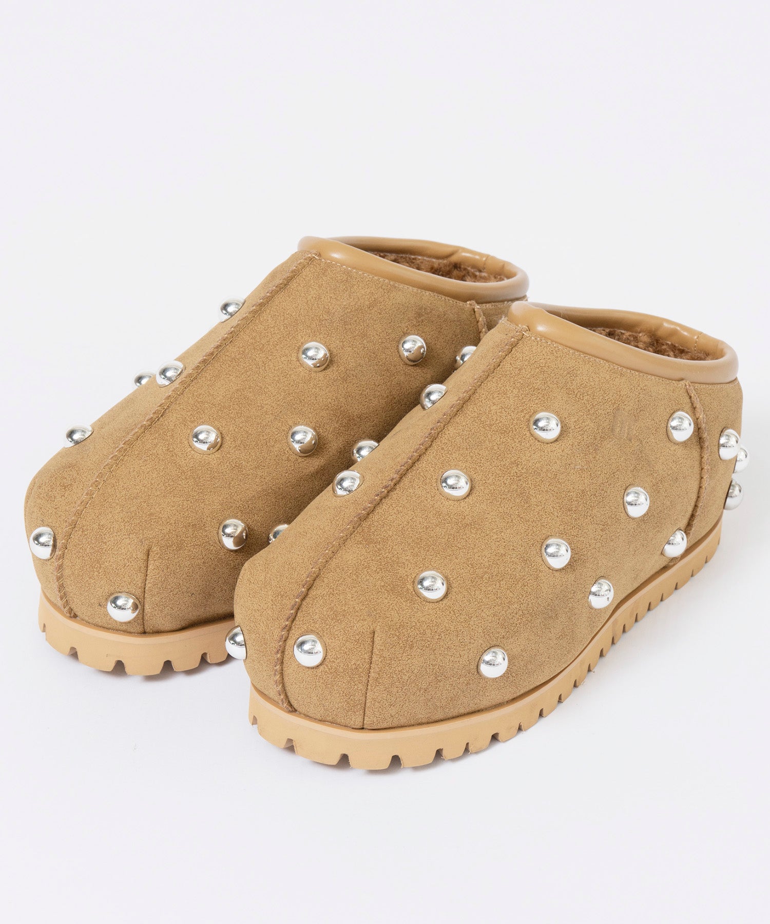 ・スウェード調の合成皮革を使用し、全体にMIXカラーのスタッズをあしらうことでエッジの効いたデザインに。